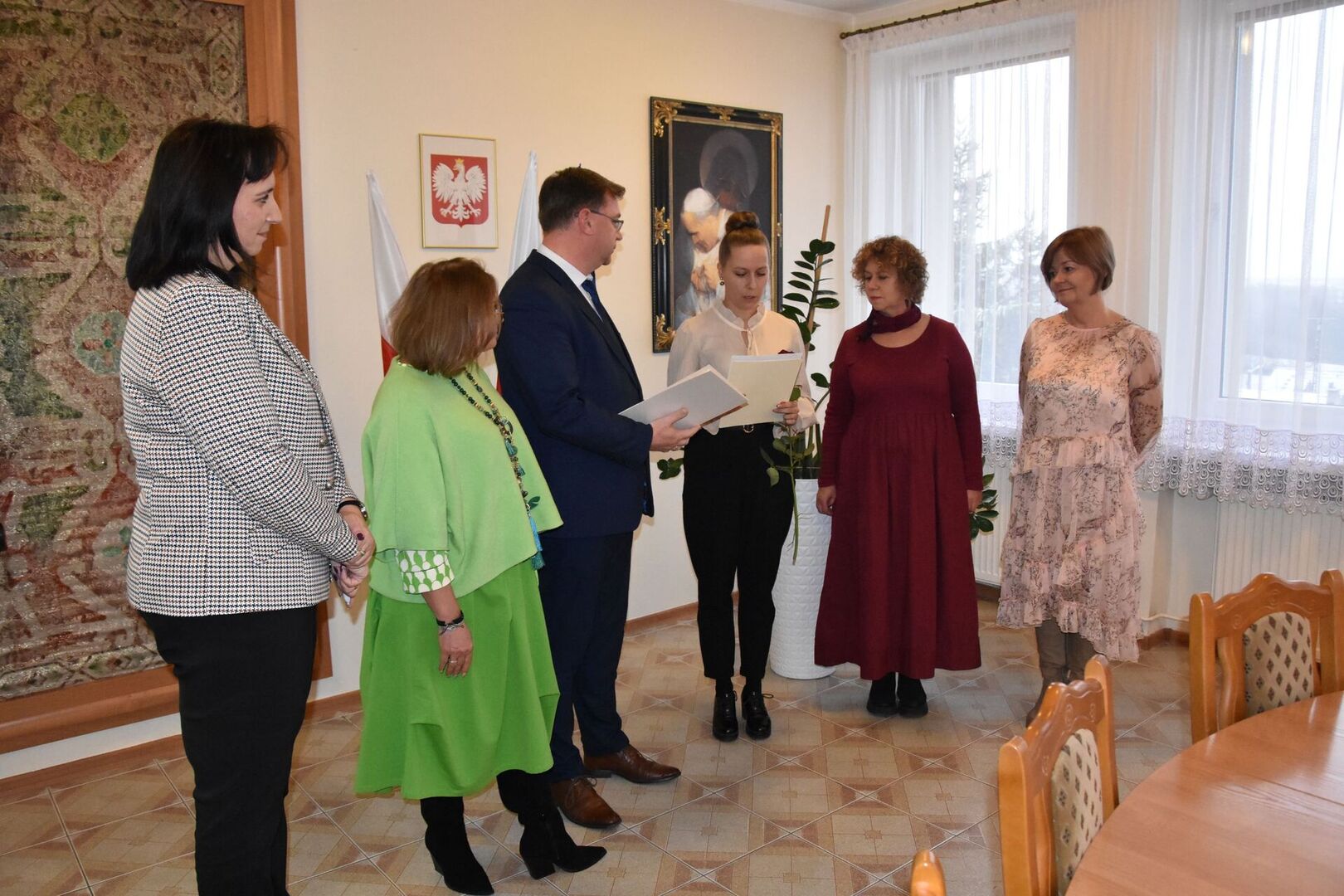 Zaraz potem odbyło się oficjalne wręczenie aktu nadania stopnia awansu zawodowego nauczyciela przez Wójta Gminy Gostycyn Ireneusza Kucharskiego. Zgodnie z ustawą Karta Nauczyciela, przy nadaniu stopnia nauczyciela mianowanego, nauczyciele składają ślubowanie, w którym zobowiązują się do rzetelnego pełnienia funkcji nauczyciela i wychowawcy, dalszego rozwoju własnego ale też ucznia oraz do wychowywania młodego pokolenia w duchu umiłowania Ojczyzny i tradycji.