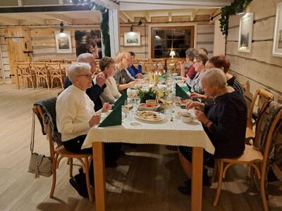 Dnia 11 grudnia br. członkowie Klubu Seniora "Malwa" z Pruszcza uczestniczyli w spotkaniu wigilijnym, które odbyło się w Wiosce Górniczej w Pile. Organizatorzy postarali się o zapewnienie odpowiedniej do okoliczności i sytuacji klimatu, atmosfery oraz menu. Spotkanie rozpoczęło się tradycyjnie od podzielenia się opłatkiem oraz od złożenia życzeń na Boże Narodzenie i Nowy 2025 Rok. Następnie seniorzy przystąpili do wieczerzy wigilijnej. W menu znalazły się potrawy typowo wigilijne, jak barszcz z pasztecikiem, pierogi, karp smażony i inne, były tez słodkie przekąski i kawa. W trakcie konsumpcji, uczestnicy spotkania prowadzili ożywione rozmowy oraz śpiewano kolędy i pastorałki. Spotkanie zakończono zrobieniem wspólnego okolicznościowego zdjęcia na tle choinki.