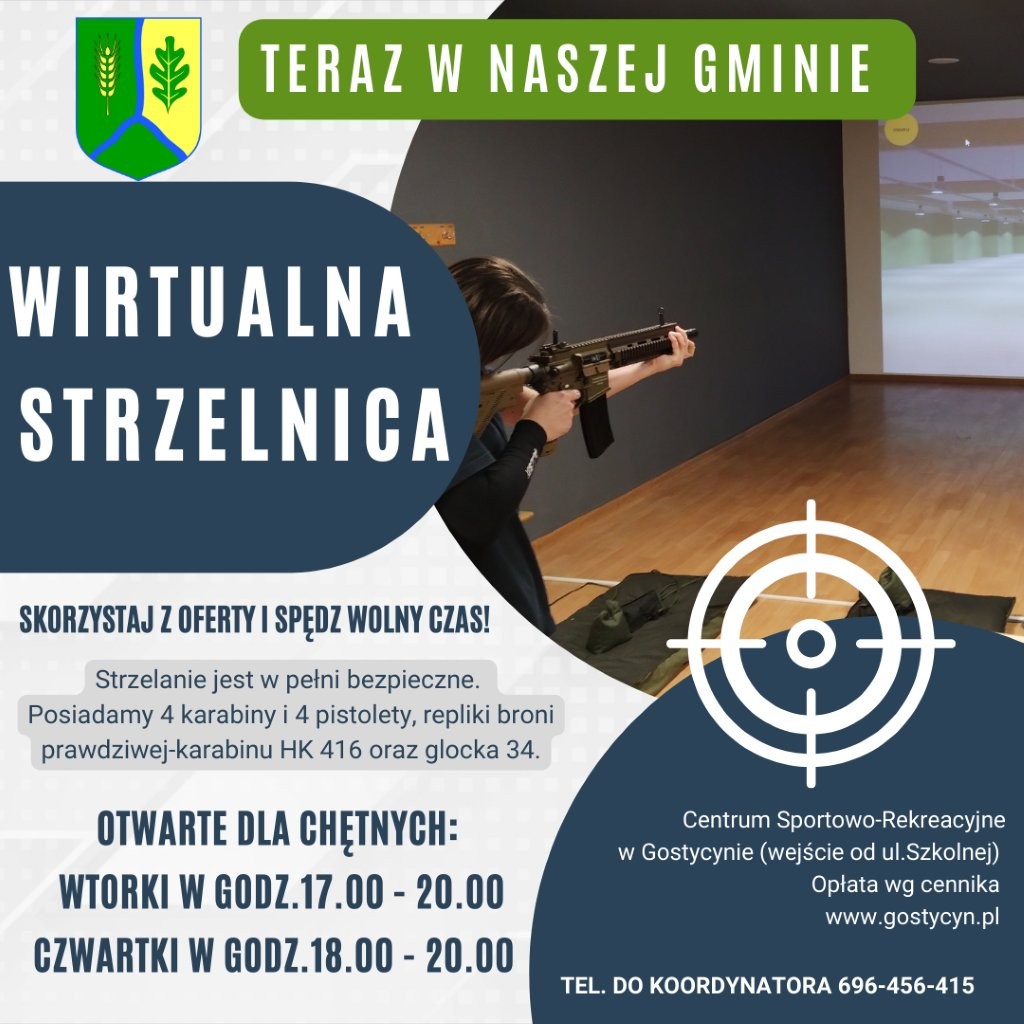Już niedługo bo pod koniec kwietnia odbędą się pierwsze zawody strzeleckie w naszej wirtualnej strzelnicy. Warto potrenować przed tak ważnym wydarzeniem aby uzyskać jak najlepszy wynik. Organizator pracuje nad scenariuszem: prawdopodobnie będzie to strzelanie do tarczy, z pozycji stojącej z broni krótkiej i długiej. Zawody przewidziano w 2 kategoriach: szkoły podstawowe i „open” Dla najlepszych nagrody i puchary Wójta Gminy Gostycyn.