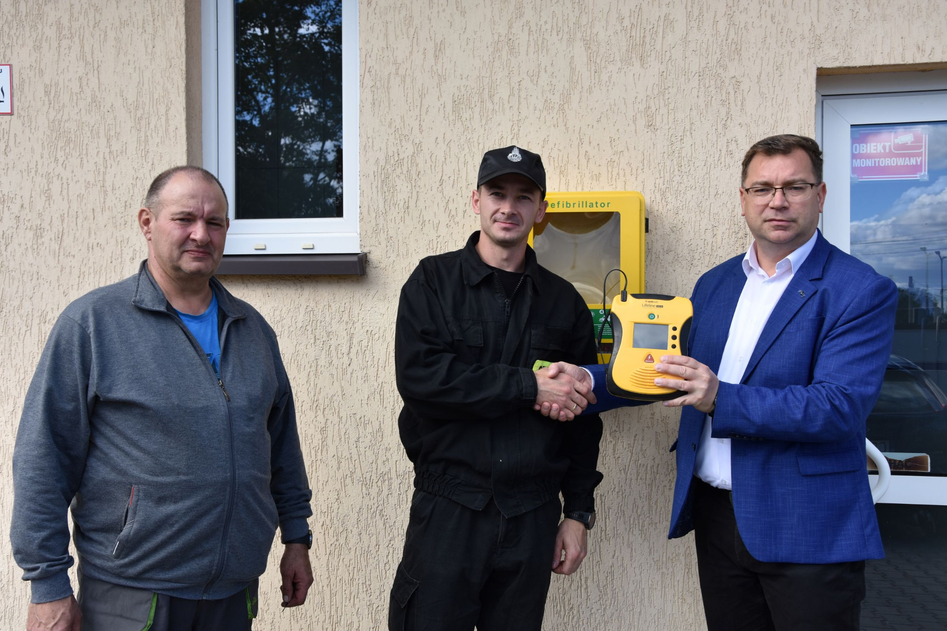 Na ręce wójta gminy, Ireneusza Kucharskiego, defibrylator przekazał druh Łukasz Podgórski i druh Roma Klatecki z miejscowej OSP. Dzięki tej inicjatywie mieszkańcy zyskali łatwy dostęp do sprzętu ratującego życie.