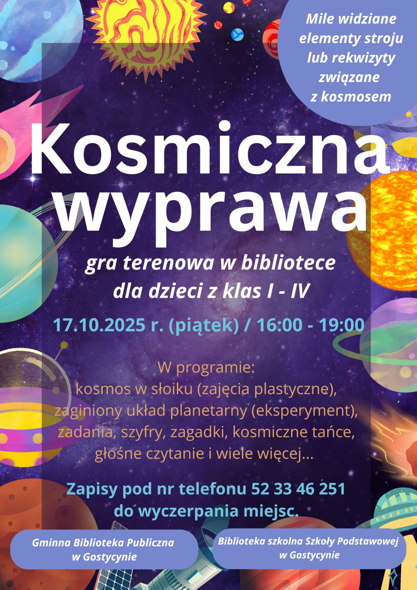 Mile widziane elementy stroju i rekwizyty związane z kosmosem. Bibliotekarki też poszaleją.