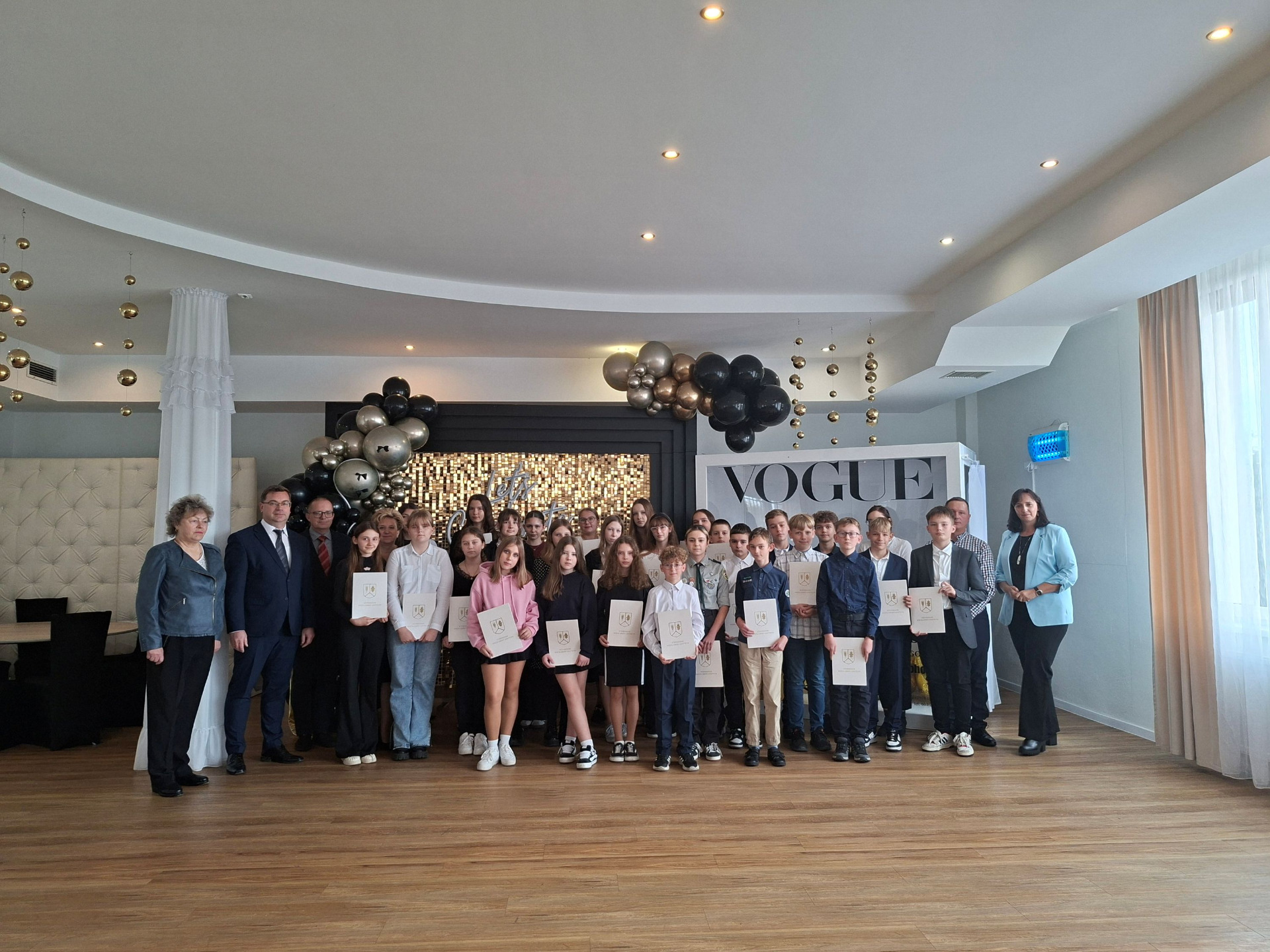 W uroczystości rozdania stypendiów uczestniczyli: Wójt Gminy Gostycyn Ireneusz Kucharski, Sekretarz Gminy Hanna Kufel, dyrektorzy szkół – Maria Sikorska i Marek Sass, przewodnicząca komisji oświaty Grażyna Kida oraz z ramienia urzędu gminy – Marcelina Szewczyk.