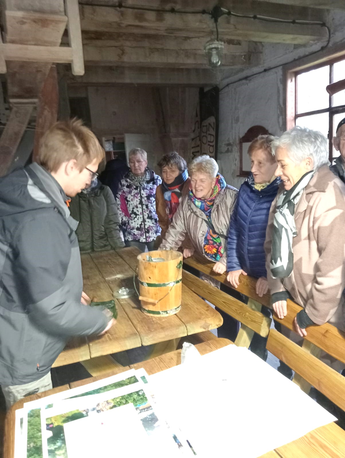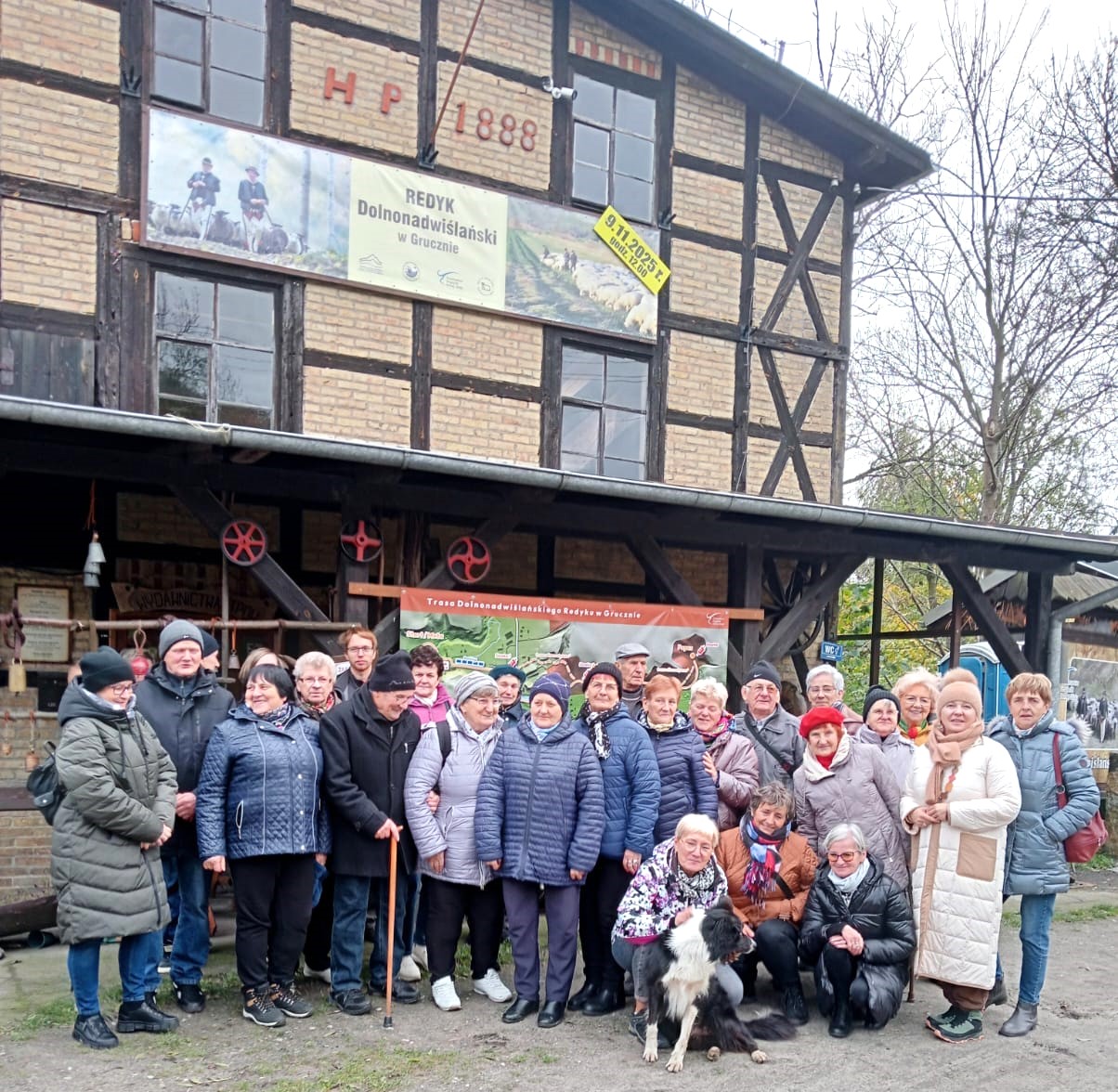 W dniu 28 października 2025 r. Seniorzy z Klubu Senior+ w Wielkim Mędromierzu wyruszyli zwiedzać miejsca historyczne Nad Dolną Wisłą. W drodze do Chrystkowa i Gruczna przypomnieli sobie historię wsi Łyskowo w naszej gminie. Po przybyciu do Chrystkowa – maleńkiej, liczącej 128 mieszkańców wsi zwiedzili zabytkową chatę z 1770 roku, która obecnie pełni funkcję Ośrodka Dydaktyczno – Muzealnego Zespołu Parków Krajobrazowych Chełmińskiego i Nadwiślańskiego. Chata, pierwotnie będąca centrum dużego gospodarstwa, zachowała swój historyczny charakter i jest prezentowana jako przykład życia i kultury mennonitów na tym terenie. W chacie zgromadzono eksponaty związane z życiem codziennym mieszkańców okolicznych wsi, odtworzono suszarnię owoców i założono kolekcję starych odmian drzew owocowych. Seniorzy mieli możliwość zapoznania się z historią osadnictwa mennonickiego w Polsce. Poza tym poznali tradycje sadownicze i odwiedzili pobliski sad. Co ciekawe, na uznanie zasługuje chów owiec – około 50 sztuk, które wypasane są na łąkach, i w sadzie. Po odbytych warsztatach i ciekawych opowieściach przewodnika Pana Łukasza Woźniaka, Seniorzy autokarem przybyli do następnej stacji - o nazwie Gruczno. To wieś malowniczo usytuowana na zboczu Doliny Wisły, licząca ok. 1350 mieszkańców, położona jest w odległości 3 km od rzeki Wisły, 12 kilometrów od śródmieścia Świecia, 11 kilometrów od starówki Chełmna i 39 kilometrów od centrum Bydgoszczy. Gruczno funkcjonuje jako nazwa od XVI wieku, i nie występuje nigdzie więcej na terenie Polski. Administracyjnie wieś położona jest w powiecie świeckim, w gminie Świecie i umownie stanowi południowo - zachodni „przyczółek” kociewski. W Grucznie atrakcja było zwiedzanie zabytkowego młyna z 1888 roku i starej suszarni. Przy młynie powstał mini skansen uli oraz jedyna w regionie kolekcja pni starych drzew. Otoczenie młyna i mini skansenu jest miejscem organizacji Festiwalu Smaku. Młyn wybudował Hermann Albert Pauly. Posadowiony na podmurówce z cegły pełnej i głazów granitowych, trójkondygnacyjny. Zachowało się częściowo wyposażenie młyna, m.in. trzy mlewniki. Po tak dużej dawce wiedzy historycznej i dawnych tradycji Uczestnicy wycieczki posili się strawą regionalną, ciastem domowym i „impulsem kulinarnym – Smakiem Roku”. Umili sobie czas, śpiewając przy akompaniamencie gitarowym Pana Mirosława swoje ulubione piosenki biesiadne - klubowe. Odśpiewali także symboliczne 100 lat Jubilatowi z Klubu. Wieczorem Seniorzy uczestniczyli we Mszy Świętej i obejrzeli neogotycki kościół wybudowany w latach 1873 – 1876. Po Mszy Świętej Ksiądz Proboszcz Grzegorz Knut zaprosił Swoich Gości na wspólne spotkanie przy stole. Ta chwila długo pozostanie w pamięci. Napełnieni wiedzą, radośni Seniorzy wrócili do Wielkiego Mędromierza.