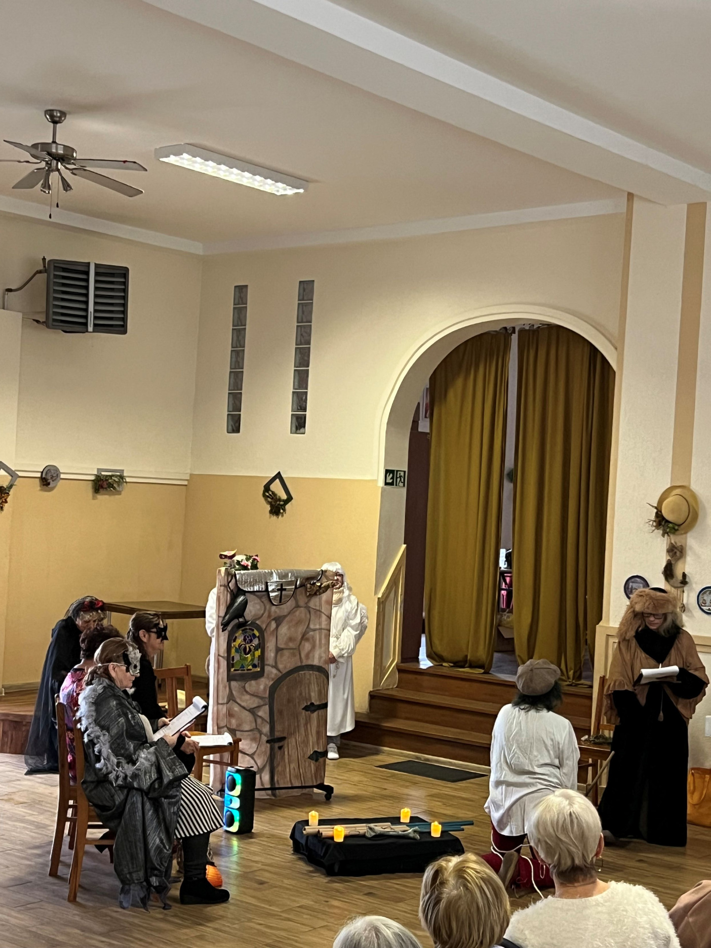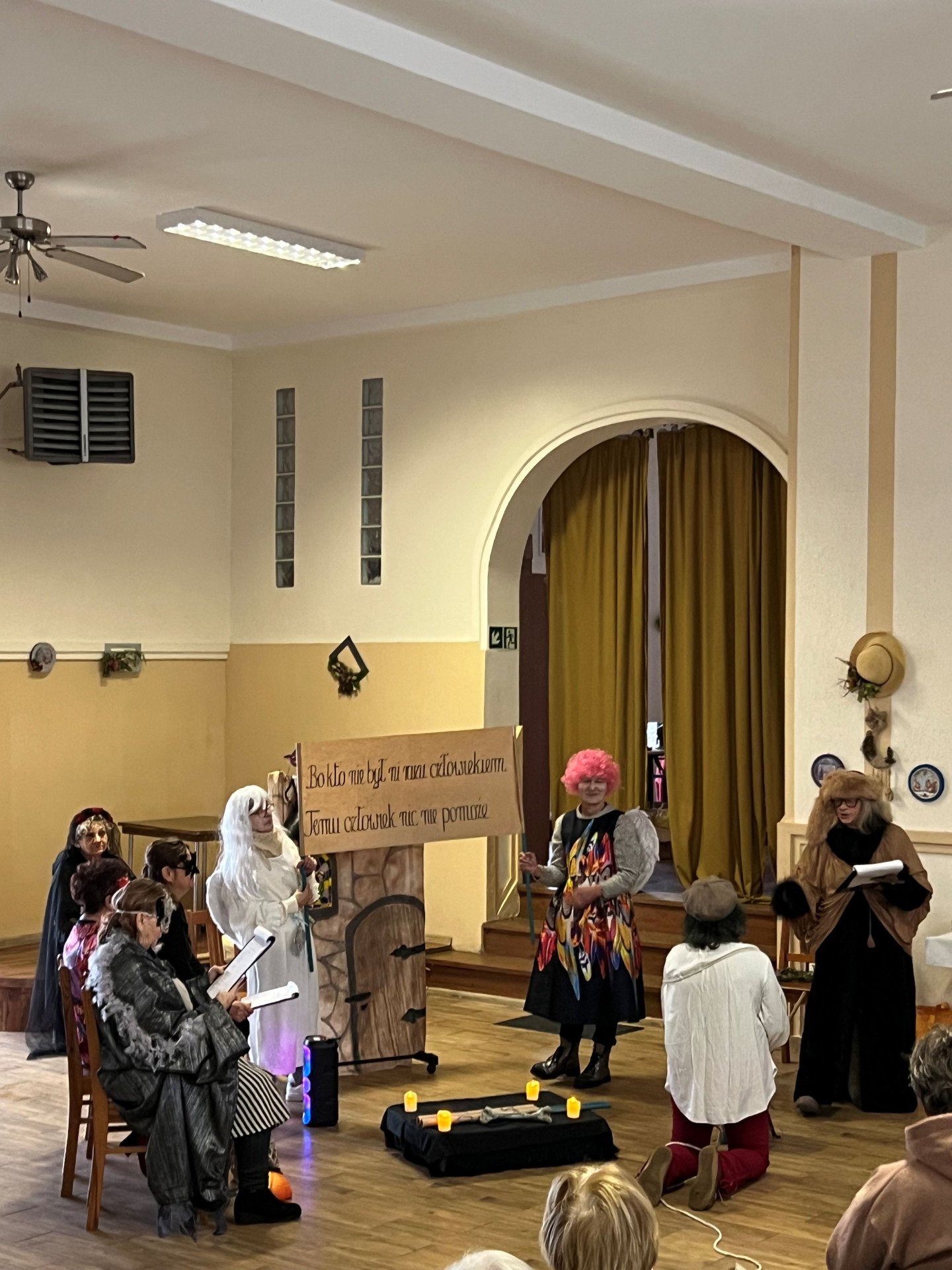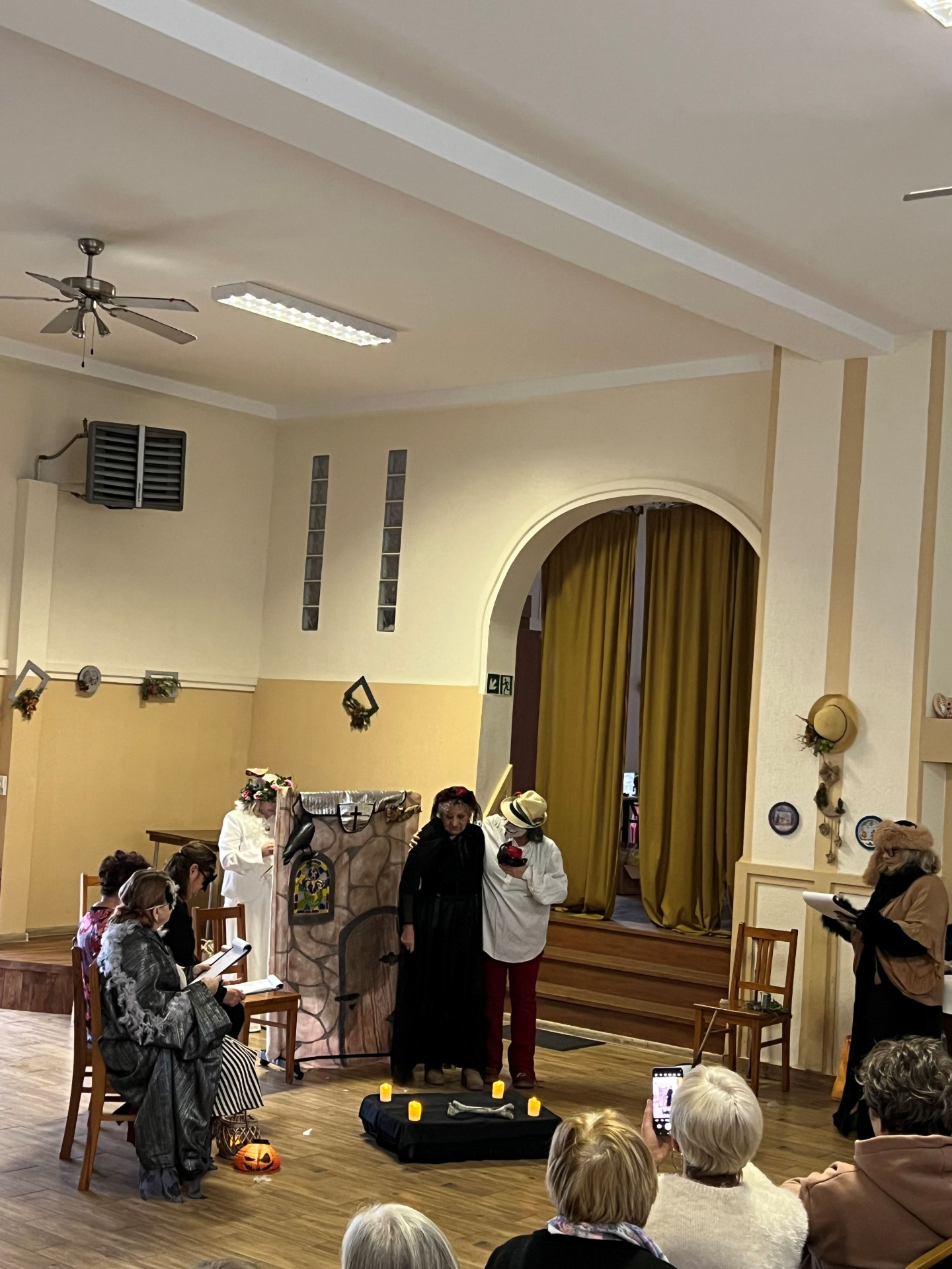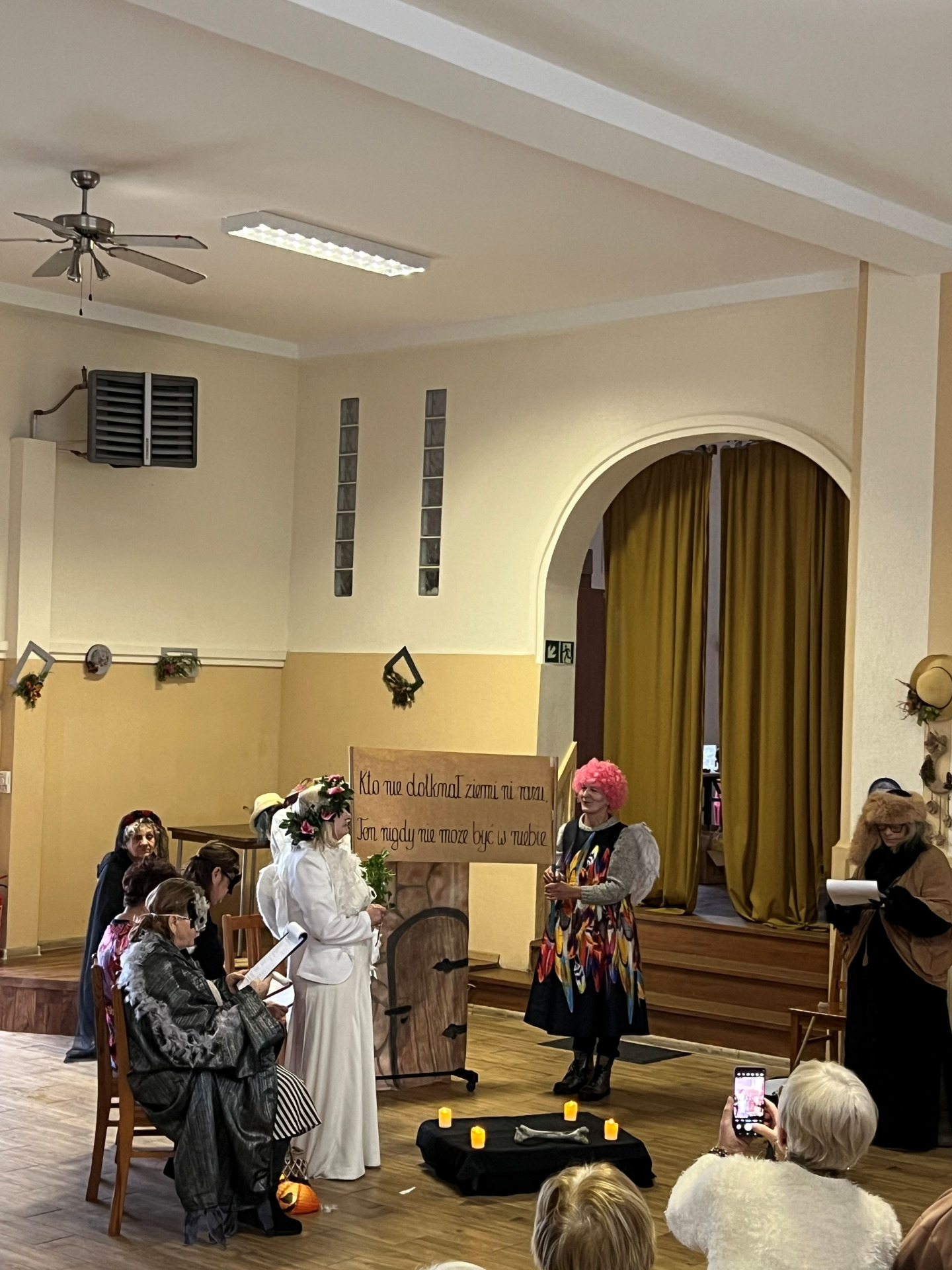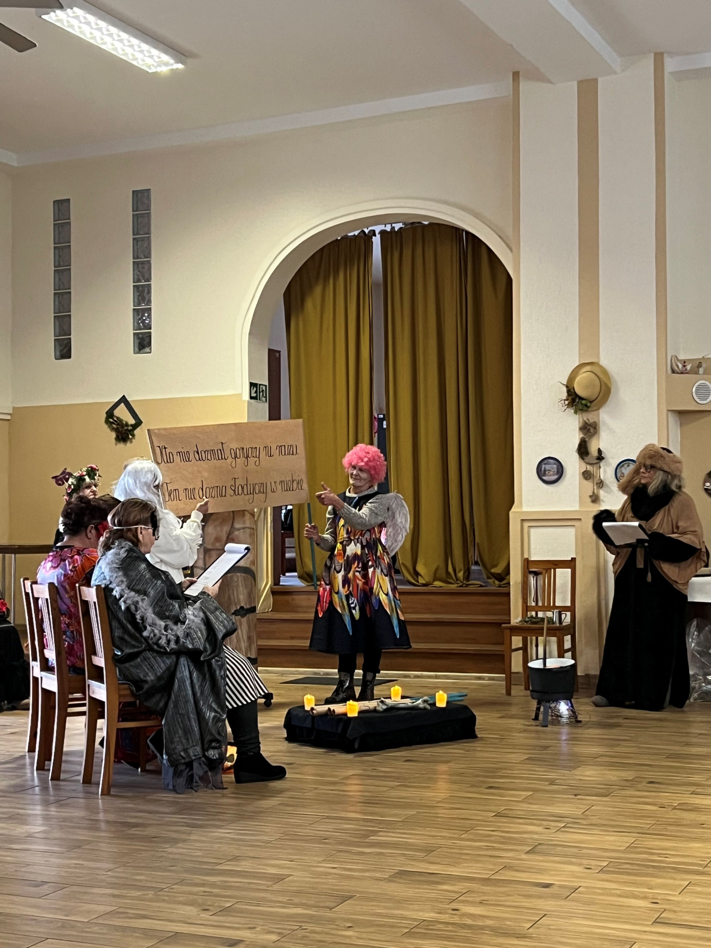 Wszyscy i wszędzie czcimy poetów. Wznosimy im pomniki; w poświęconych im muzeach gromadzimy wszystko, co związane jest z ich życiem i twórczością. Najczęstszym jednak, najbardziej naturalnym, a zarazem najtrwalszym wyrazem kultu, który dla nich żywimy, są nieprzeliczone wydania ich dzieł, które do dzisiaj są dla nas wskazówką i drogowskazem. Klub Senior+ w Wielkim Mędromierzu podczas warsztatów 2 grudnia 2025 r. obejrzał fragmenty „Dziadów” Adama Mickiewicza, w wykonaniu zaprzyjaźnionej grupy 12 osób z Iwca. Seniorów prowadzi Pani Stanisława Iwicka. To duchy przodków w utworze Wieszcza prowadzą nadprzyrodzoną katechezę, dzięki której oglądający mogli sobie przyswoić dwie chrześcijańskie prawdy. Najpierw, że modlitwa i wola żywych przyczyniają się do uporządkowania naszych spraw; potem, że czas jest próbą, z której człowiek zostanie rozliczony. Czas człowieka jest cierpieniem, współczuciem i miłością – a jeśli tak nie jest? – To zmarnowane chwile! Fragment przedstawienia pokazał Seniorom fundamentalne przesłanie ” By po śmierci uzyskać zbawienie - w doczesnym życiu należy kochać, współczuć i cierpieć.”