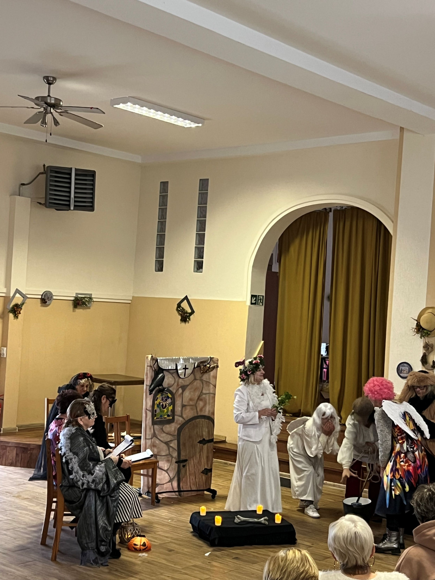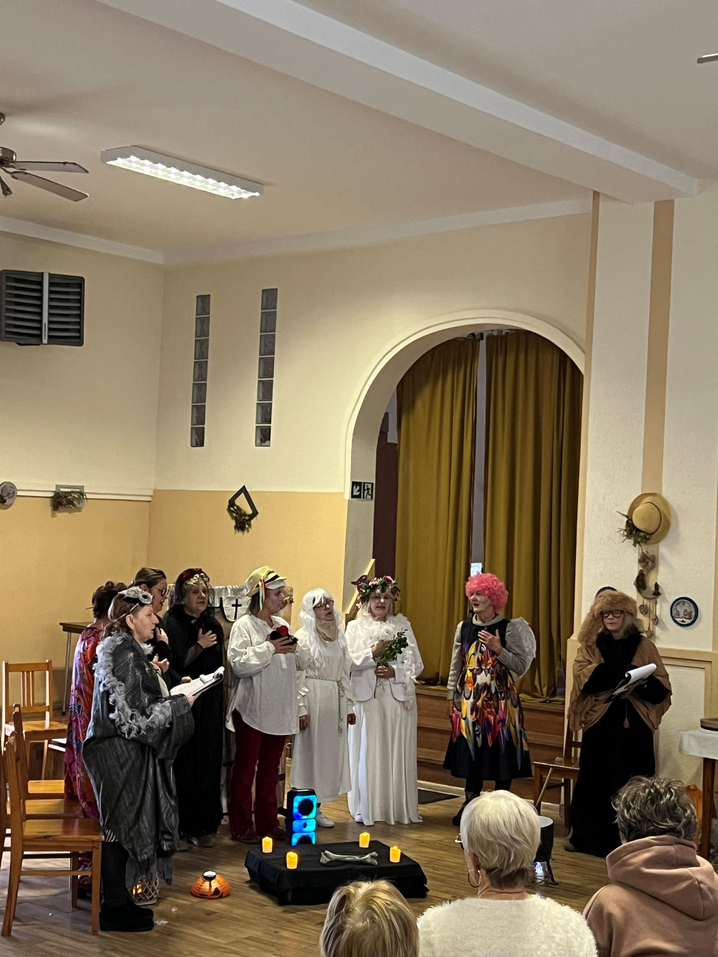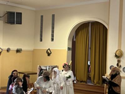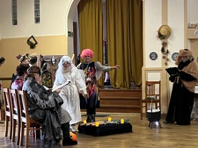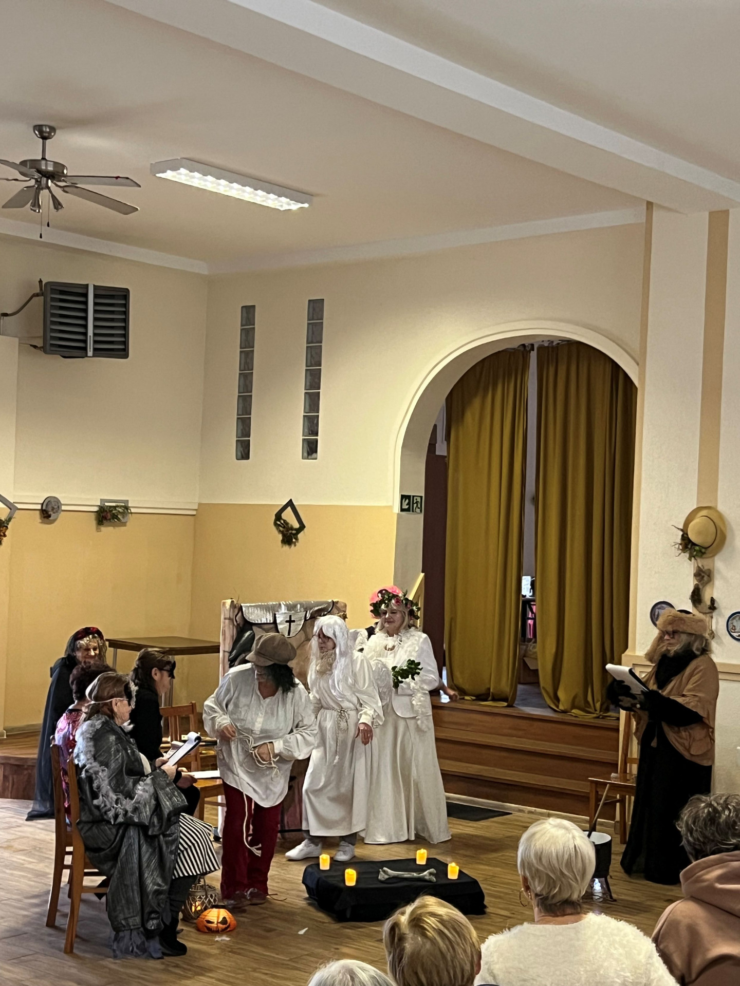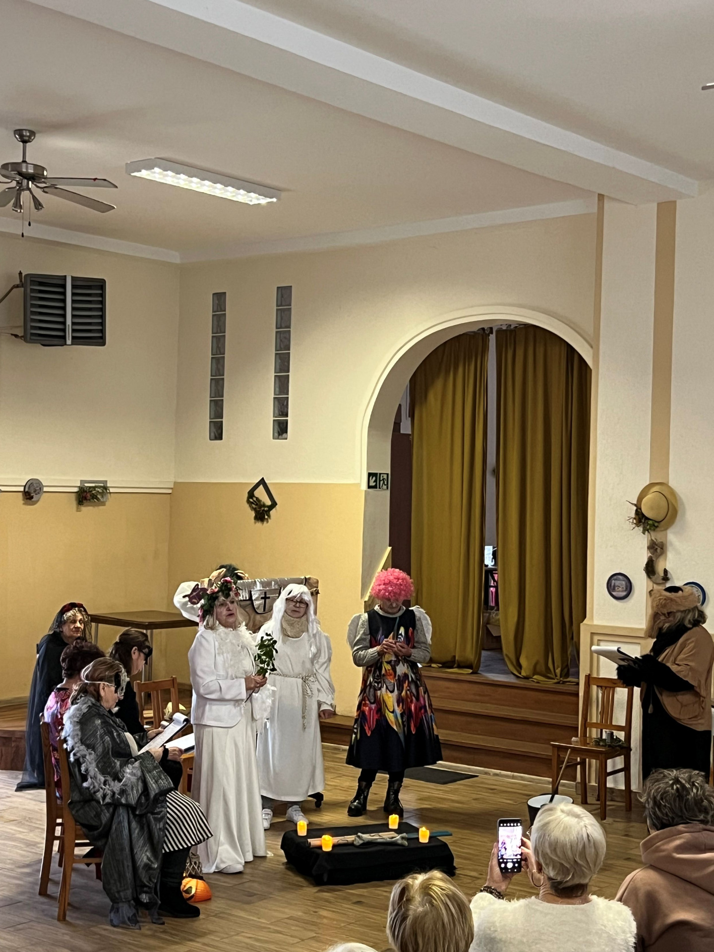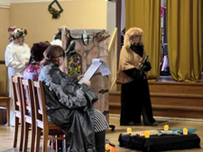 Wszyscy i wszędzie czcimy poetów. Wznosimy im pomniki; w poświęconych im muzeach gromadzimy wszystko, co związane jest z ich życiem i twórczością. Najczęstszym jednak, najbardziej naturalnym, a zarazem najtrwalszym wyrazem kultu, który dla nich żywimy, są nieprzeliczone wydania ich dzieł, które do dzisiaj są dla nas wskazówką i drogowskazem. Klub Senior+ w Wielkim Mędromierzu podczas warsztatów 2 grudnia 2025 r. obejrzał fragmenty „Dziadów” Adama Mickiewicza, w wykonaniu zaprzyjaźnionej grupy 12 osób z Iwca. Seniorów prowadzi Pani Stanisława Iwicka. To duchy przodków w utworze Wieszcza prowadzą nadprzyrodzoną katechezę, dzięki której oglądający mogli sobie przyswoić dwie chrześcijańskie prawdy. Najpierw, że modlitwa i wola żywych przyczyniają się do uporządkowania naszych spraw; potem, że czas jest próbą, z której człowiek zostanie rozliczony. Czas człowieka jest cierpieniem, współczuciem i miłością – a jeśli tak nie jest? – To zmarnowane chwile! Fragment przedstawienia pokazał Seniorom fundamentalne przesłanie ” By po śmierci uzyskać zbawienie - w doczesnym życiu należy kochać, współczuć i cierpieć.”