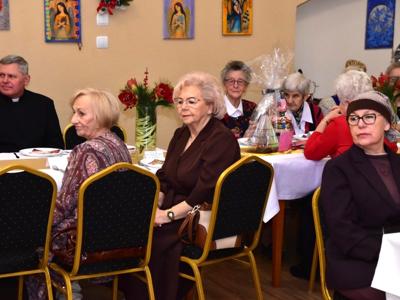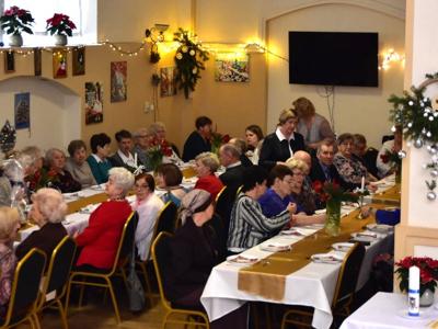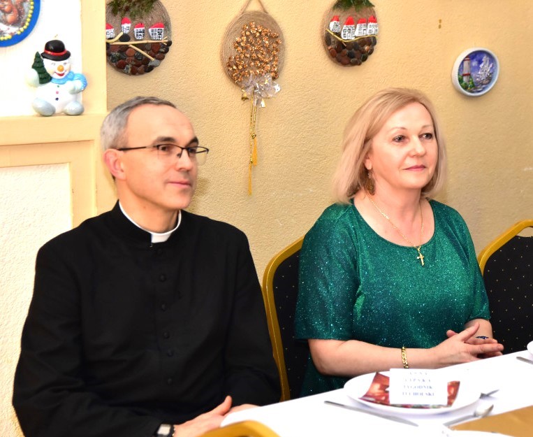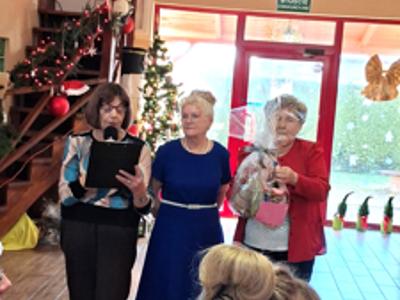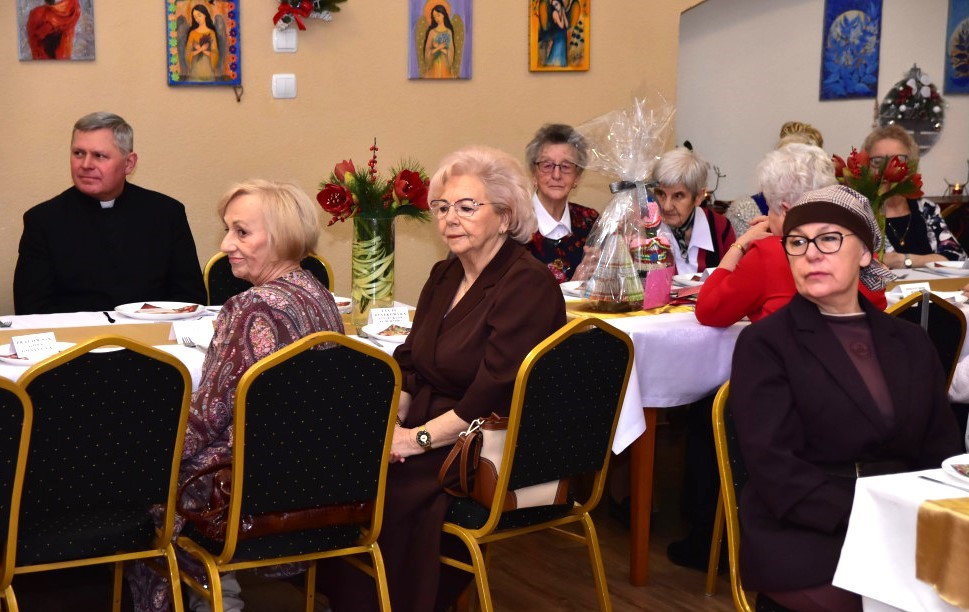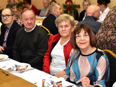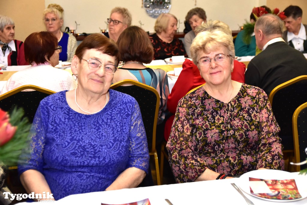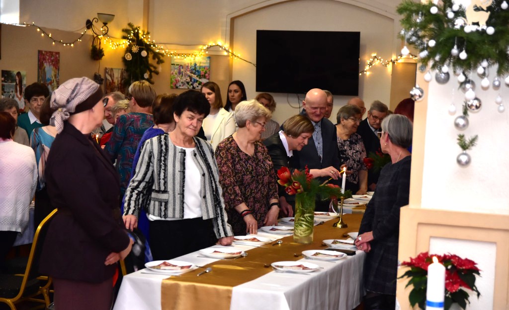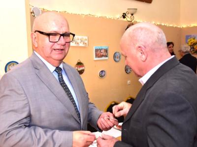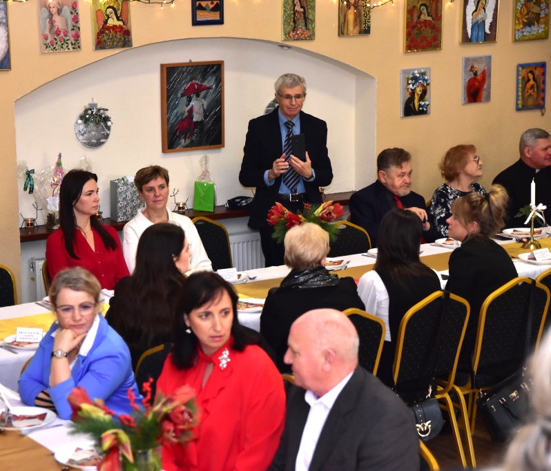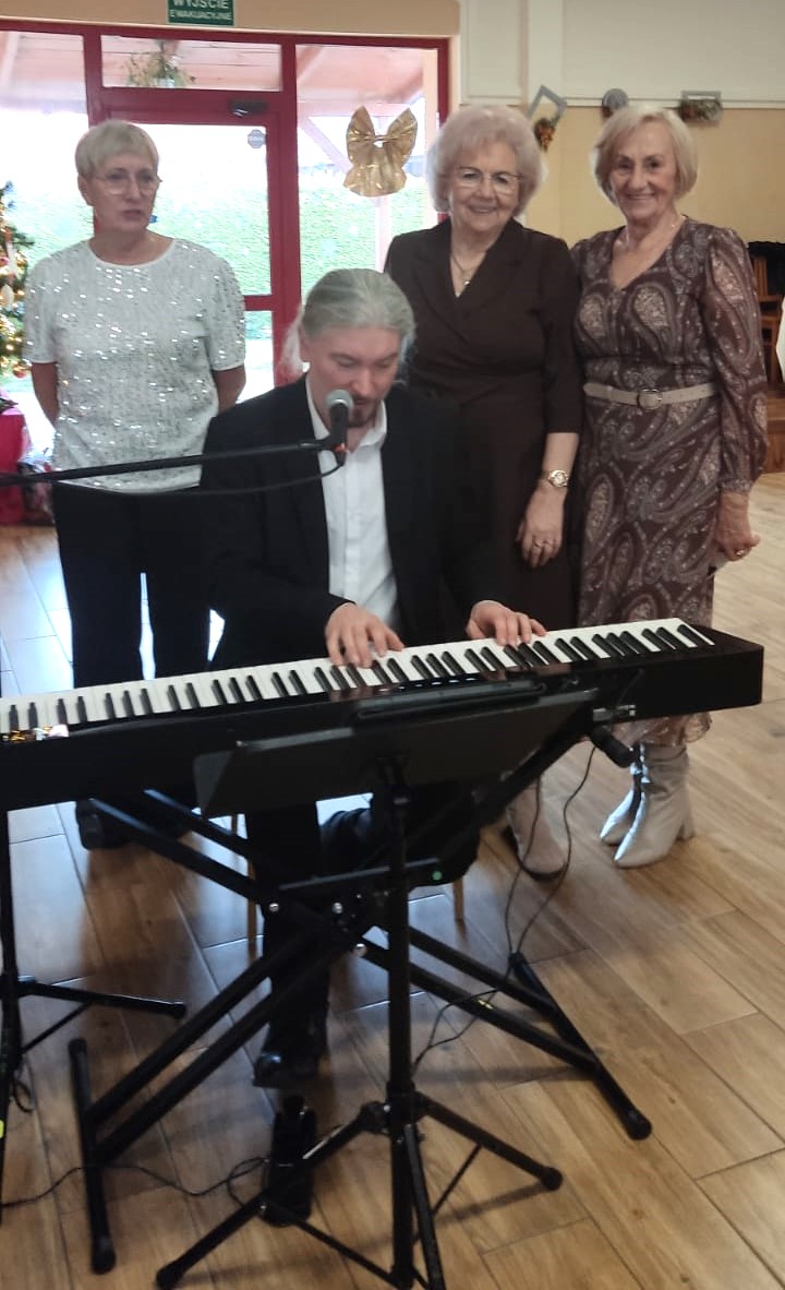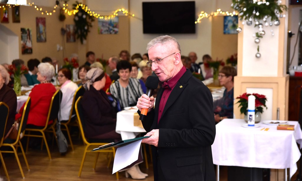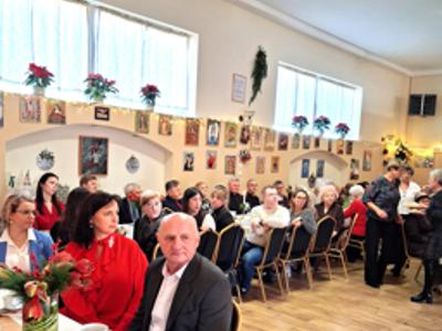 Piosenką „Opowieść o Bożym Narodzeniu”, w piątek 19 grudnia 2025 r. Pan Mirosław Barczuk – rehabilitant, animator kultury, członek Fundacji „Środowisko Wybrzeża” przywitał wszystkie zaproszone osoby na spotkaniu wigilijnym dla Seniorów z placówek wsparcia dziennego: Dziennego Domu Senior+ z Gostycyna i Klubu Senior+, w Wielkim Mędromierzu oraz przedstawicieli klubów z terenu Gminy Gostycyn. Kluby reprezentowali goście w osobach: Pani Grażyna Kida – Przewodnicząca Klubu Seniora „Wrzos” w Gostycynie, Pan Paweł Kaźmierczak – Przewodniczący Klubu Seniora „Malwa” w Pruszczu i Pan Ryszard Kielbratowski – Przewodniczący Klubu Seniora „Grzybek” z Gostycyna. Na spotkaniu obecni byli przedstawiciele władz lokalnych i zaproszeni goście: Pan Andrzej Kłos i Jan Mysiak – wiceprzewodniczący Rady Gminy Gostycyn, Pani Hanna Kufel Sekretarz Gminy, Pani Wiesława Błach – Prezes Spółki „Kamionka”, Sołtysi: Pani Katarzyna Łapka - Sołtys Sołectwa Wielki Mędromierz, Pan Jerzy Ochała – Sołtys Sołectwa Gostycyn, Pani Anna Goźlińska – Dyrektor Powiatowego Centrum Pomocy Rodzinie, Pani Agata Frohlke – Dyrektor Domu dla Dzieci w Gostycynie i Żalnie, Pani Elżbieta Danecka – Prowadząca Rodzinny Dom Pomocy w Wielkim Mędromierzu, Instruktor Klubu Senior+ Pani Łucja Ryszkowska, pracownicy Urzędu Gminy i GOPS współpracujący z Klubami oraz przyjaciele Seniorów i Pani Anna Lipska – redaktor „Tygodnika Tucholskiego”. Prowadzący uroczystość Pan Mirosław Barczuk podkreślił, że to spotkanie - to tradycja w Klubie zapoczątkowana w ubiegłym roku. Zarówno w Polsce jak również na całym świecie, w czasie adwentu - ludzie spotykają się w swoich lokalnych wspólnotach. Potrzebując duchowej głębi, prowadzący wspomniał o doświadczeniach z dzieciństwa: uczestnictwa w roratach, czy rodzinnej tradycji zdobienia choinki. Wspomniał, że to nie materialne aspekty świąt są najważniejsze, ale spokój, radość i porządek wewnętrzny. Bez udziału Pana Boga święta tracą sens. Przywitał Księży naszych dwóch Parafii, na terenie których funkcjonują placówki wsparcia dziennego, Parafii Stanisława Biskupa i Męczennika w Wielkim Mędromierzu - Proboszcza ks. Sławomira Kunka i Parafii pw. Św. Marcina Proboszcza ks. Ireneusz Machut. Prowadząc świąteczny ceremoniał Ksiądz Sławomir Kunka odczytał Ewangelię o Narodzinach Pana Jezusa w Betlejem. Seniorzy uczęszczający do Klubu Senior+ jako gospodarze miejsca odpalili 4 świece od świecy - symbolizującej Światło Chrystusa i zapalili na czterech stołach przygotowanych do wieczerzy – to dla wszystkich mieszkających na północy, południu, wschodzie i zachodzie. Proboszcz ks. Ireneusz Machut przekazał życzenia świąteczne mające charakter religijny i duchowy obecnym. Z ust Kapłana popłynęły przepiękne życzenia na nadchodzący nowy rok. Po wspólnej modlitwie uczestnicy uroczystości podzielili się podarowanym przez Księży Proboszczów opłatkiem - symbolem pojednania i przebaczenia, znakiem przyjaźni i miłości składając sobie życzenia. Podczas składania życzeń rozbrzmiewały słowa piosenki „Eleni” – „Maleńka przyszła miłość”. W tym miejscu Dorota Gromowska – Zastępca Wójta, również w imieniu Wójta Gminy Pana Ireneusza Kucharskiego,(właśnie w tym dniu Pan Wójt odbierał z rąk Wojewody Kujawsko-Pomorskiego wyróżnienie za realizację Programu „Senior +” za 10 lat funkcjonowania placówek wsparcia dziennego. Byliśmy w 2015 r. jedną z dwóch Gmin w województwie: Gostycyn i Janikowo, które przystąpiły do programu) oraz samorządowców złożyła życzenia dla wszystkich mieszkańców Gminy Gostycyn.” Życzymy zdrowia – bo jest największą wartością, radości, spełnienia marzeń, spotkań w gronie najbliższych, wzajemnej życzliwości i spokoju. Niech rok 2026 będzie pełen wiary, a wszystkie kryzysy na świecie zostaną w sposób pokojowy rozwiązane”. Słowa podziękowania od władz zostały skierowane do Pani Łucji Ryszkowskiej – za prowadzenie warsztatów artystycznych, do Pani Darii Buczkowskiej – za piękne kwiaty, które stanowiły ozdobę stołu i do Pana Mirosława Barczuka – za warsztaty rehabilitacyjne, zajęcia gimnastyczne, prowadzenie zajęć z kinezy i fizjoterapii grupowej oraz oprawę muzyczną i nagłośnienie. Podziękowaniami obdarowano Seniorów za pracę i zaangażowanie i wspólne przygotowanie uroczystości. Dorota Gromowska podkreśliła, że na uwagę zasługuje wystawa prac Seniorów. Prace, które zostały wyeksponowane to całoroczny dorobek Seniorów, a prace powstały podczas cyklicznych zajęć w Klubie. Prowadzący uroczystość podkreślając, że Boże Narodzenie - to czas obfitujący w piękne zwyczaje, a o jego niezwykłości w dużej mierze decydują polskie zamiłowanie do biesiadowania i gościnność. Potrawy na wigilijnym stole to nieodłączny element naszej tradycji. W taki oto sposób zaprosił gości do poczęstunku. Nadszedł też czas na muzykę i śpiew, a one zawsze podnosiły człowieka ponad jego ułomnością – w tym szczególnym dniu prowadzący przedstawił obecnym gościa Pana Michała Hajduczenia. Niezwykły gość – to wokalista, kontrabasista, kompozytor, aranżer, psalmista. Odznaczony odznaką honorową „Zasłużony dla Kultury Polskiej” (2019). Absolwent Wydziału Wokalno-Aktorskiego i Wydziału Instrumentalnego Akademii Muzycznej w Bydgoszczy. Psalmista w Cerkwiach Prawosławnych w Ciechocinku i Toruniu. Do Seniorów i gości przybył również Gwiazdor - Michał, i przyniósł prezenty – skromne pamiątki swojej postaci. Towarzyszyły mu dwie Śnieżynki: Kasia i Paulina. Spotkanie zakończyło się sesją wspólnych zdjęć.