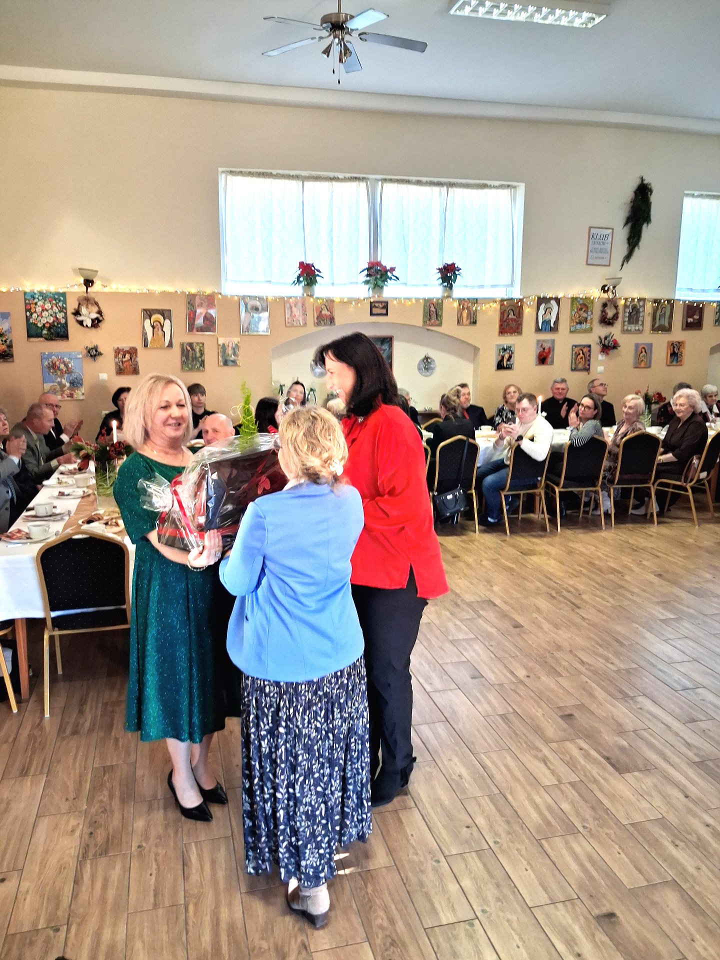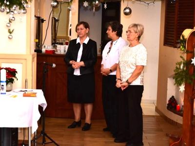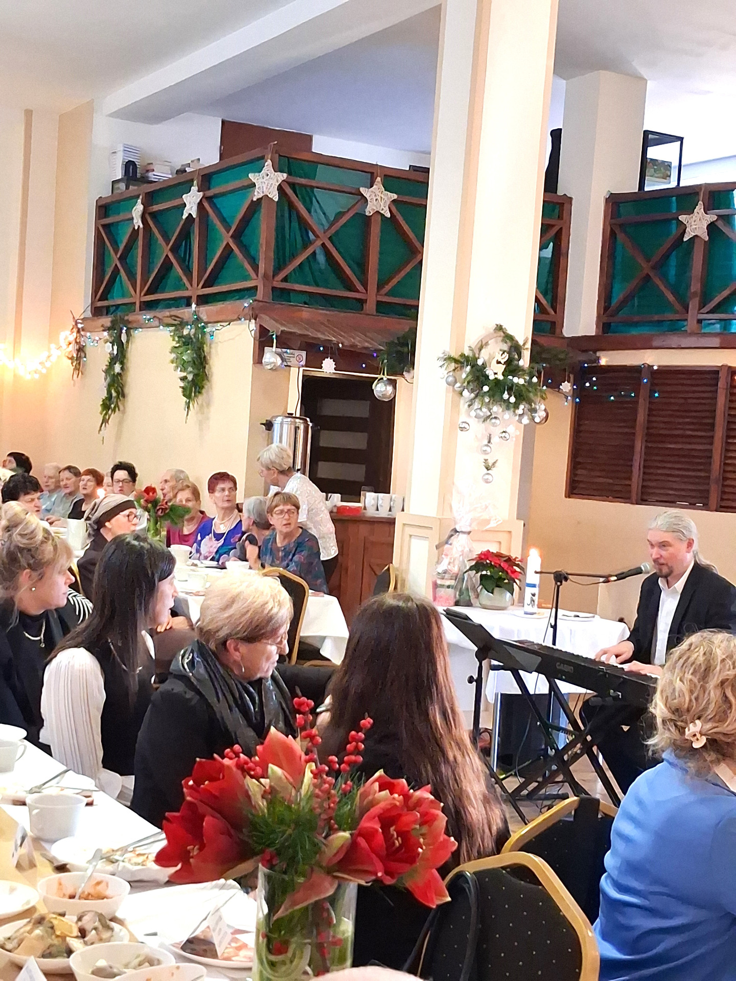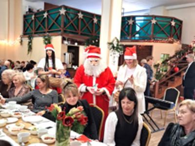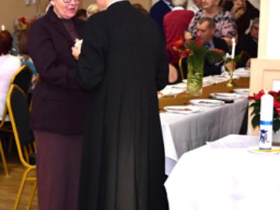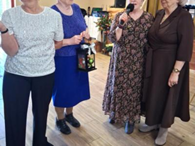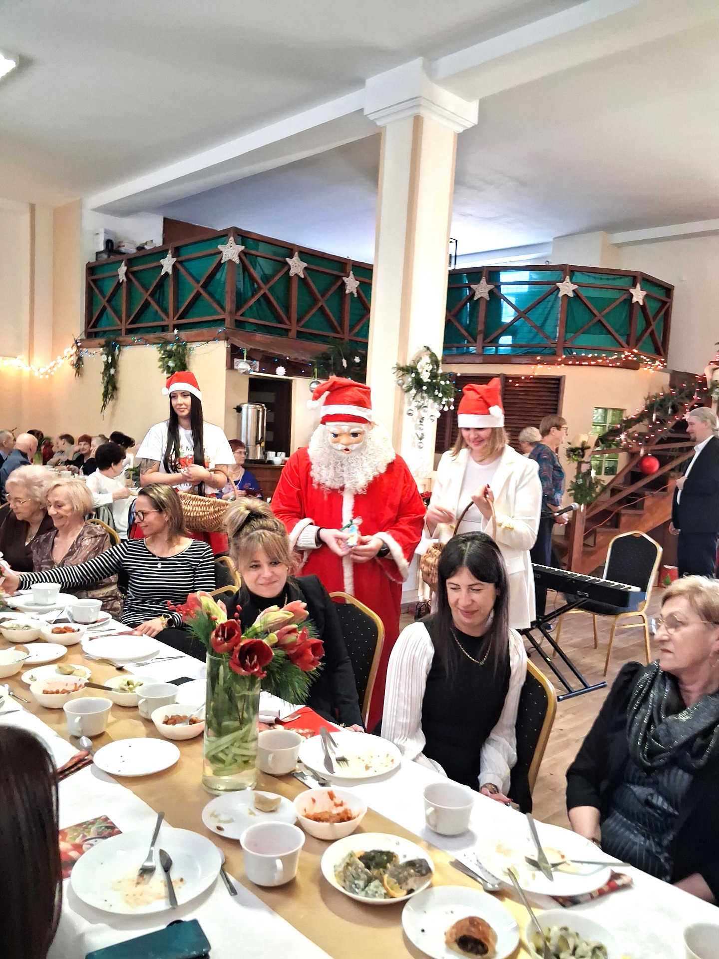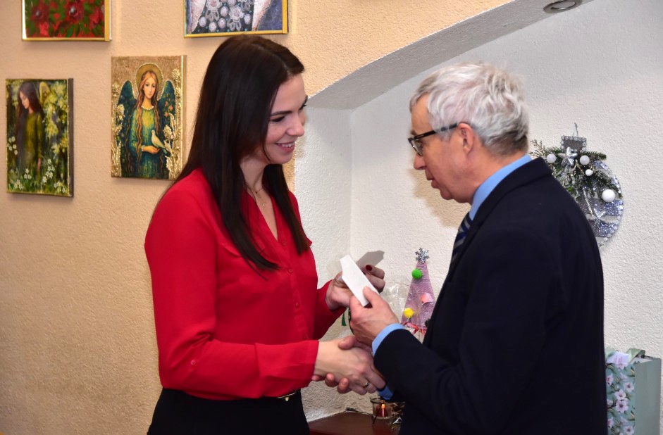 Piosenką „Opowieść o Bożym Narodzeniu”, w piątek 19 grudnia 2025 r. Pan Mirosław Barczuk – rehabilitant, animator kultury, członek Fundacji „Środowisko Wybrzeża” przywitał wszystkie zaproszone osoby na spotkaniu wigilijnym dla Seniorów z placówek wsparcia dziennego: Dziennego Domu Senior+ z Gostycyna i Klubu Senior+, w Wielkim Mędromierzu oraz przedstawicieli klubów z terenu Gminy Gostycyn. Kluby reprezentowali goście w osobach: Pani Grażyna Kida – Przewodnicząca Klubu Seniora „Wrzos” w Gostycynie, Pan Paweł Kaźmierczak – Przewodniczący Klubu Seniora „Malwa” w Pruszczu i Pan Ryszard Kielbratowski – Przewodniczący Klubu Seniora „Grzybek” z Gostycyna. Na spotkaniu obecni byli przedstawiciele władz lokalnych i zaproszeni goście: Pan Andrzej Kłos i Jan Mysiak – wiceprzewodniczący Rady Gminy Gostycyn, Pani Hanna Kufel Sekretarz Gminy, Pani Wiesława Błach – Prezes Spółki „Kamionka”, Sołtysi: Pani Katarzyna Łapka - Sołtys Sołectwa Wielki Mędromierz, Pan Jerzy Ochała – Sołtys Sołectwa Gostycyn, Pani Anna Goźlińska – Dyrektor Powiatowego Centrum Pomocy Rodzinie, Pani Agata Frohlke – Dyrektor Domu dla Dzieci w Gostycynie i Żalnie, Pani Elżbieta Danecka – Prowadząca Rodzinny Dom Pomocy w Wielkim Mędromierzu, Instruktor Klubu Senior+ Pani Łucja Ryszkowska, pracownicy Urzędu Gminy i GOPS współpracujący z Klubami oraz przyjaciele Seniorów i Pani Anna Lipska – redaktor „Tygodnika Tucholskiego”. Prowadzący uroczystość Pan Mirosław Barczuk podkreślił, że to spotkanie - to tradycja w Klubie zapoczątkowana w ubiegłym roku. Zarówno w Polsce jak również na całym świecie, w czasie adwentu - ludzie spotykają się w swoich lokalnych wspólnotach. Potrzebując duchowej głębi, prowadzący wspomniał o doświadczeniach z dzieciństwa: uczestnictwa w roratach, czy rodzinnej tradycji zdobienia choinki. Wspomniał, że to nie materialne aspekty świąt są najważniejsze, ale spokój, radość i porządek wewnętrzny. Bez udziału Pana Boga święta tracą sens. Przywitał Księży naszych dwóch Parafii, na terenie których funkcjonują placówki wsparcia dziennego, Parafii Stanisława Biskupa i Męczennika w Wielkim Mędromierzu - Proboszcza ks. Sławomira Kunka i Parafii pw. Św. Marcina Proboszcza ks. Ireneusz Machut. Prowadząc świąteczny ceremoniał Ksiądz Sławomir Kunka odczytał Ewangelię o Narodzinach Pana Jezusa w Betlejem. Seniorzy uczęszczający do Klubu Senior+ jako gospodarze miejsca odpalili 4 świece od świecy - symbolizującej Światło Chrystusa i zapalili na czterech stołach przygotowanych do wieczerzy – to dla wszystkich mieszkających na północy, południu, wschodzie i zachodzie. Proboszcz ks. Ireneusz Machut przekazał życzenia świąteczne mające charakter religijny i duchowy obecnym. Z ust Kapłana popłynęły przepiękne życzenia na nadchodzący nowy rok. Po wspólnej modlitwie uczestnicy uroczystości podzielili się podarowanym przez Księży Proboszczów opłatkiem - symbolem pojednania i przebaczenia, znakiem przyjaźni i miłości składając sobie życzenia. Podczas składania życzeń rozbrzmiewały słowa piosenki „Eleni” – „Maleńka przyszła miłość”. W tym miejscu Dorota Gromowska – Zastępca Wójta, również w imieniu Wójta Gminy Pana Ireneusza Kucharskiego,(właśnie w tym dniu Pan Wójt odbierał z rąk Wojewody Kujawsko-Pomorskiego wyróżnienie za realizację Programu „Senior +” za 10 lat funkcjonowania placówek wsparcia dziennego. Byliśmy w 2015 r. jedną z dwóch Gmin w województwie: Gostycyn i Janikowo, które przystąpiły do programu) oraz samorządowców złożyła życzenia dla wszystkich mieszkańców Gminy Gostycyn.” Życzymy zdrowia – bo jest największą wartością, radości, spełnienia marzeń, spotkań w gronie najbliższych, wzajemnej życzliwości i spokoju. Niech rok 2026 będzie pełen wiary, a wszystkie kryzysy na świecie zostaną w sposób pokojowy rozwiązane”. Słowa podziękowania od władz zostały skierowane do Pani Łucji Ryszkowskiej – za prowadzenie warsztatów artystycznych, do Pani Darii Buczkowskiej – za piękne kwiaty, które stanowiły ozdobę stołu i do Pana Mirosława Barczuka – za warsztaty rehabilitacyjne, zajęcia gimnastyczne, prowadzenie zajęć z kinezy i fizjoterapii grupowej oraz oprawę muzyczną i nagłośnienie. Podziękowaniami obdarowano Seniorów za pracę i zaangażowanie i wspólne przygotowanie uroczystości. Dorota Gromowska podkreśliła, że na uwagę zasługuje wystawa prac Seniorów. Prace, które zostały wyeksponowane to całoroczny dorobek Seniorów, a prace powstały podczas cyklicznych zajęć w Klubie. Prowadzący uroczystość podkreślając, że Boże Narodzenie - to czas obfitujący w piękne zwyczaje, a o jego niezwykłości w dużej mierze decydują polskie zamiłowanie do biesiadowania i gościnność. Potrawy na wigilijnym stole to nieodłączny element naszej tradycji. W taki oto sposób zaprosił gości do poczęstunku. Nadszedł też czas na muzykę i śpiew, a one zawsze podnosiły człowieka ponad jego ułomnością – w tym szczególnym dniu prowadzący przedstawił obecnym gościa Pana Michała Hajduczenia. Niezwykły gość – to wokalista, kontrabasista, kompozytor, aranżer, psalmista. Odznaczony odznaką honorową „Zasłużony dla Kultury Polskiej” (2019). Absolwent Wydziału Wokalno-Aktorskiego i Wydziału Instrumentalnego Akademii Muzycznej w Bydgoszczy. Psalmista w Cerkwiach Prawosławnych w Ciechocinku i Toruniu. Do Seniorów i gości przybył również Gwiazdor - Michał, i przyniósł prezenty – skromne pamiątki swojej postaci. Towarzyszyły mu dwie Śnieżynki: Kasia i Paulina. Spotkanie zakończyło się sesją wspólnych zdjęć.