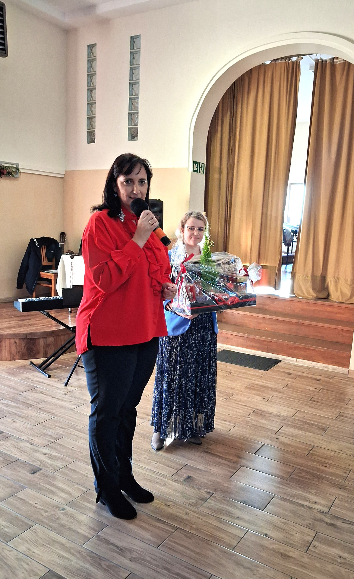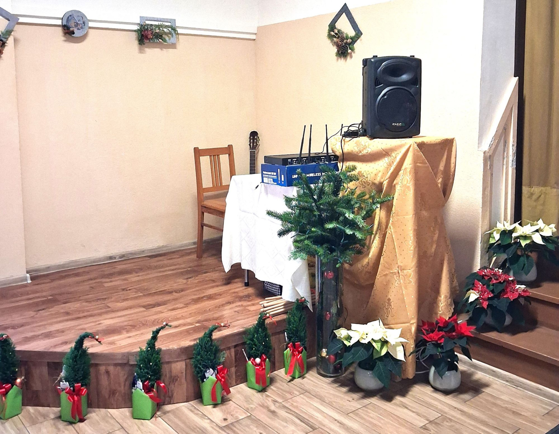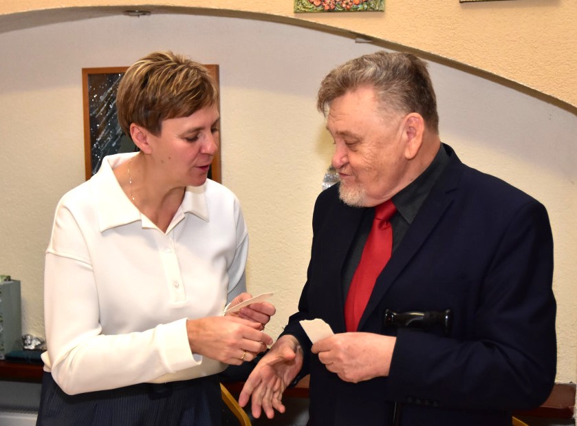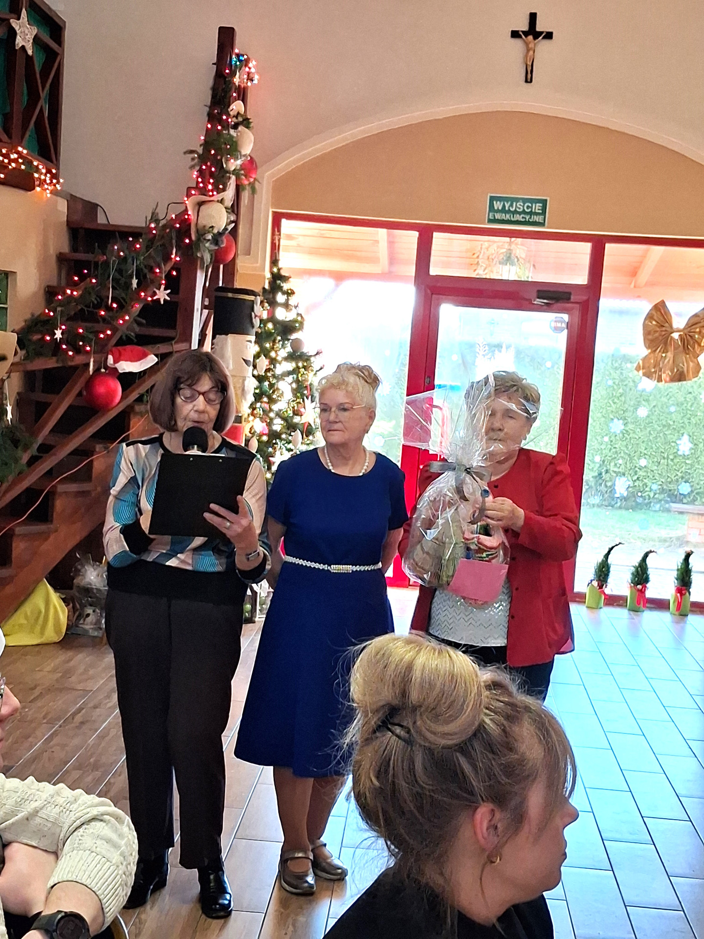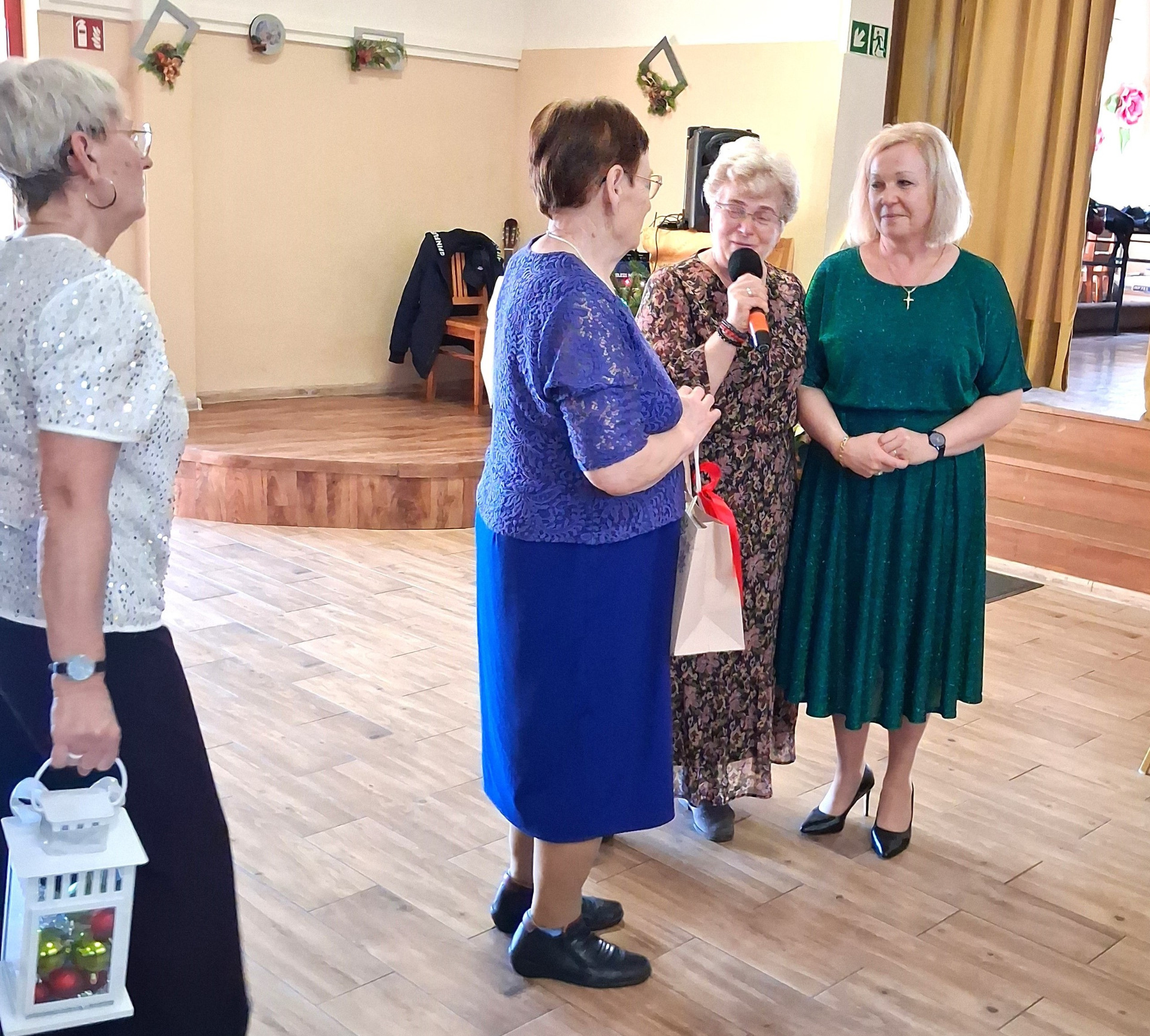 Piosenką „Opowieść o Bożym Narodzeniu”, w piątek 19 grudnia 2025 r. Pan Mirosław Barczuk – rehabilitant, animator kultury, członek Fundacji „Środowisko Wybrzeża” przywitał wszystkie zaproszone osoby na spotkaniu wigilijnym dla Seniorów z placówek wsparcia dziennego: Dziennego Domu Senior+ z Gostycyna i Klubu Senior+, w Wielkim Mędromierzu oraz przedstawicieli klubów z terenu Gminy Gostycyn. Kluby reprezentowali goście w osobach: Pani Grażyna Kida – Przewodnicząca Klubu Seniora „Wrzos” w Gostycynie, Pan Paweł Kaźmierczak – Przewodniczący Klubu Seniora „Malwa” w Pruszczu i Pan Ryszard Kielbratowski – Przewodniczący Klubu Seniora „Grzybek” z Gostycyna. Na spotkaniu obecni byli przedstawiciele władz lokalnych i zaproszeni goście: Pan Andrzej Kłos i Jan Mysiak – wiceprzewodniczący Rady Gminy Gostycyn, Pani Hanna Kufel Sekretarz Gminy, Pani Wiesława Błach – Prezes Spółki „Kamionka”, Sołtysi: Pani Katarzyna Łapka - Sołtys Sołectwa Wielki Mędromierz, Pan Jerzy Ochała – Sołtys Sołectwa Gostycyn, Pani Anna Goźlińska – Dyrektor Powiatowego Centrum Pomocy Rodzinie, Pani Agata Frohlke – Dyrektor Domu dla Dzieci w Gostycynie i Żalnie, Pani Elżbieta Danecka – Prowadząca Rodzinny Dom Pomocy w Wielkim Mędromierzu, Instruktor Klubu Senior+ Pani Łucja Ryszkowska, pracownicy Urzędu Gminy i GOPS współpracujący z Klubami oraz przyjaciele Seniorów i Pani Anna Lipska – redaktor „Tygodnika Tucholskiego”. Prowadzący uroczystość Pan Mirosław Barczuk podkreślił, że to spotkanie - to tradycja w Klubie zapoczątkowana w ubiegłym roku. Zarówno w Polsce jak również na całym świecie, w czasie adwentu - ludzie spotykają się w swoich lokalnych wspólnotach. Potrzebując duchowej głębi, prowadzący wspomniał o doświadczeniach z dzieciństwa: uczestnictwa w roratach, czy rodzinnej tradycji zdobienia choinki. Wspomniał, że to nie materialne aspekty świąt są najważniejsze, ale spokój, radość i porządek wewnętrzny. Bez udziału Pana Boga święta tracą sens. Przywitał Księży naszych dwóch Parafii, na terenie których funkcjonują placówki wsparcia dziennego, Parafii Stanisława Biskupa i Męczennika w Wielkim Mędromierzu - Proboszcza ks. Sławomira Kunka i Parafii pw. Św. Marcina Proboszcza ks. Ireneusz Machut. Prowadząc świąteczny ceremoniał Ksiądz Sławomir Kunka odczytał Ewangelię o Narodzinach Pana Jezusa w Betlejem. Seniorzy uczęszczający do Klubu Senior+ jako gospodarze miejsca odpalili 4 świece od świecy - symbolizującej Światło Chrystusa i zapalili na czterech stołach przygotowanych do wieczerzy – to dla wszystkich mieszkających na północy, południu, wschodzie i zachodzie. Proboszcz ks. Ireneusz Machut przekazał życzenia świąteczne mające charakter religijny i duchowy obecnym. Z ust Kapłana popłynęły przepiękne życzenia na nadchodzący nowy rok. Po wspólnej modlitwie uczestnicy uroczystości podzielili się podarowanym przez Księży Proboszczów opłatkiem - symbolem pojednania i przebaczenia, znakiem przyjaźni i miłości składając sobie życzenia. Podczas składania życzeń rozbrzmiewały słowa piosenki „Eleni” – „Maleńka przyszła miłość”. W tym miejscu Dorota Gromowska – Zastępca Wójta, również w imieniu Wójta Gminy Pana Ireneusza Kucharskiego,(właśnie w tym dniu Pan Wójt odbierał z rąk Wojewody Kujawsko-Pomorskiego wyróżnienie za realizację Programu „Senior +” za 10 lat funkcjonowania placówek wsparcia dziennego. Byliśmy w 2015 r. jedną z dwóch Gmin w województwie: Gostycyn i Janikowo, które przystąpiły do programu) oraz samorządowców złożyła życzenia dla wszystkich mieszkańców Gminy Gostycyn.” Życzymy zdrowia – bo jest największą wartością, radości, spełnienia marzeń, spotkań w gronie najbliższych, wzajemnej życzliwości i spokoju. Niech rok 2026 będzie pełen wiary, a wszystkie kryzysy na świecie zostaną w sposób pokojowy rozwiązane”. Słowa podziękowania od władz zostały skierowane do Pani Łucji Ryszkowskiej – za prowadzenie warsztatów artystycznych, do Pani Darii Buczkowskiej – za piękne kwiaty, które stanowiły ozdobę stołu i do Pana Mirosława Barczuka – za warsztaty rehabilitacyjne, zajęcia gimnastyczne, prowadzenie zajęć z kinezy i fizjoterapii grupowej oraz oprawę muzyczną i nagłośnienie. Podziękowaniami obdarowano Seniorów za pracę i zaangażowanie i wspólne przygotowanie uroczystości. Dorota Gromowska podkreśliła, że na uwagę zasługuje wystawa prac Seniorów. Prace, które zostały wyeksponowane to całoroczny dorobek Seniorów, a prace powstały podczas cyklicznych zajęć w Klubie. Prowadzący uroczystość podkreślając, że Boże Narodzenie - to czas obfitujący w piękne zwyczaje, a o jego niezwykłości w dużej mierze decydują polskie zamiłowanie do biesiadowania i gościnność. Potrawy na wigilijnym stole to nieodłączny element naszej tradycji. W taki oto sposób zaprosił gości do poczęstunku. Nadszedł też czas na muzykę i śpiew, a one zawsze podnosiły człowieka ponad jego ułomnością – w tym szczególnym dniu prowadzący przedstawił obecnym gościa Pana Michała Hajduczenia. Niezwykły gość – to wokalista, kontrabasista, kompozytor, aranżer, psalmista. Odznaczony odznaką honorową „Zasłużony dla Kultury Polskiej” (2019). Absolwent Wydziału Wokalno-Aktorskiego i Wydziału Instrumentalnego Akademii Muzycznej w Bydgoszczy. Psalmista w Cerkwiach Prawosławnych w Ciechocinku i Toruniu. Do Seniorów i gości przybył również Gwiazdor - Michał, i przyniósł prezenty – skromne pamiątki swojej postaci. Towarzyszyły mu dwie Śnieżynki: Kasia i Paulina. Spotkanie zakończyło się sesją wspólnych zdjęć.
