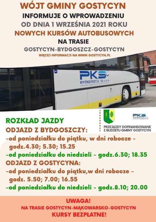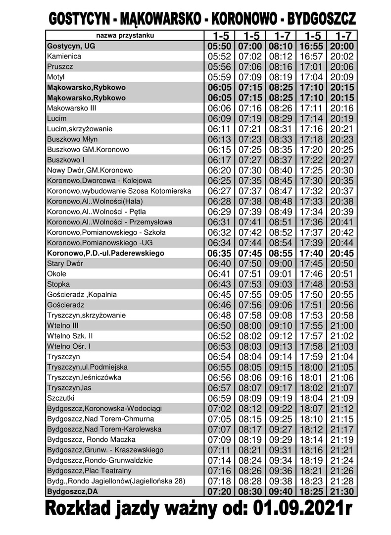 Od 1 września nowe kursy autobusowe do Bydgoszczy.