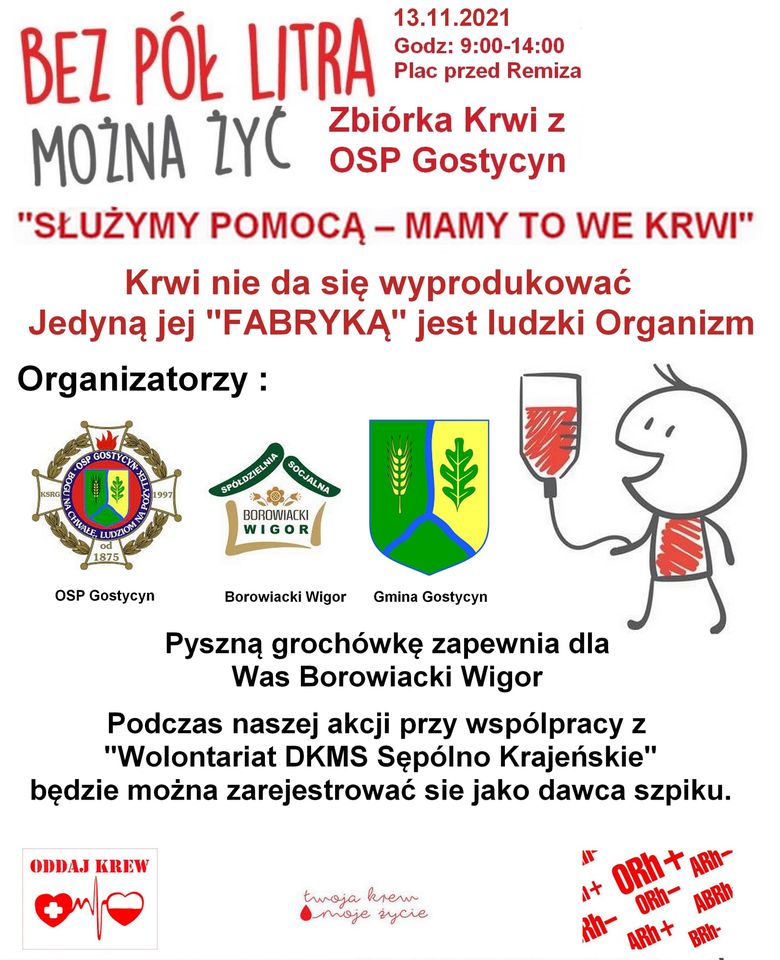 Zbiórka krwi z OSP Gostycyn - 13 listopada 2021 r. od godz. 9.00.