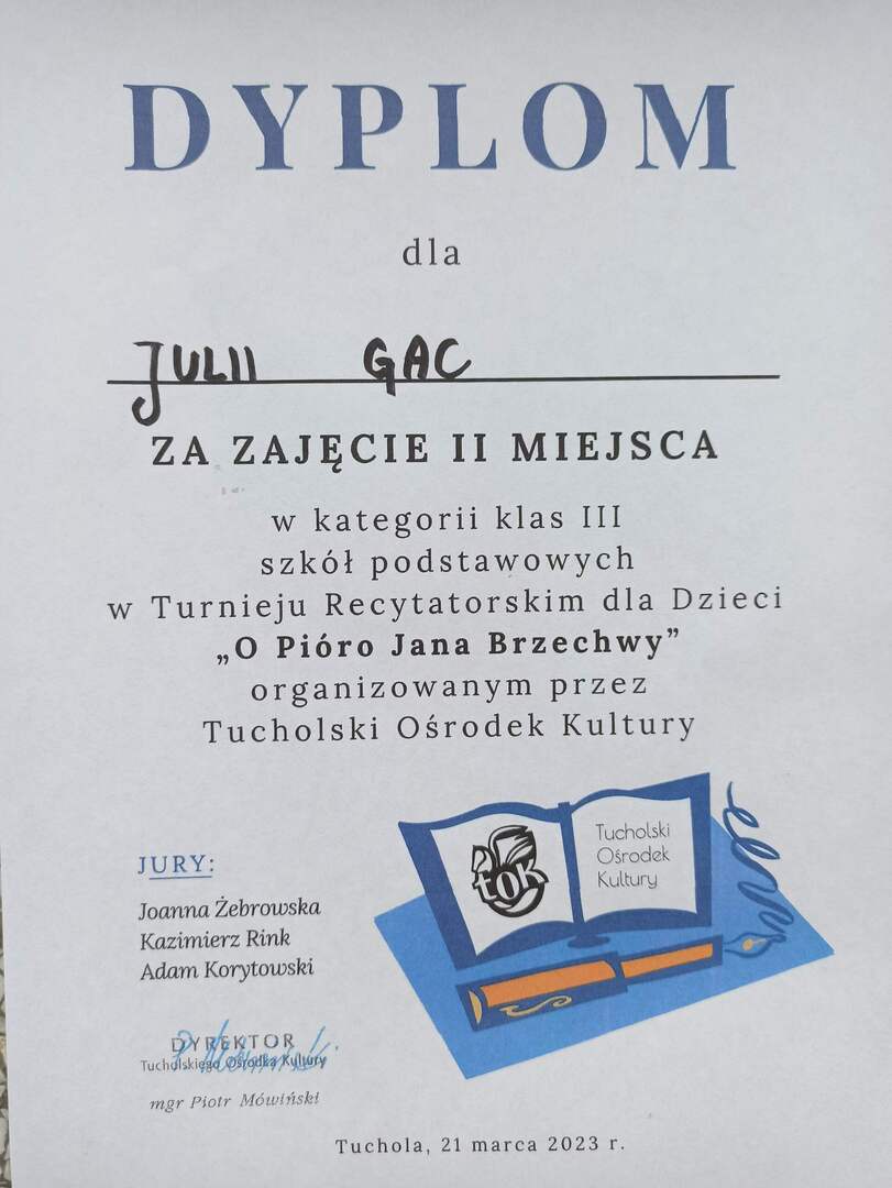 Julia Gac zajęła II miejsce, natomiast Marcelina Kluska zajęła III miejsce.