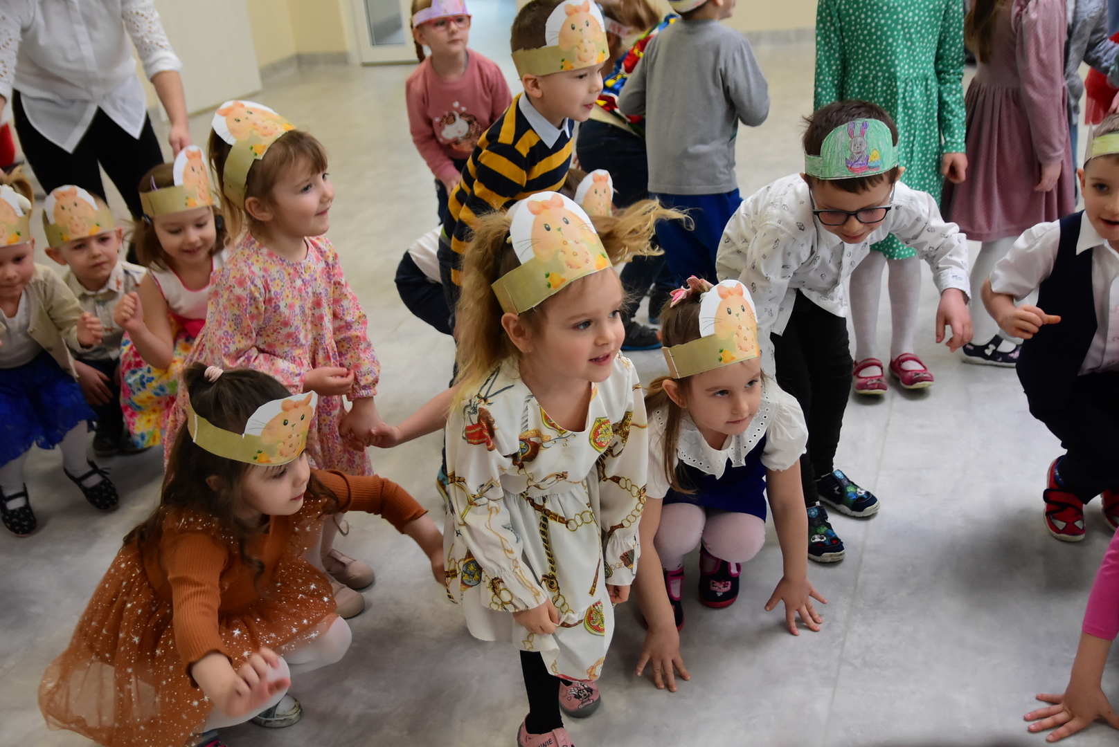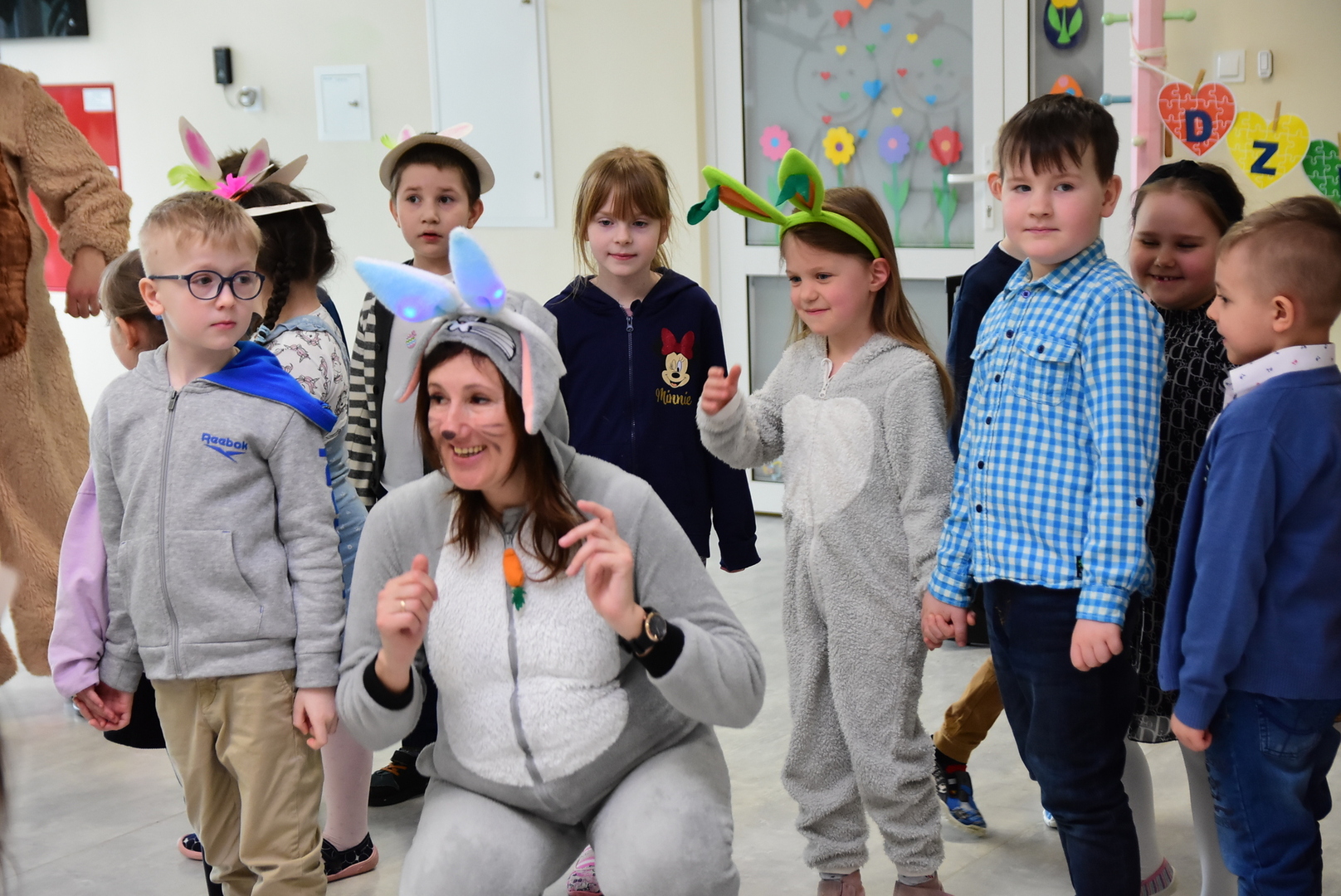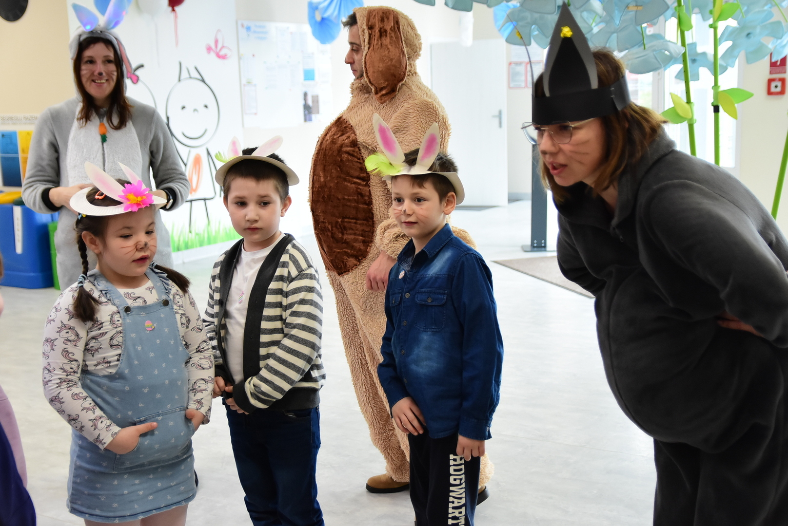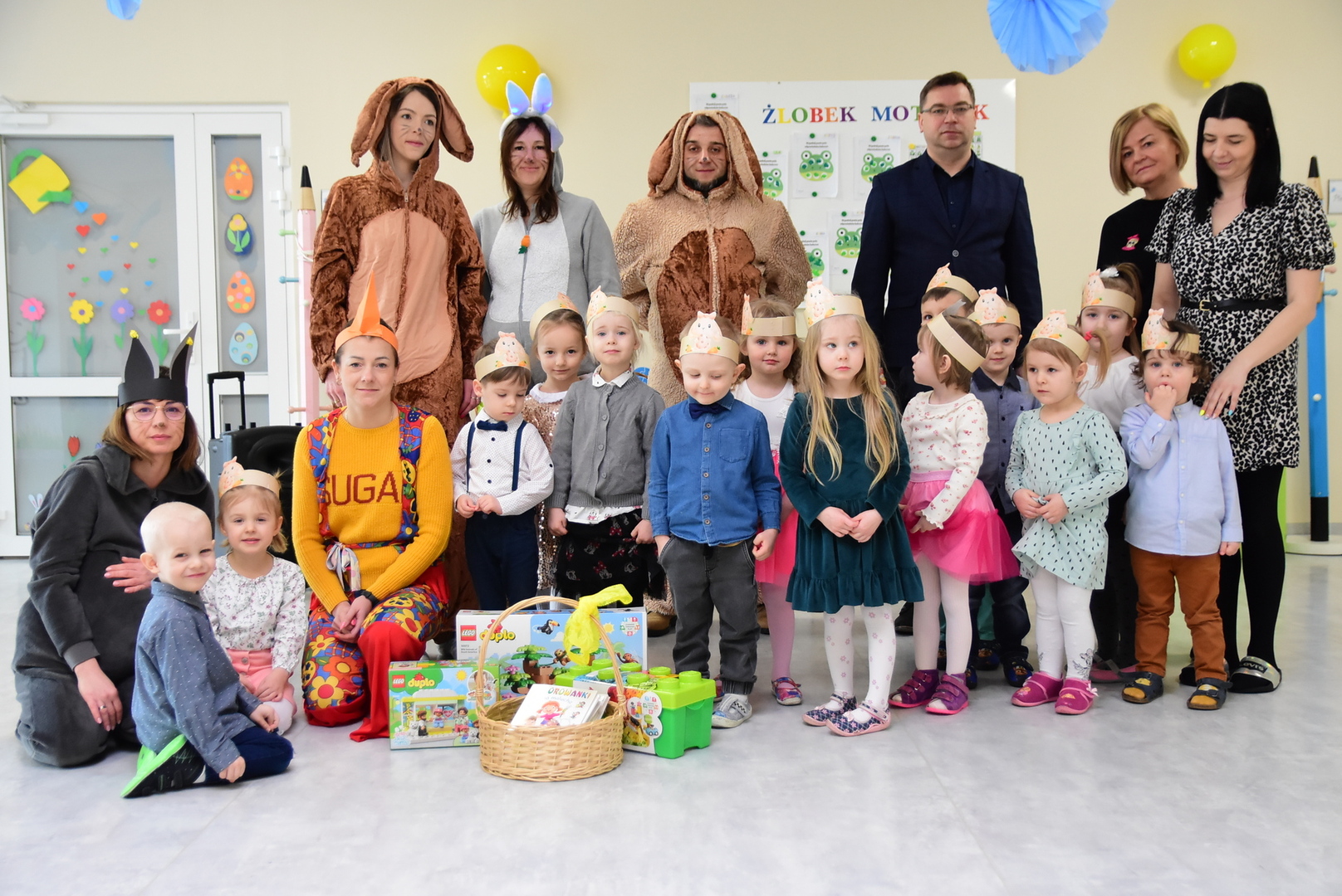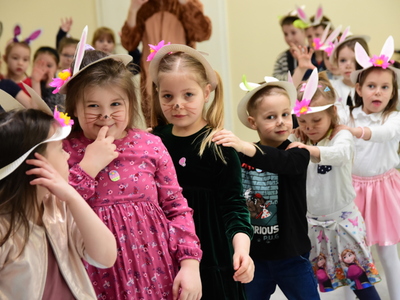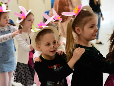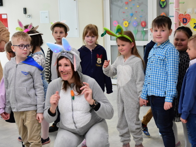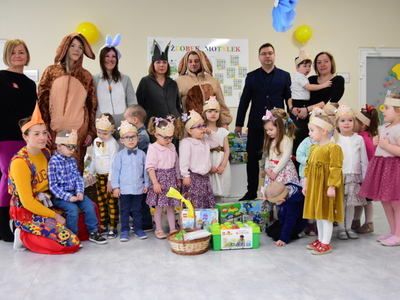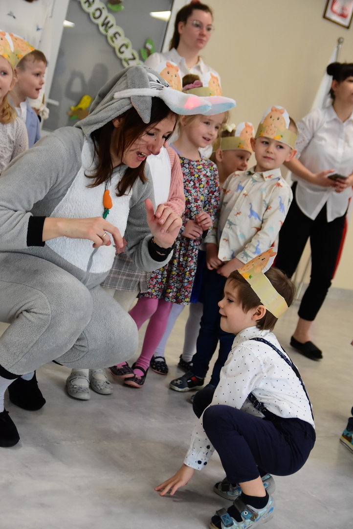 Jedną z najmilszych i najprzyjemniejszych dla dzieci tradycji wielkanocnych jest „zajączek”. Przychodzi, a w zasadzie kica z koszyczkiem wielkanocnym i zostawia prezenty – czasem są to słodkości, czasem inne upominki. Do dzieci z Przedszkola „Niezapominajka” w Gostycynie „zajączek” przybył dziś z samego rana. Tak naprawdę, nie był to jeden „zajączek”, a kilka. Mało tego, kicusiom towarzyszyła „kurka”, która w przedszkolu szukała pisanek. Rolę świątecznych bohaterów odegrali przedstawiciele niezwykle aktywnej rady rodziców. Bawili się wraz z maluchami. Było wspólne kicanie, tańce oraz zabawy z jajkiem. Na koniec rodzice wręczyli dzieciom wielkanocne upominki. Były to kolorowanki i przeznaczone dla każdej z grup przedszkolnych komplety klocków. „Zajączkom” tego dnia, przy wręczaniu prezentów towarzyszył wójt gminy Gostycyn Ireneusz Kucharski, no i oczywiście dyrektor przedszkola Ewa Czerwińska. Oboje dali się wkręcić w wir zabawy z dziećmi.
