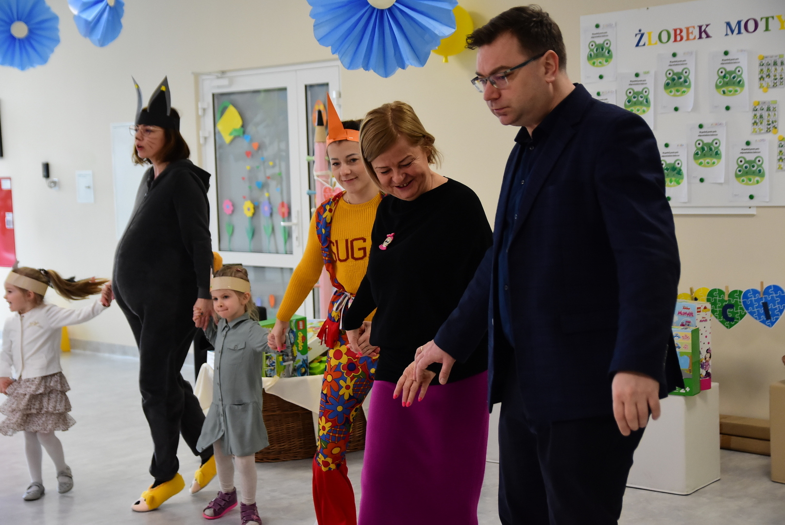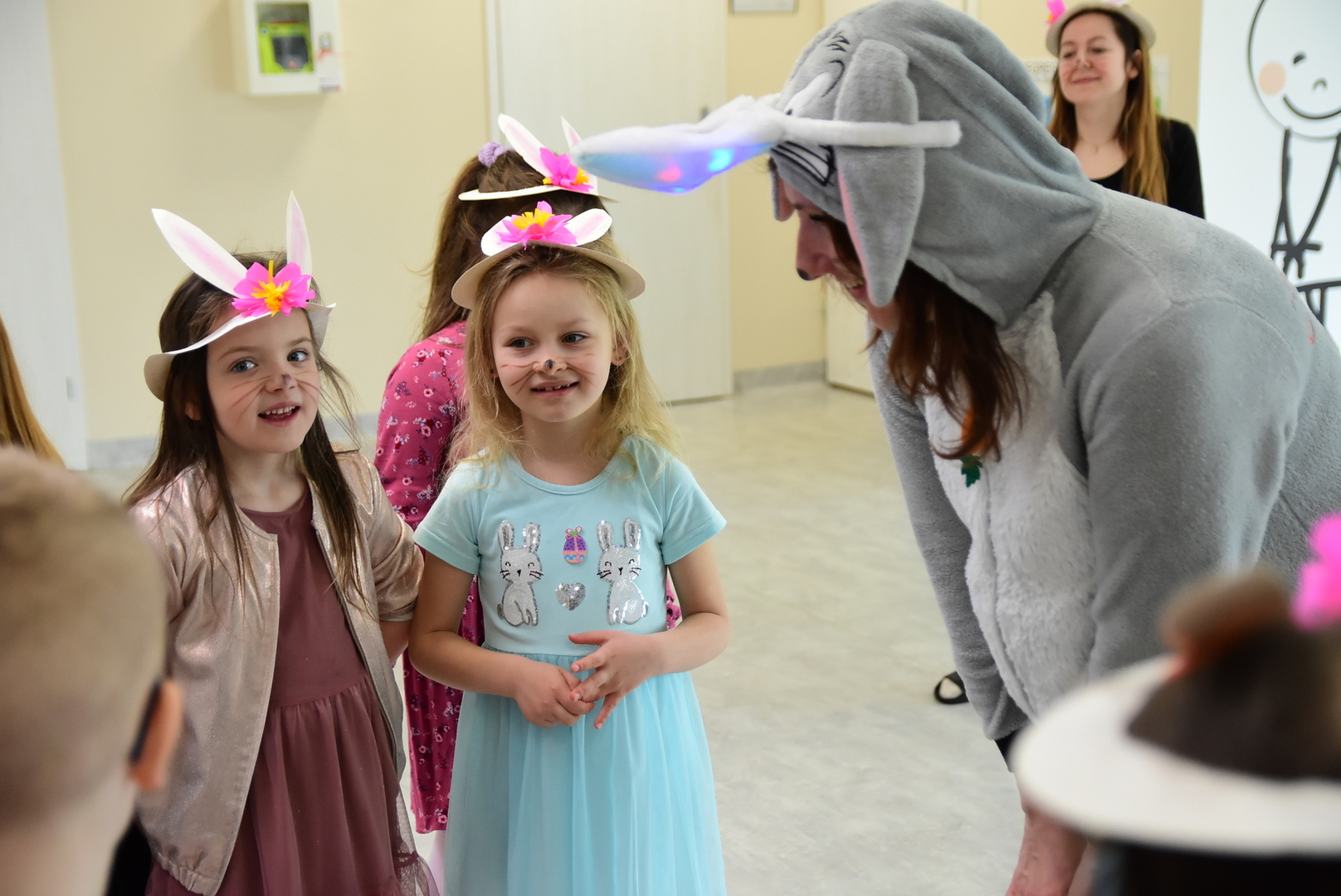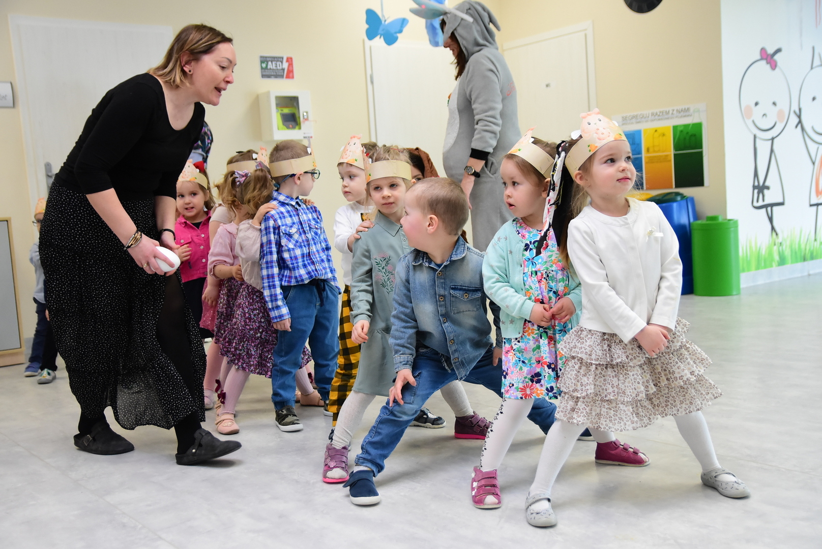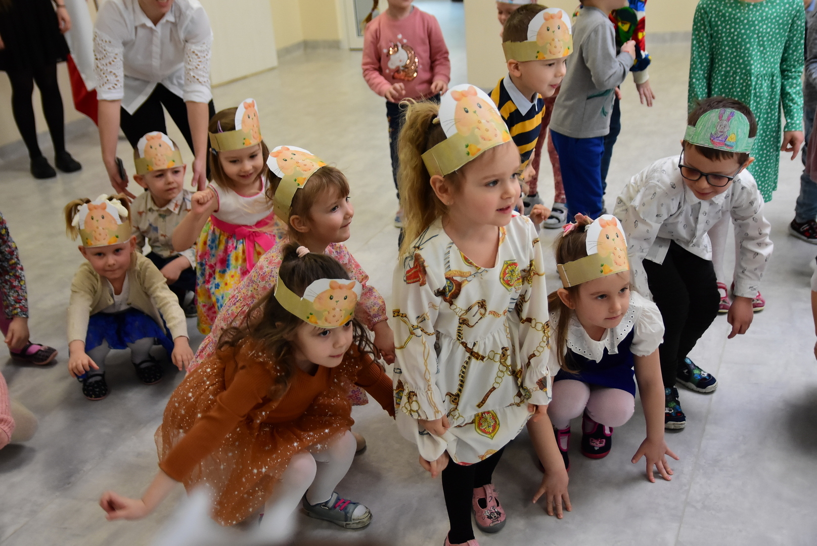 Jedną z najmilszych i najprzyjemniejszych dla dzieci tradycji wielkanocnych jest „zajączek”. Przychodzi, a w zasadzie kica z koszyczkiem wielkanocnym i zostawia prezenty – czasem są to słodkości, czasem inne upominki. Do dzieci z Przedszkola „Niezapominajka” w Gostycynie „zajączek” przybył dziś z samego rana. Tak naprawdę, nie był to jeden „zajączek”, a kilka. Mało tego, kicusiom towarzyszyła „kurka”, która w przedszkolu szukała pisanek. Rolę świątecznych bohaterów odegrali przedstawiciele niezwykle aktywnej rady rodziców. Bawili się wraz z maluchami. Było wspólne kicanie, tańce oraz zabawy z jajkiem. Na koniec rodzice wręczyli dzieciom wielkanocne upominki. Były to kolorowanki i przeznaczone dla każdej z grup przedszkolnych komplety klocków. „Zajączkom” tego dnia, przy wręczaniu prezentów towarzyszył wójt gminy Gostycyn Ireneusz Kucharski, no i oczywiście dyrektor przedszkola Ewa Czerwińska. Oboje dali się wkręcić w wir zabawy z dziećmi.