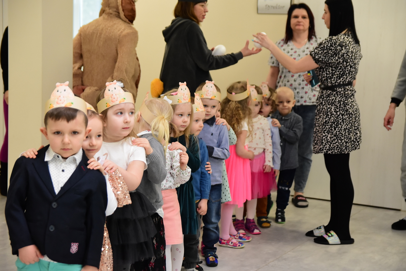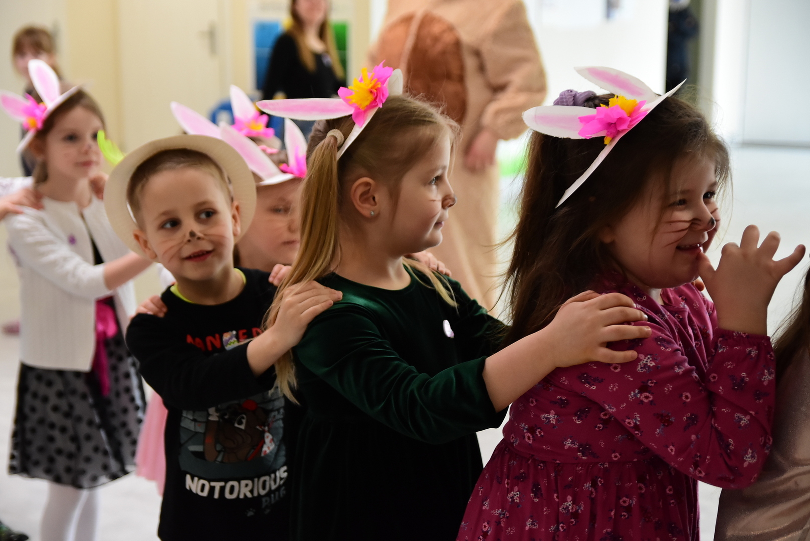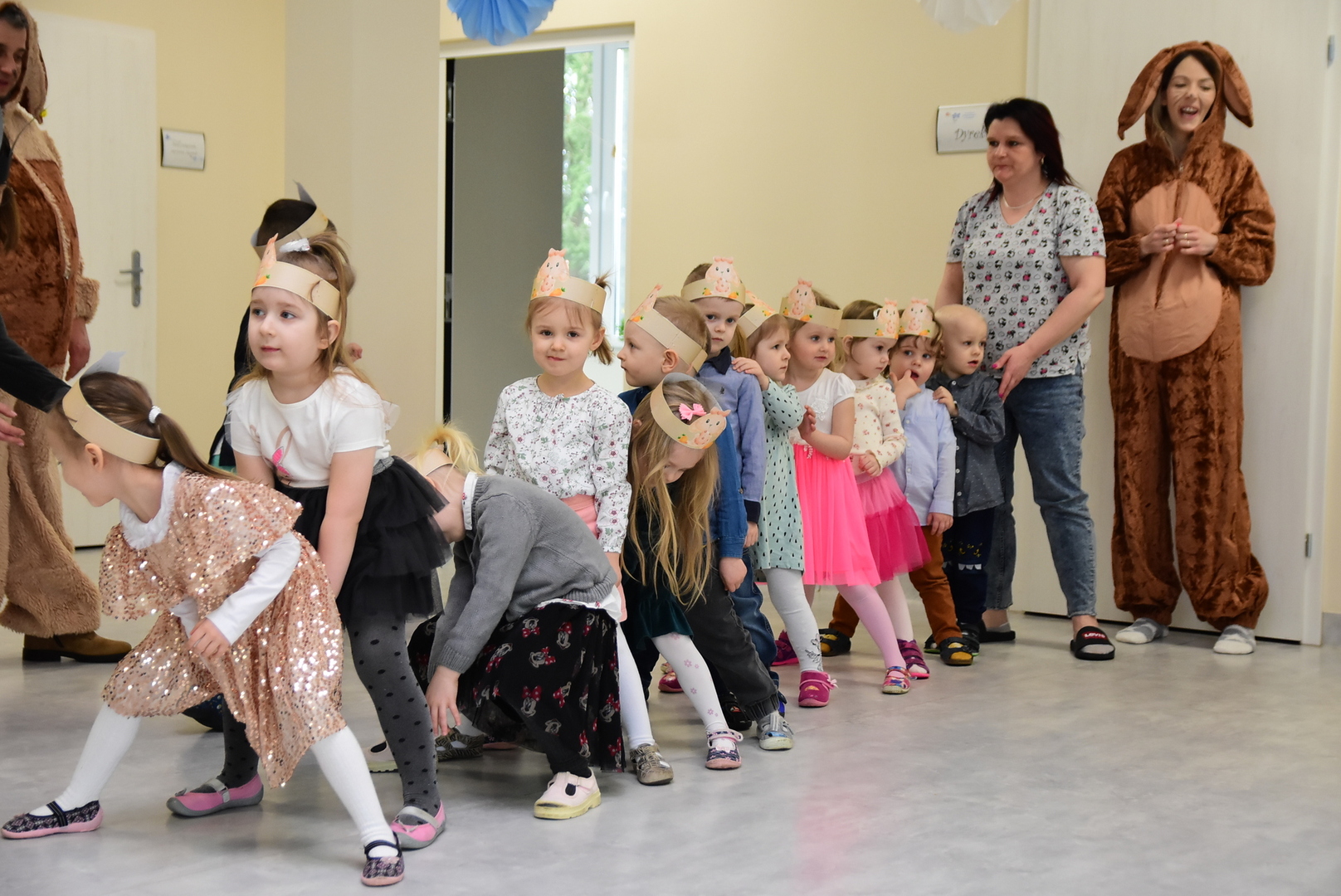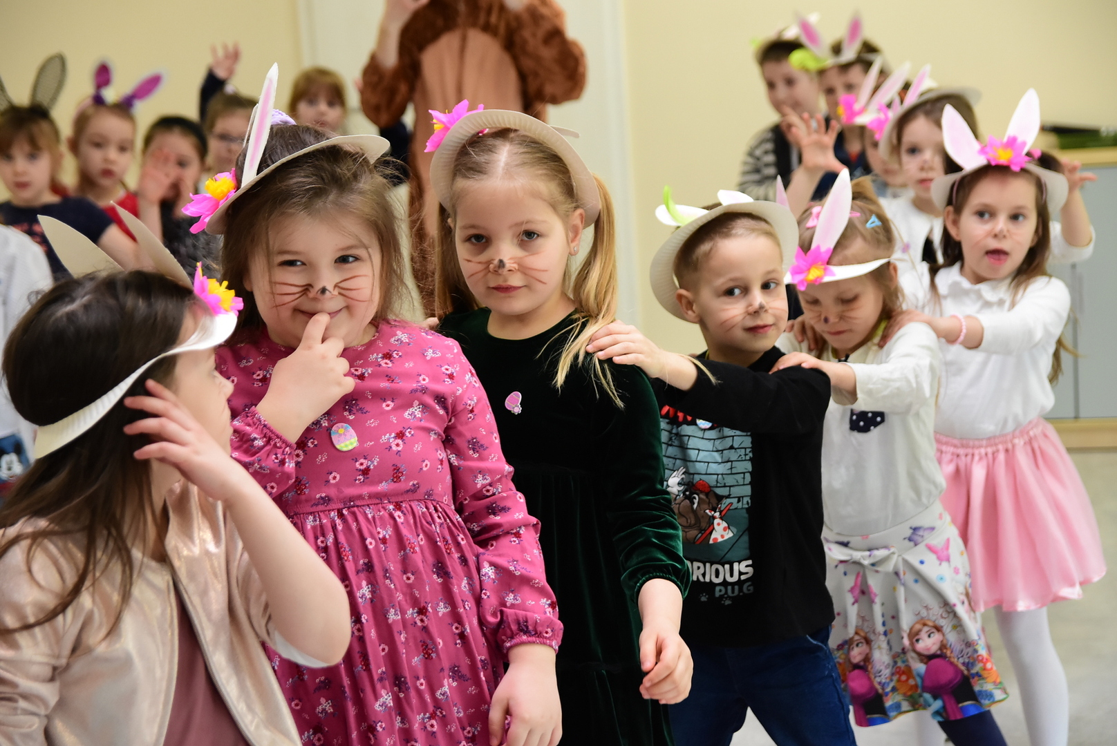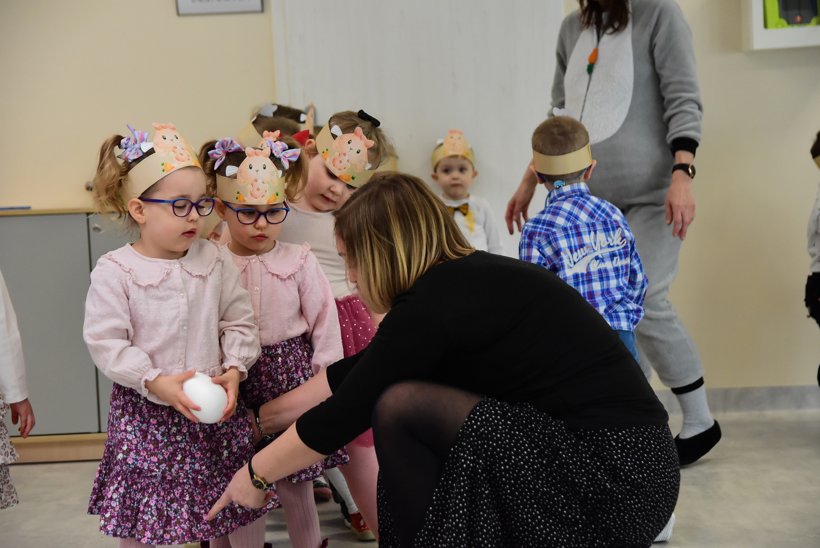 Jedną z najmilszych i najprzyjemniejszych dla dzieci tradycji wielkanocnych jest „zajączek”. Przychodzi, a w zasadzie kica z koszyczkiem wielkanocnym i zostawia prezenty – czasem są to słodkości, czasem inne upominki. Do dzieci z Przedszkola „Niezapominajka” w Gostycynie „zajączek” przybył dziś z samego rana. Tak naprawdę, nie był to jeden „zajączek”, a kilka. Mało tego, kicusiom towarzyszyła „kurka”, która w przedszkolu szukała pisanek. Rolę świątecznych bohaterów odegrali przedstawiciele niezwykle aktywnej rady rodziców. Bawili się wraz z maluchami. Było wspólne kicanie, tańce oraz zabawy z jajkiem. Na koniec rodzice wręczyli dzieciom wielkanocne upominki. Były to kolorowanki i przeznaczone dla każdej z grup przedszkolnych komplety klocków. „Zajączkom” tego dnia, przy wręczaniu prezentów towarzyszył wójt gminy Gostycyn Ireneusz Kucharski, no i oczywiście dyrektor przedszkola Ewa Czerwińska. Oboje dali się wkręcić w wir zabawy z dziećmi.