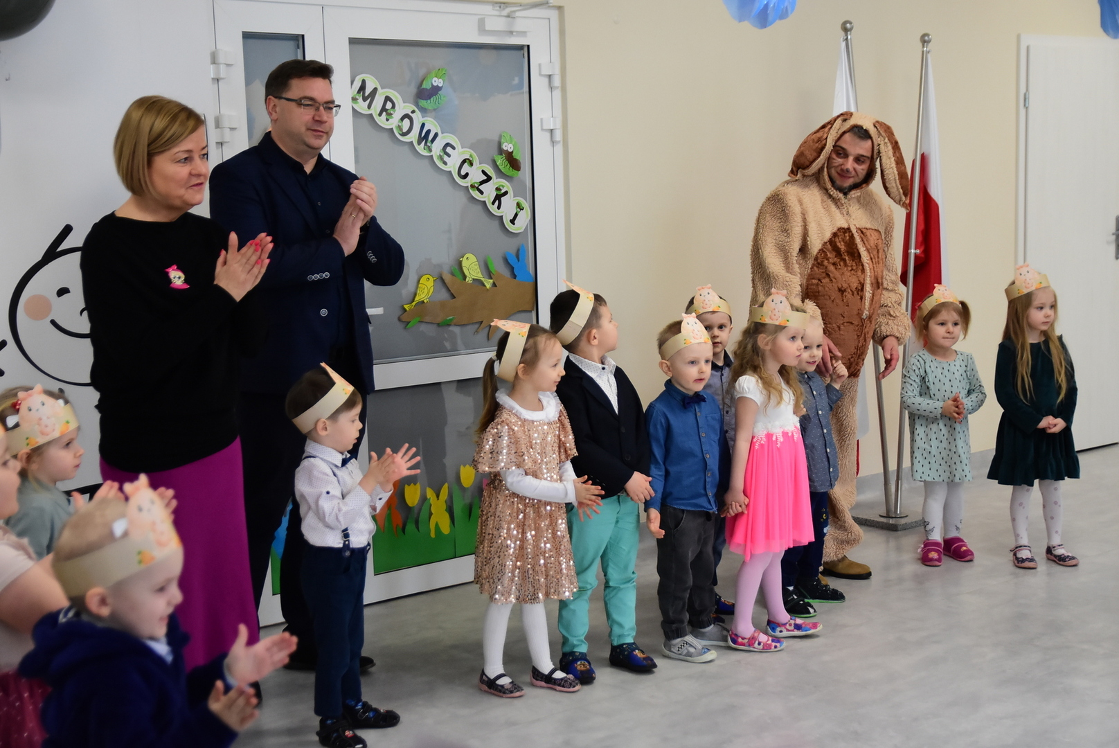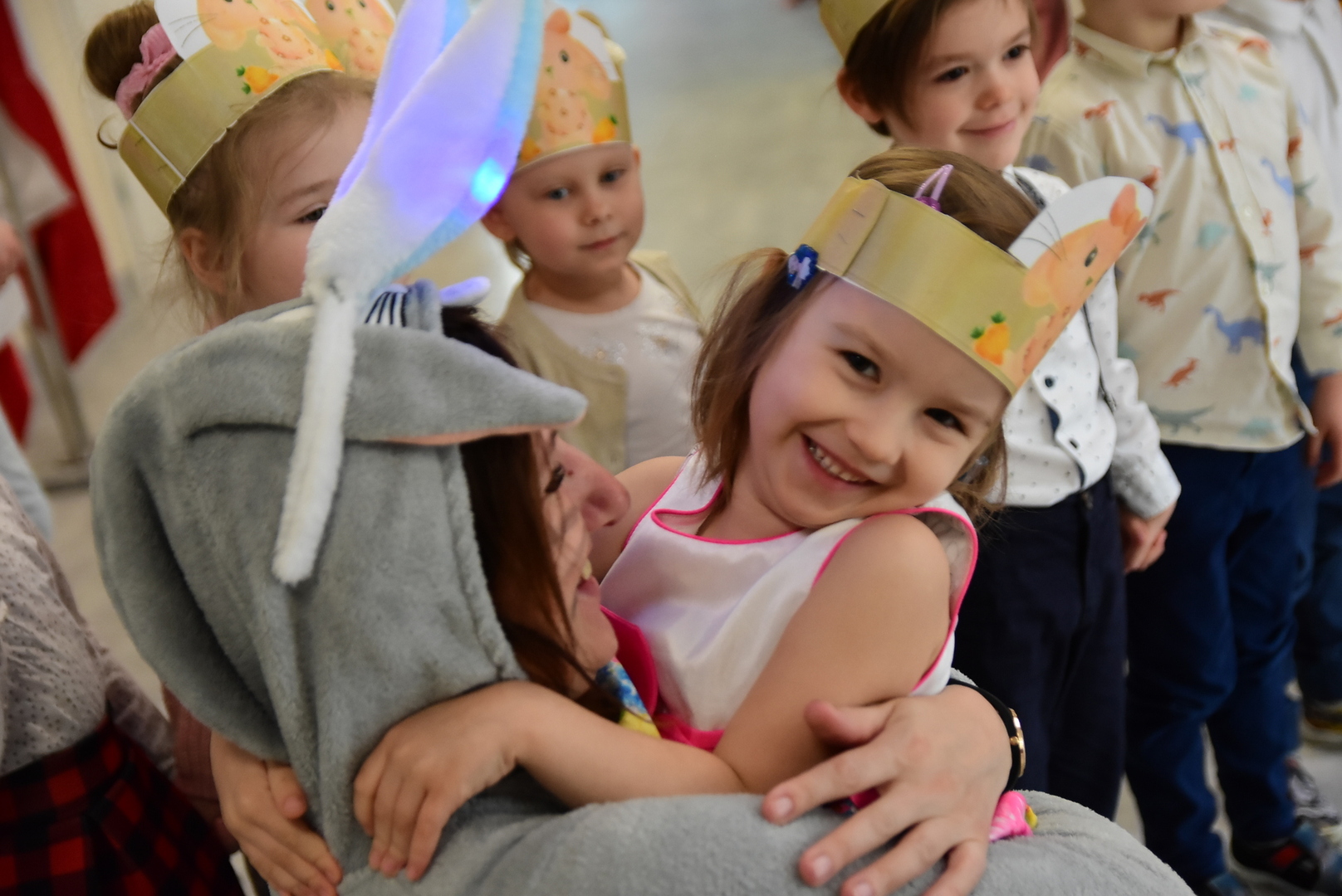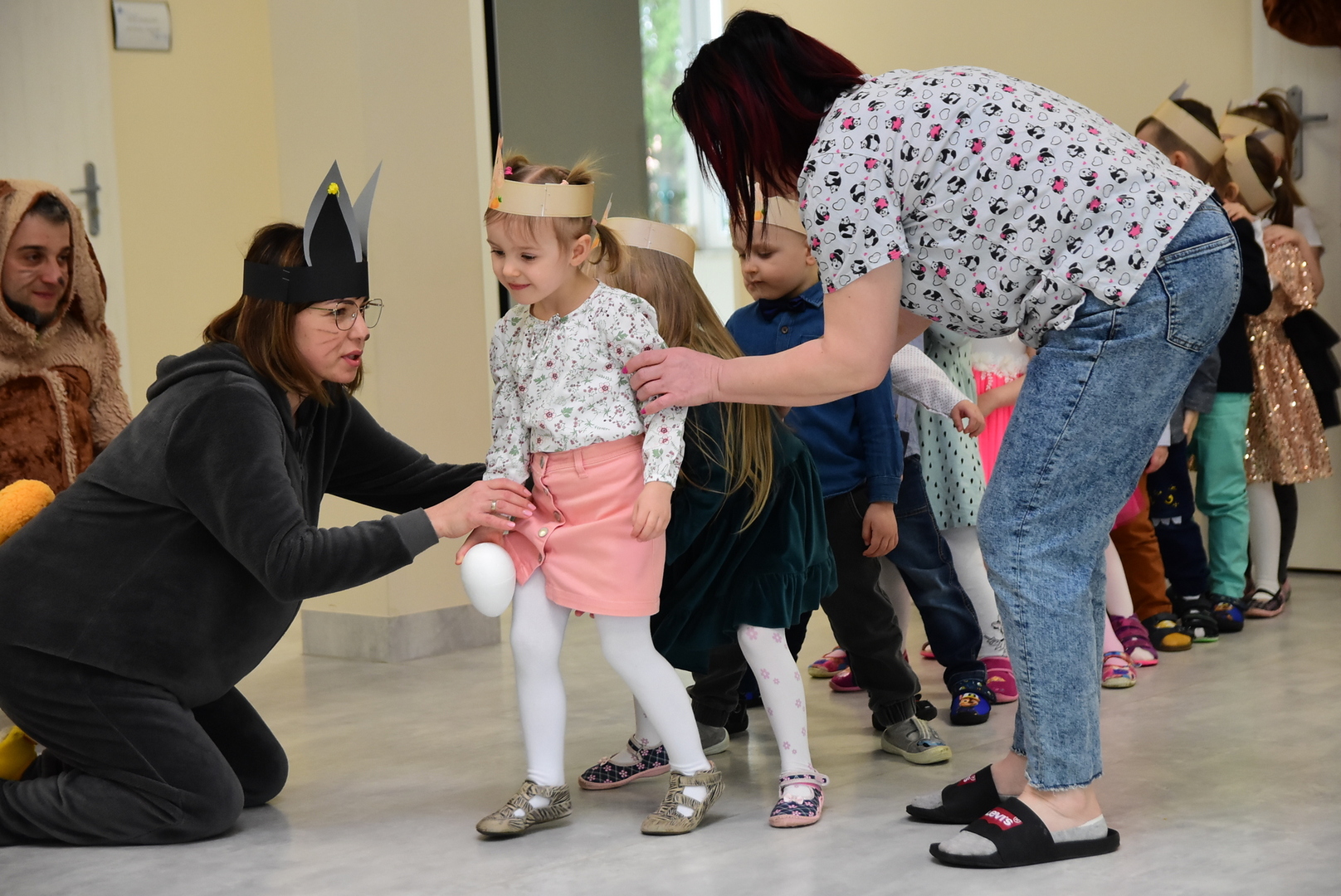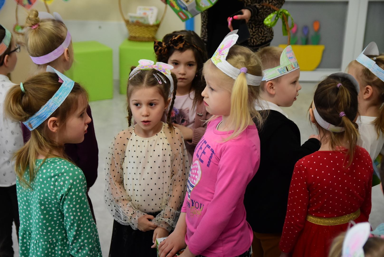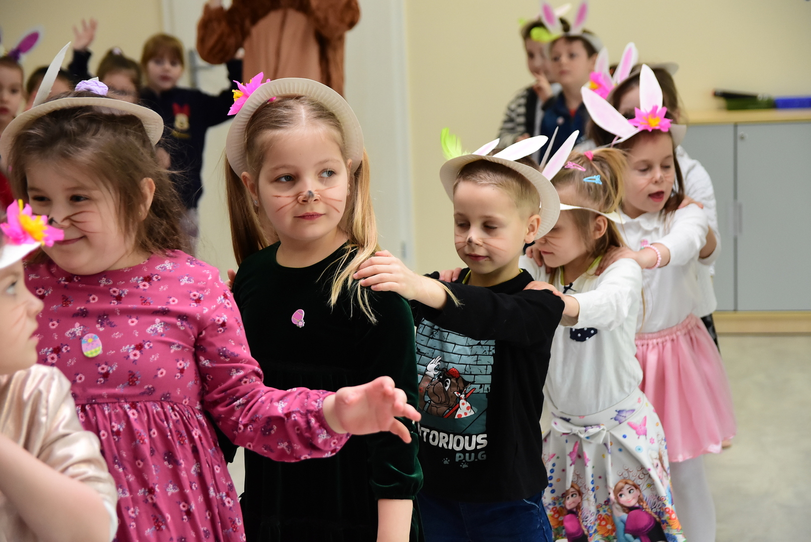 Jedną z najmilszych i najprzyjemniejszych dla dzieci tradycji wielkanocnych jest „zajączek”. Przychodzi, a w zasadzie kica z koszyczkiem wielkanocnym i zostawia prezenty – czasem są to słodkości, czasem inne upominki. Do dzieci z Przedszkola „Niezapominajka” w Gostycynie „zajączek” przybył dziś z samego rana. Tak naprawdę, nie był to jeden „zajączek”, a kilka. Mało tego, kicusiom towarzyszyła „kurka”, która w przedszkolu szukała pisanek. Rolę świątecznych bohaterów odegrali przedstawiciele niezwykle aktywnej rady rodziców. Bawili się wraz z maluchami. Było wspólne kicanie, tańce oraz zabawy z jajkiem. Na koniec rodzice wręczyli dzieciom wielkanocne upominki. Były to kolorowanki i przeznaczone dla każdej z grup przedszkolnych komplety klocków. „Zajączkom” tego dnia, przy wręczaniu prezentów towarzyszył wójt gminy Gostycyn Ireneusz Kucharski, no i oczywiście dyrektor przedszkola Ewa Czerwińska. Oboje dali się wkręcić w wir zabawy z dziećmi.
