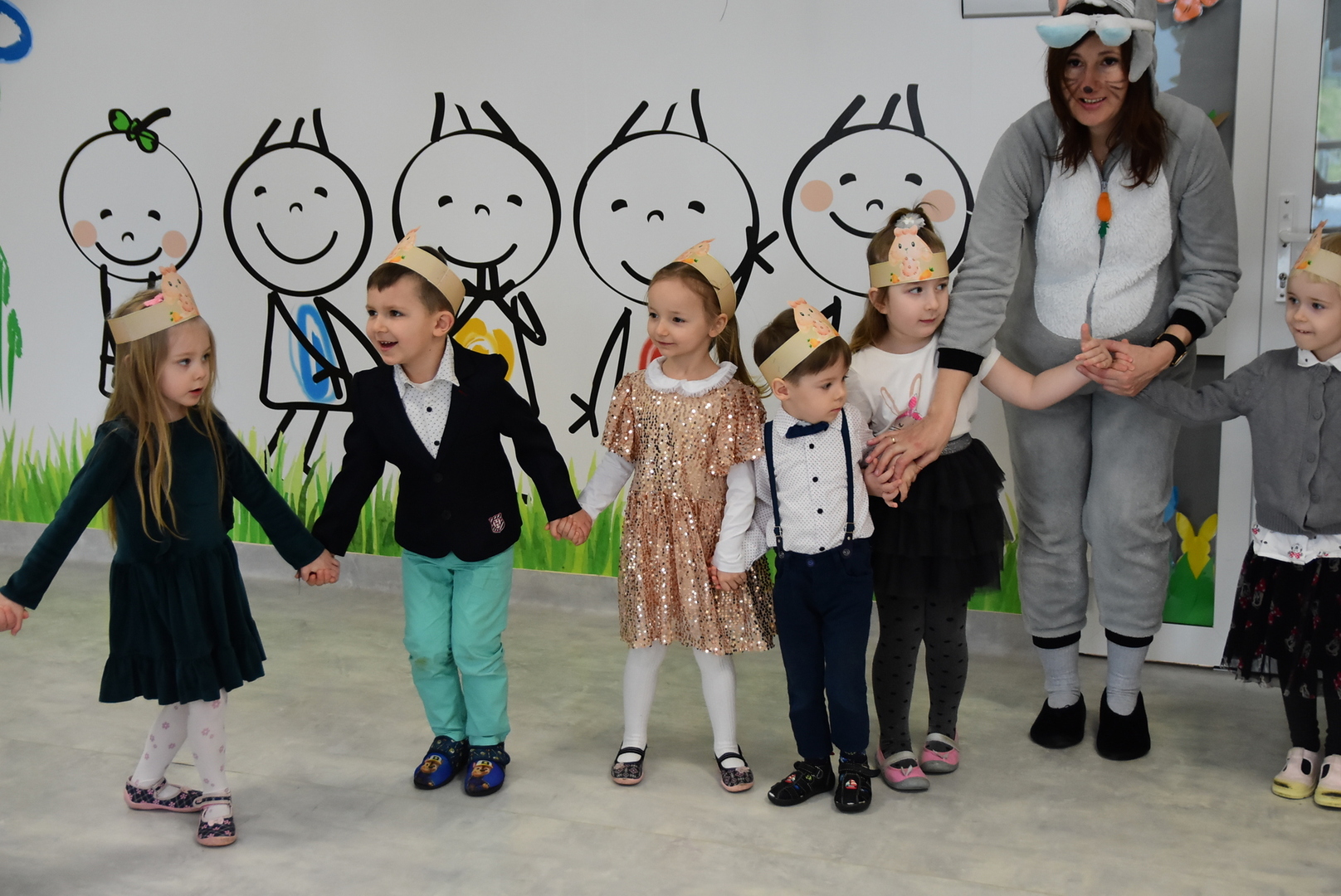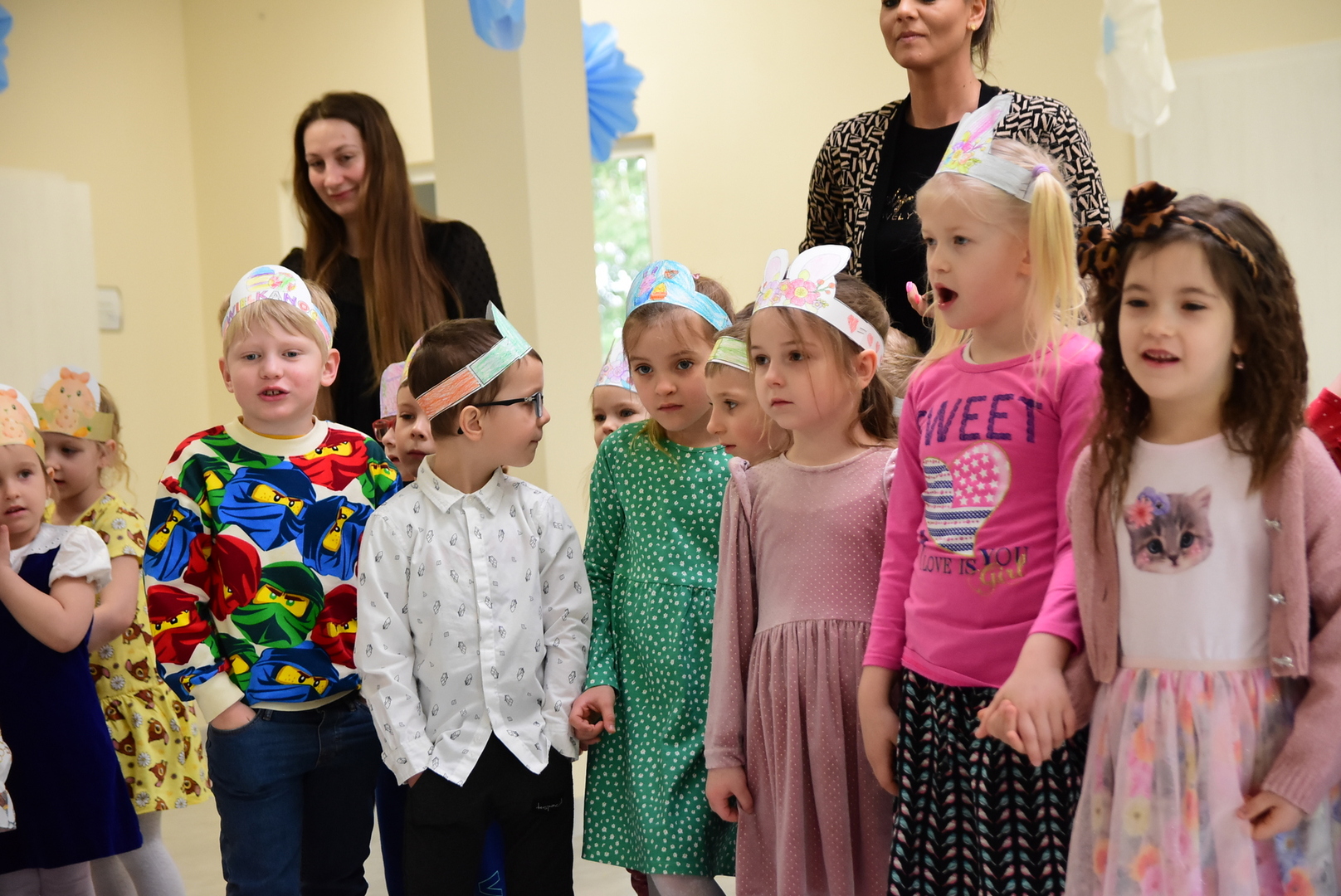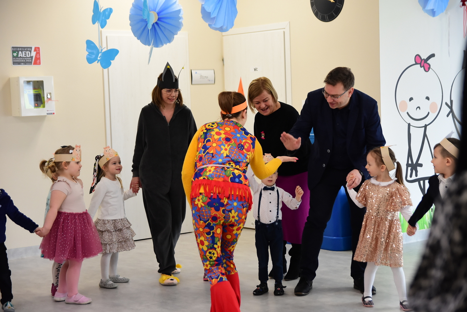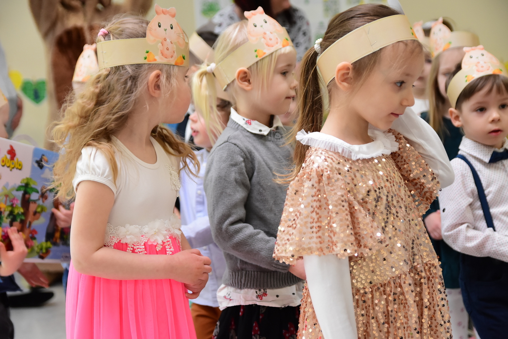 Jedną z najmilszych i najprzyjemniejszych dla dzieci tradycji wielkanocnych jest „zajączek”. Przychodzi, a w zasadzie kica z koszyczkiem wielkanocnym i zostawia prezenty – czasem są to słodkości, czasem inne upominki. Do dzieci z Przedszkola „Niezapominajka” w Gostycynie „zajączek” przybył dziś z samego rana. Tak naprawdę, nie był to jeden „zajączek”, a kilka. Mało tego, kicusiom towarzyszyła „kurka”, która w przedszkolu szukała pisanek. Rolę świątecznych bohaterów odegrali przedstawiciele niezwykle aktywnej rady rodziców. Bawili się wraz z maluchami. Było wspólne kicanie, tańce oraz zabawy z jajkiem. Na koniec rodzice wręczyli dzieciom wielkanocne upominki. Były to kolorowanki i przeznaczone dla każdej z grup przedszkolnych komplety klocków. „Zajączkom” tego dnia, przy wręczaniu prezentów towarzyszył wójt gminy Gostycyn Ireneusz Kucharski, no i oczywiście dyrektor przedszkola Ewa Czerwińska. Oboje dali się wkręcić w wir zabawy z dziećmi.
