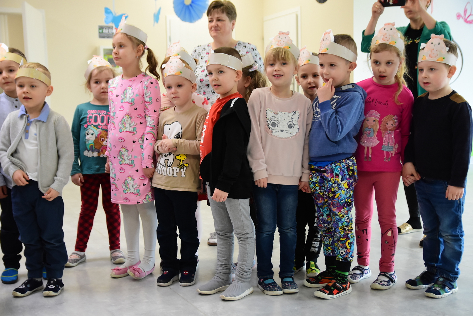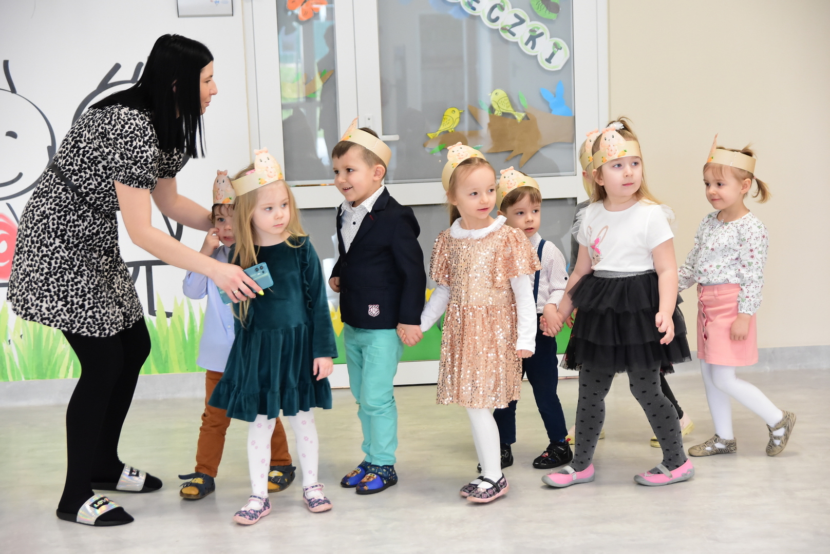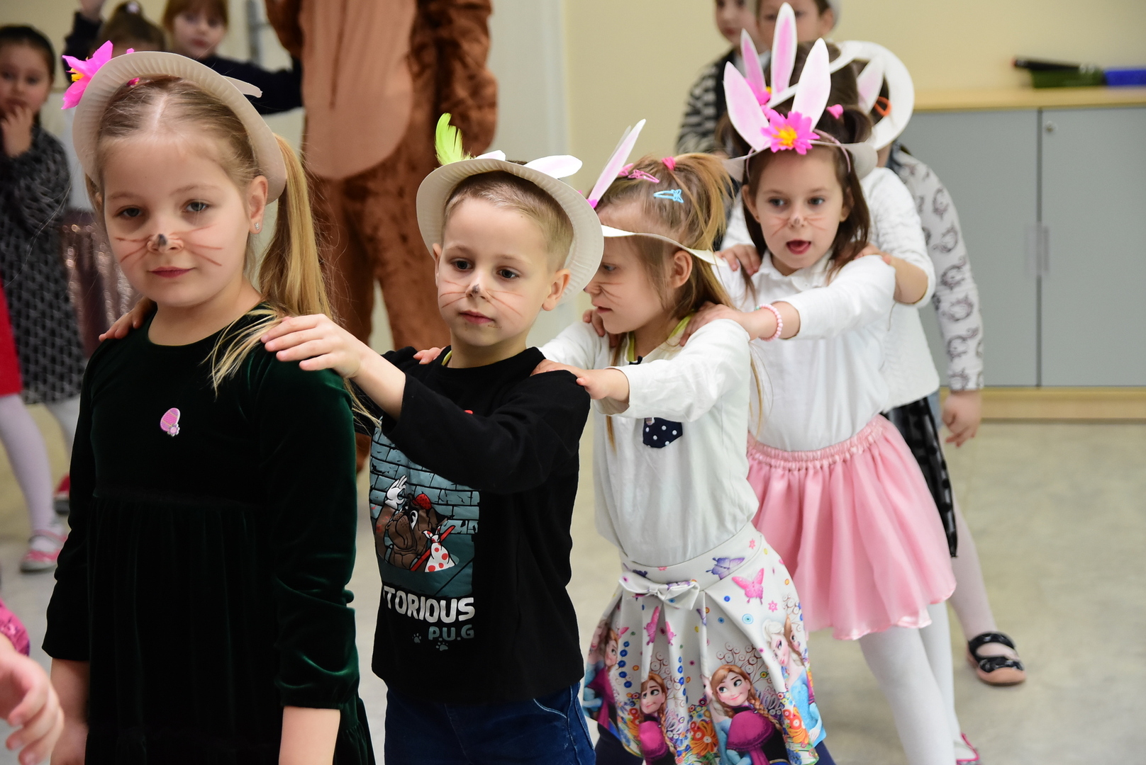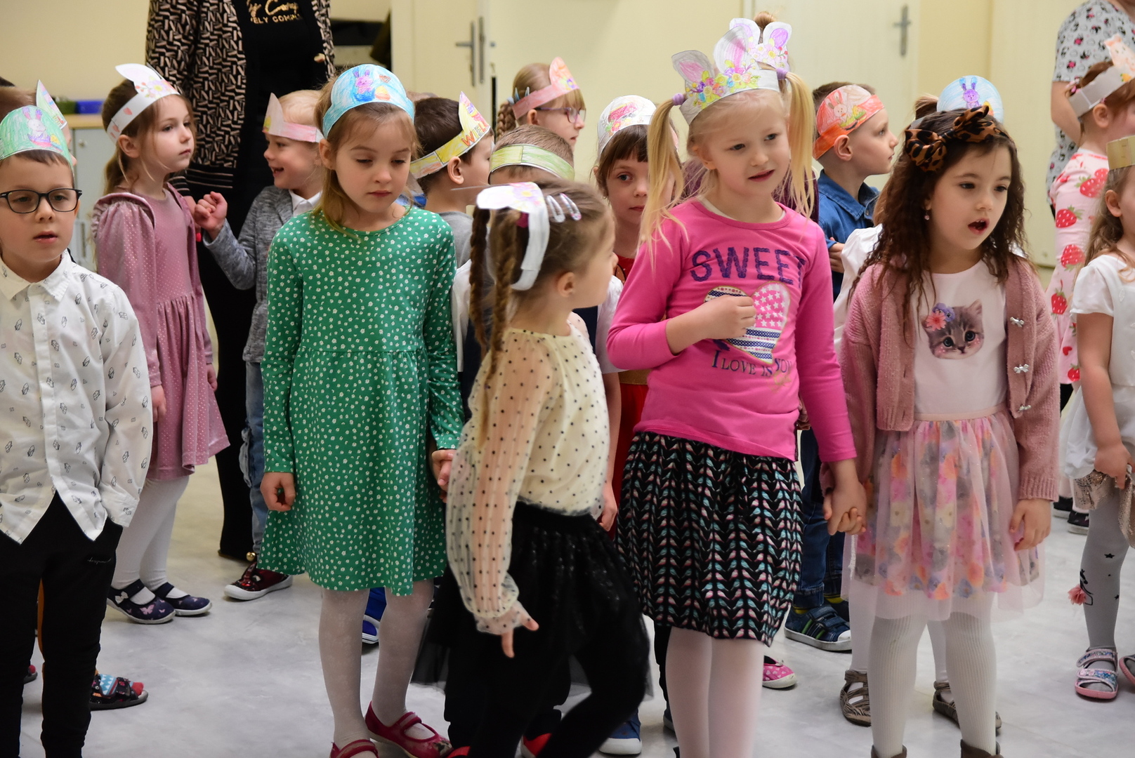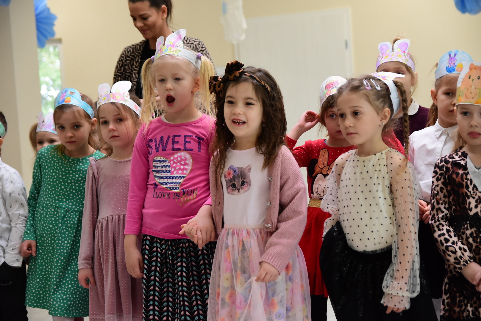 Jedną z najmilszych i najprzyjemniejszych dla dzieci tradycji wielkanocnych jest „zajączek”. Przychodzi, a w zasadzie kica z koszyczkiem wielkanocnym i zostawia prezenty – czasem są to słodkości, czasem inne upominki. Do dzieci z Przedszkola „Niezapominajka” w Gostycynie „zajączek” przybył dziś z samego rana. Tak naprawdę, nie był to jeden „zajączek”, a kilka. Mało tego, kicusiom towarzyszyła „kurka”, która w przedszkolu szukała pisanek. Rolę świątecznych bohaterów odegrali przedstawiciele niezwykle aktywnej rady rodziców. Bawili się wraz z maluchami. Było wspólne kicanie, tańce oraz zabawy z jajkiem. Na koniec rodzice wręczyli dzieciom wielkanocne upominki. Były to kolorowanki i przeznaczone dla każdej z grup przedszkolnych komplety klocków. „Zajączkom” tego dnia, przy wręczaniu prezentów towarzyszył wójt gminy Gostycyn Ireneusz Kucharski, no i oczywiście dyrektor przedszkola Ewa Czerwińska. Oboje dali się wkręcić w wir zabawy z dziećmi.