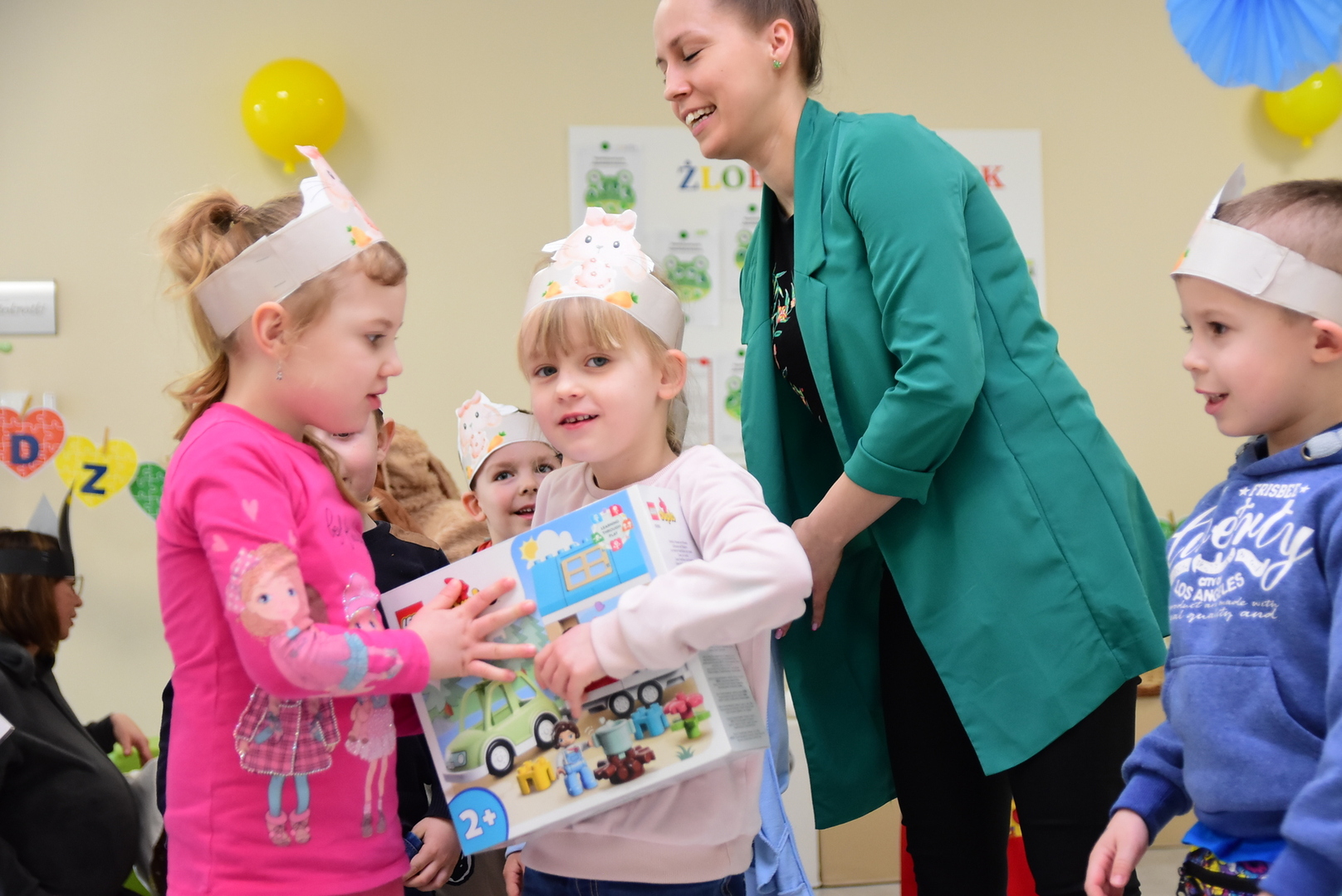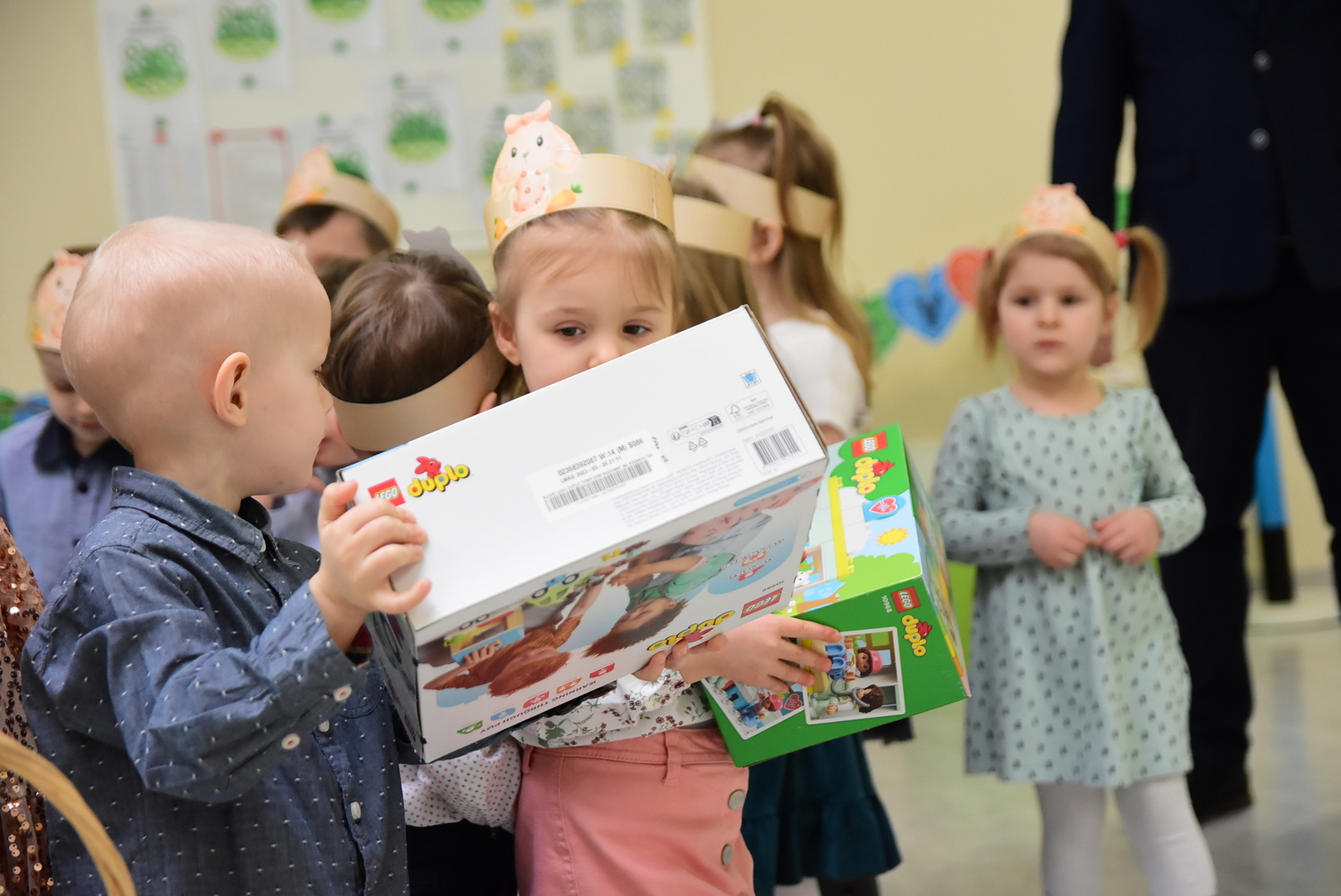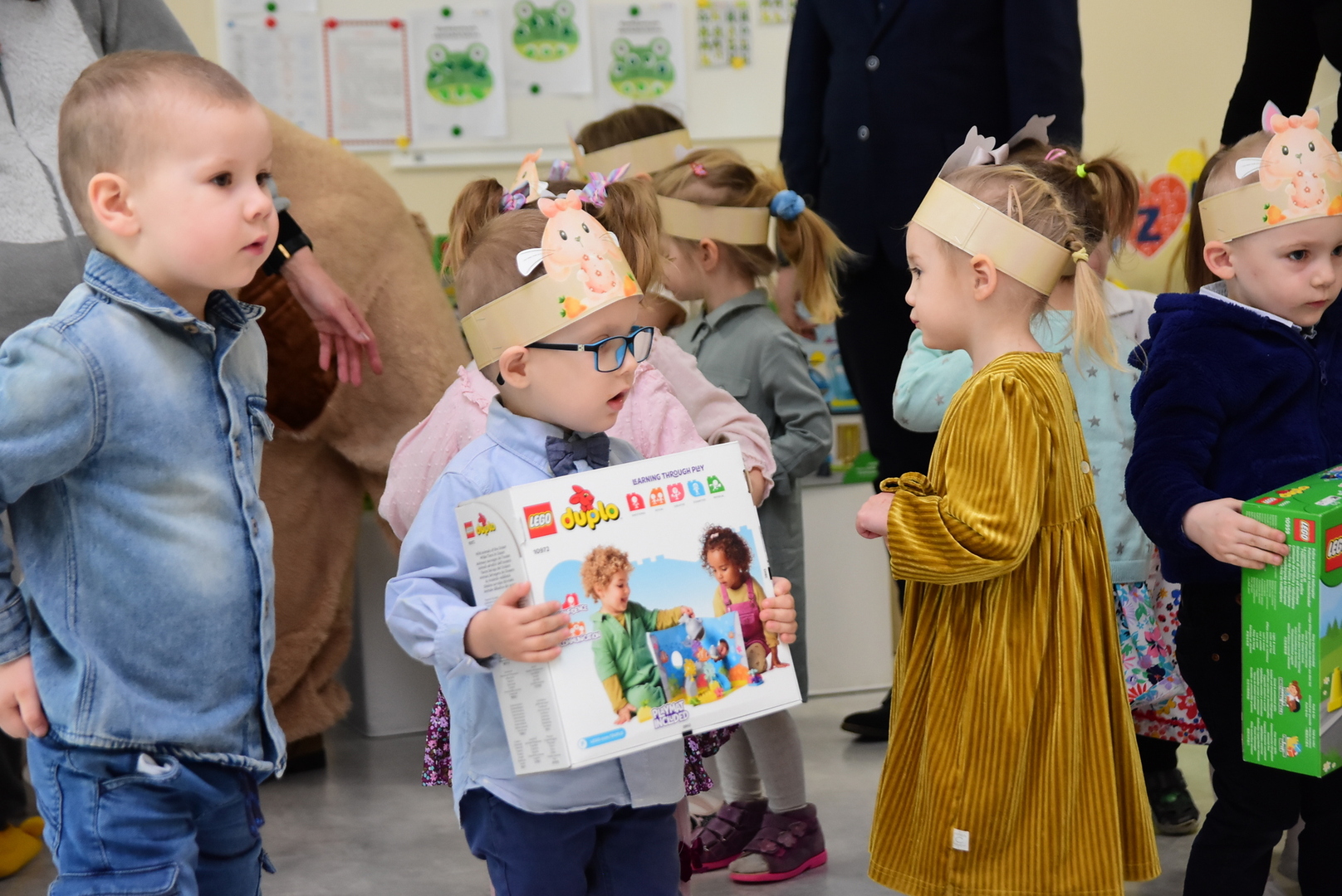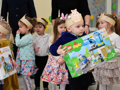 Po części upominkowej, po powrocie do swoich sal przedszkolaki mogły już rozpakować upominki i rozpocząć codzienną zabawę. Chętnych do dzielenia się wrażeniami także nie brakowało.