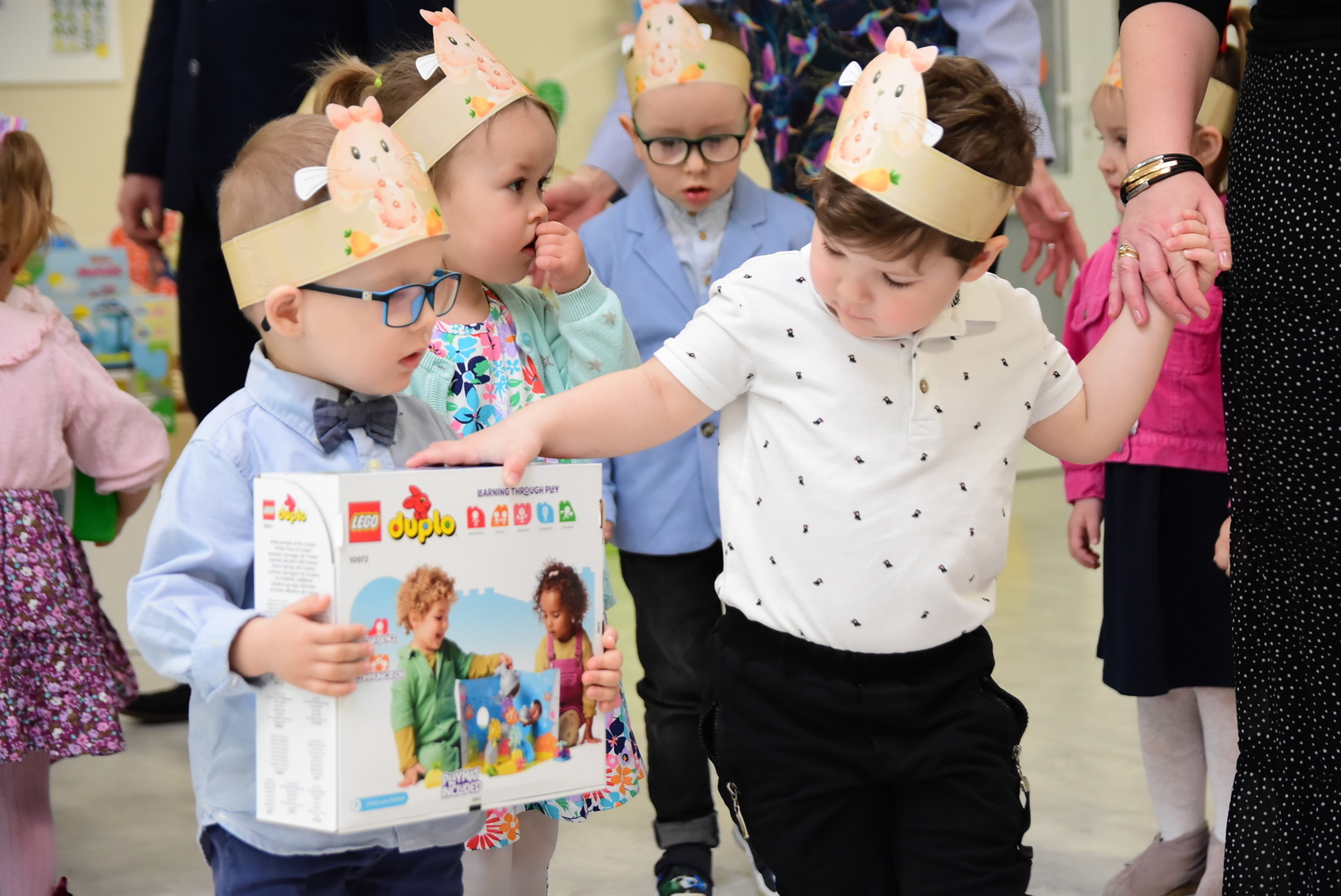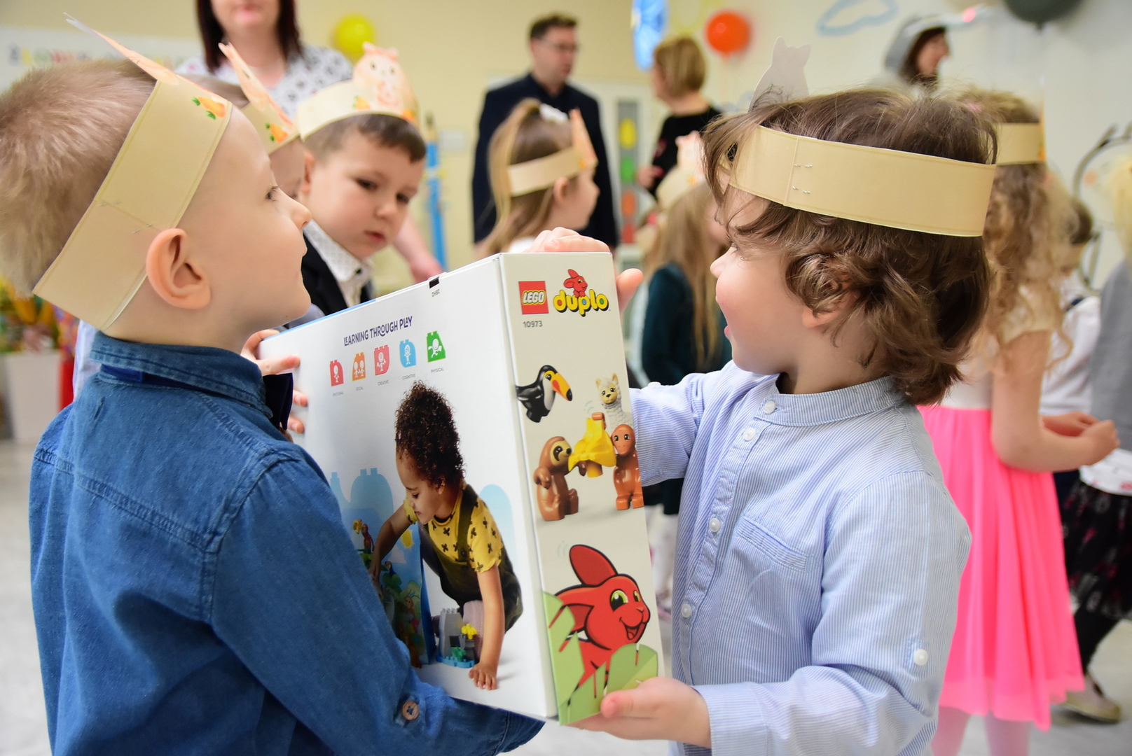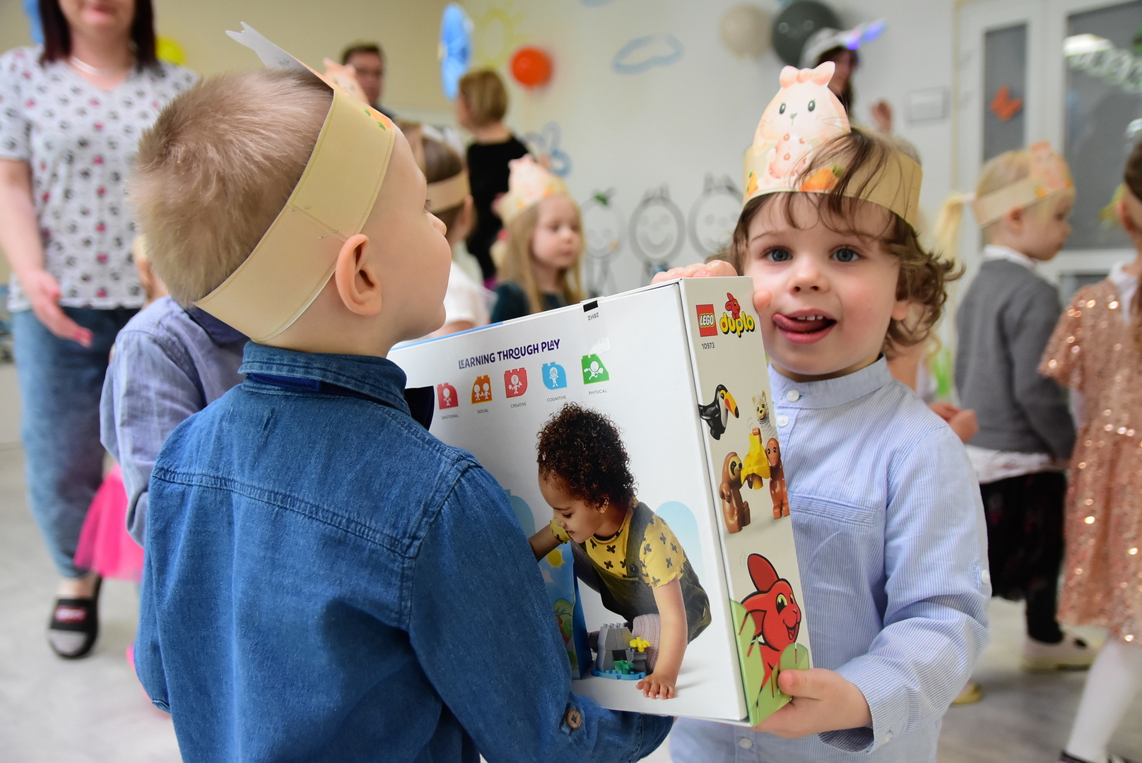 Po części upominkowej, po powrocie do swoich sal przedszkolaki mogły już rozpakować upominki i rozpocząć codzienną zabawę. Chętnych do dzielenia się wrażeniami także nie brakowało.
