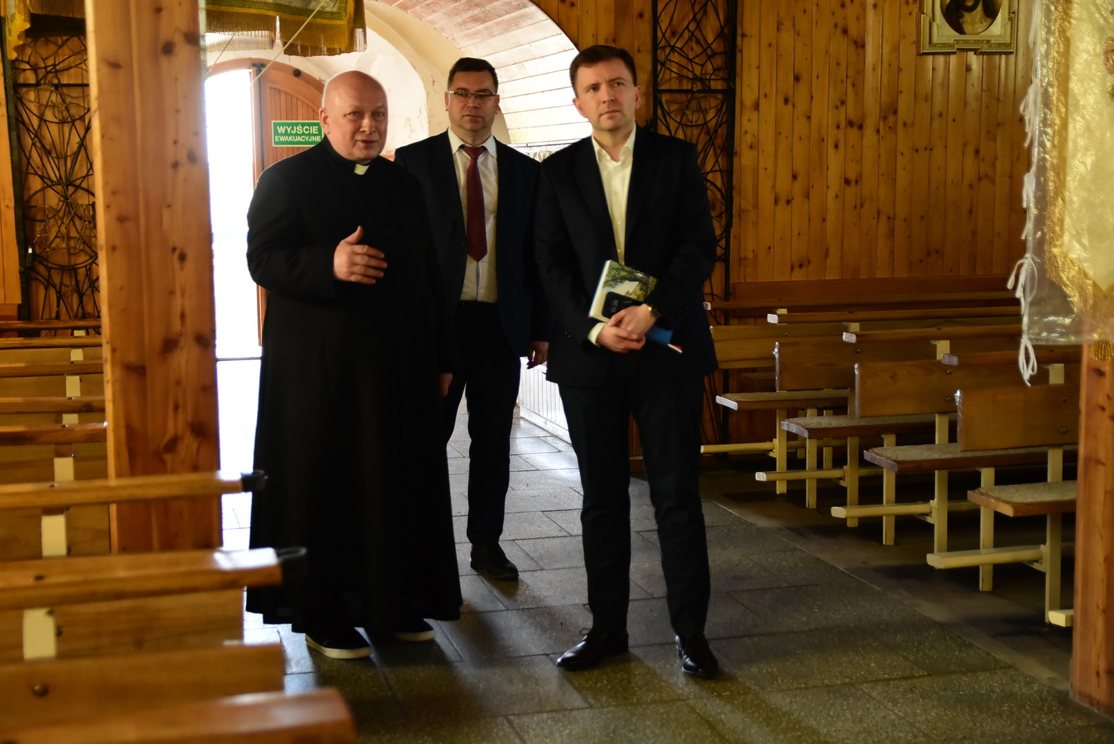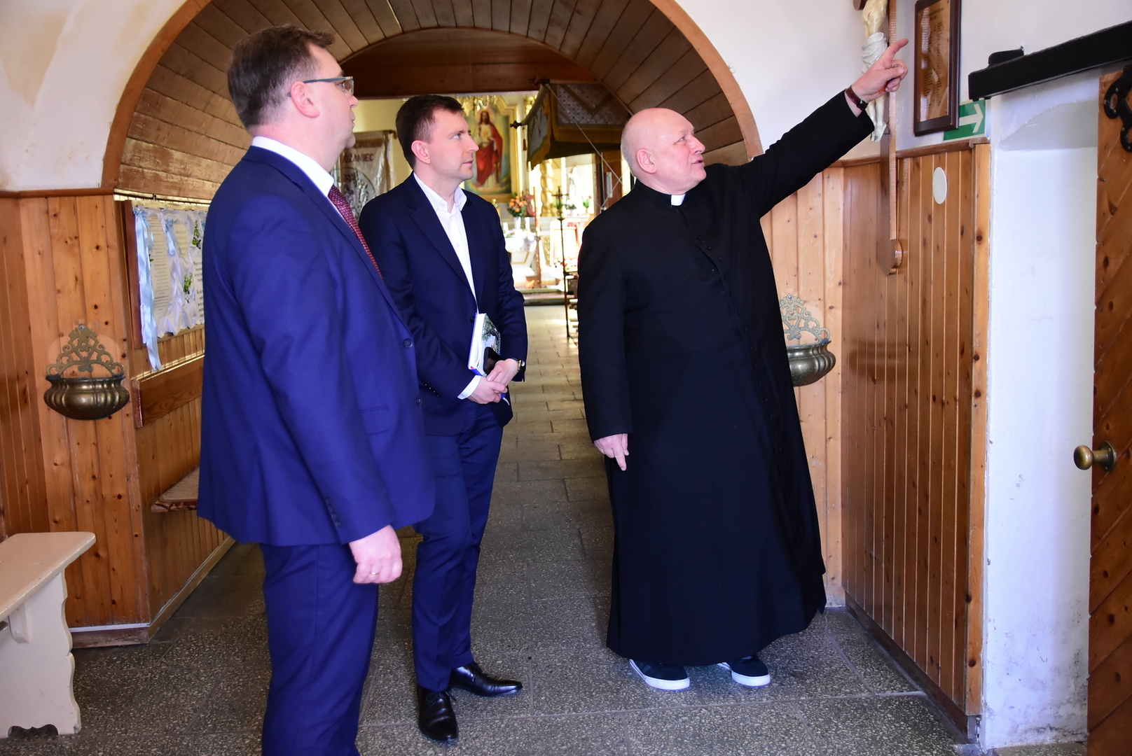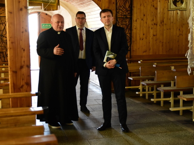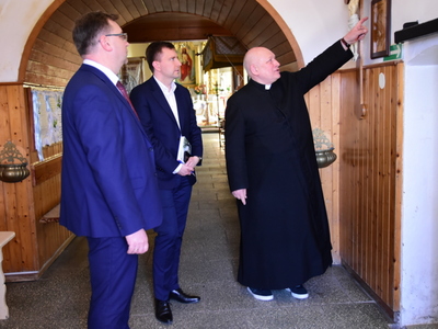 Podczas piątkowej wizyty w Pruszczu minister Łukasz Schreiber w towarzystwie wójta gminy Gostycyn Ireneusza Kucharskiego i proboszcza Stefana Czarneckiego obejrzał miejscową świątynię. Poznał historię prusieckiego kościoła oraz najpilniejsze potrzeby związane z remontami świątyni.