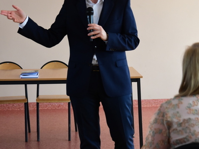 Łukasz Schreiber na spotkaniu w Pruszczu