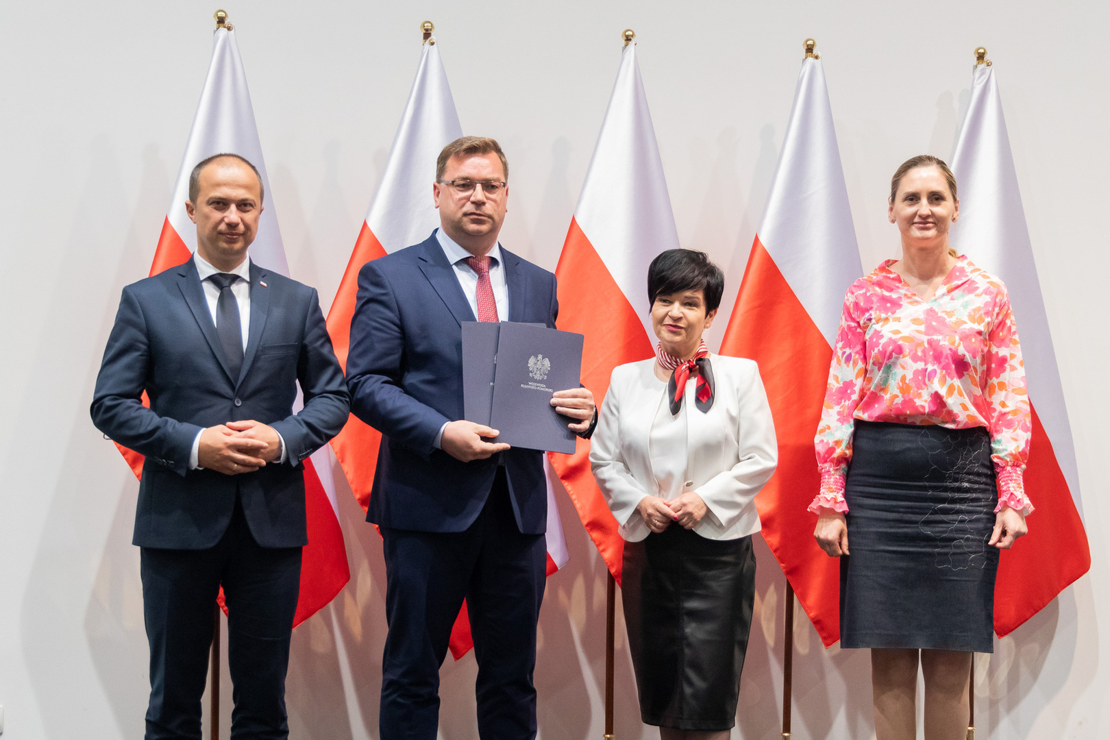 Podczas dzisiejszego spotkania w Kujawsko-Pomorskim Urzędzie Wojewódzkim w Bydgoszczy, samorządowcy odebrali umowy na utworzenie dziennych domów Senior+ lub funkcjonowanie już istniejących placówek. W 2023 r. było to w sumie, w ramach dwóch modułów programu, 49 złożonych wniosków na blisko 5 mln złotych dofinansowania. Porozumienia zostały podpisane również z Gminą Gostycyn, którą reprezentował wójt Ireneusz Kucharski i Skarbnik Gminy Gostycyn Anna Bereda. Uroczystego wręczenia umów dokonali Joanna Borowiak Poseł na Sejm (Przewodnicząca Komisji Polityki Senioralnej) oraz Radosław Kempinski - Wicewojewoda Kujawsko-Pomorski.