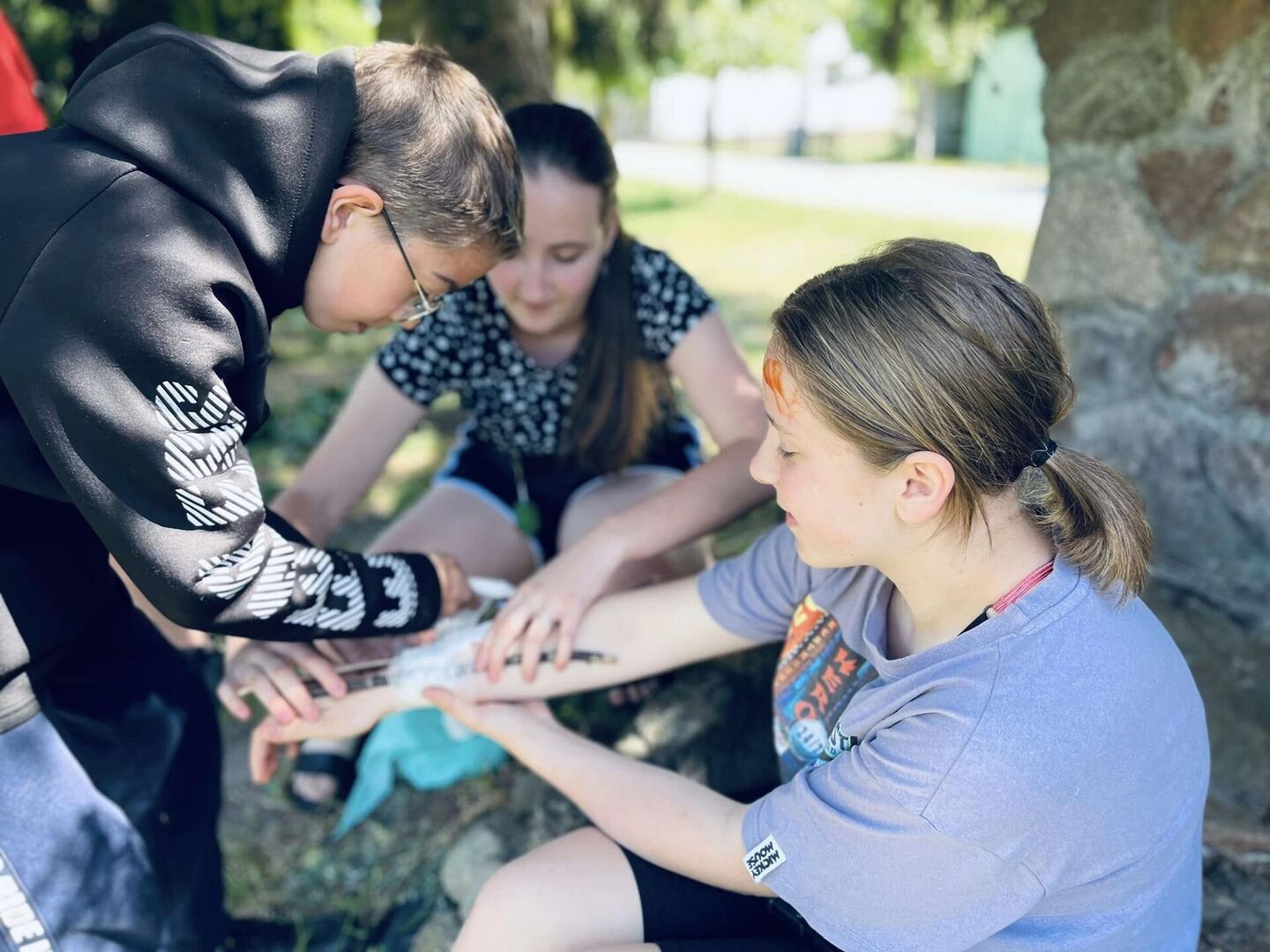 W sobotę, na terenie Gminnego Ośrodka Kultury w Gostycynie w ramach projektu "Aktywnie i bezpiecznie w naszych fyrtlach" odbyły się warsztaty z udzielania pierwszej pomocy. Dzięki nim młodzi ludzie wiedzą już, jak radzić sobie w sytuacjach trudnych i nieprzewidywalnych sytuacjach. Po części praktycznej potrafili odpowiedzieć na wiele, trudnych pytań i zdali egzamin praktyczny na 6. Kolejne spotkanie projektowe już 15 czerwca, tym razem grupa uczestników wyruszy do lasu.
