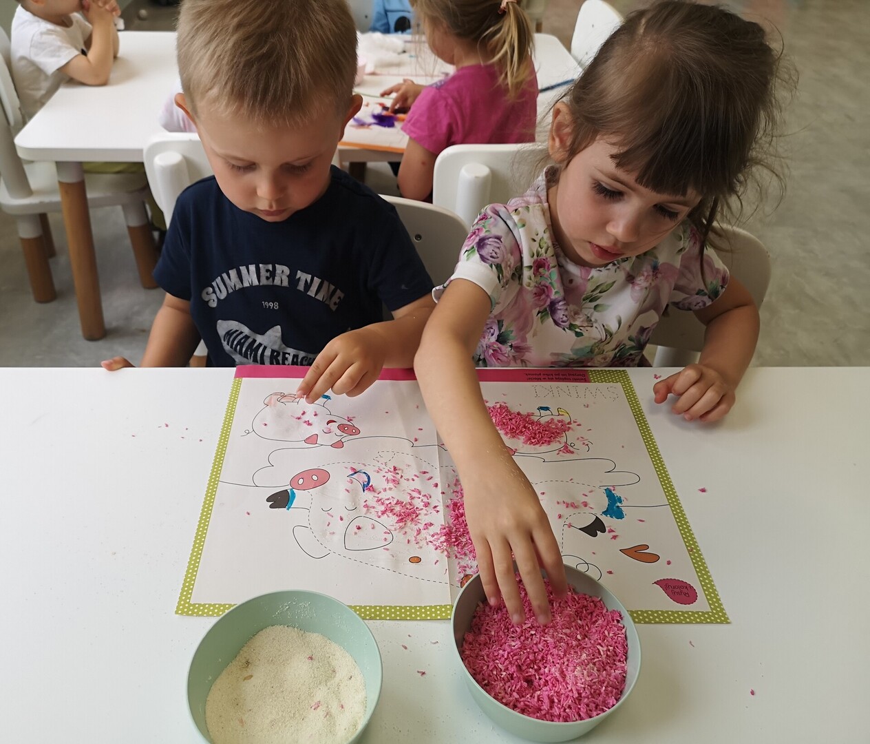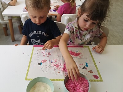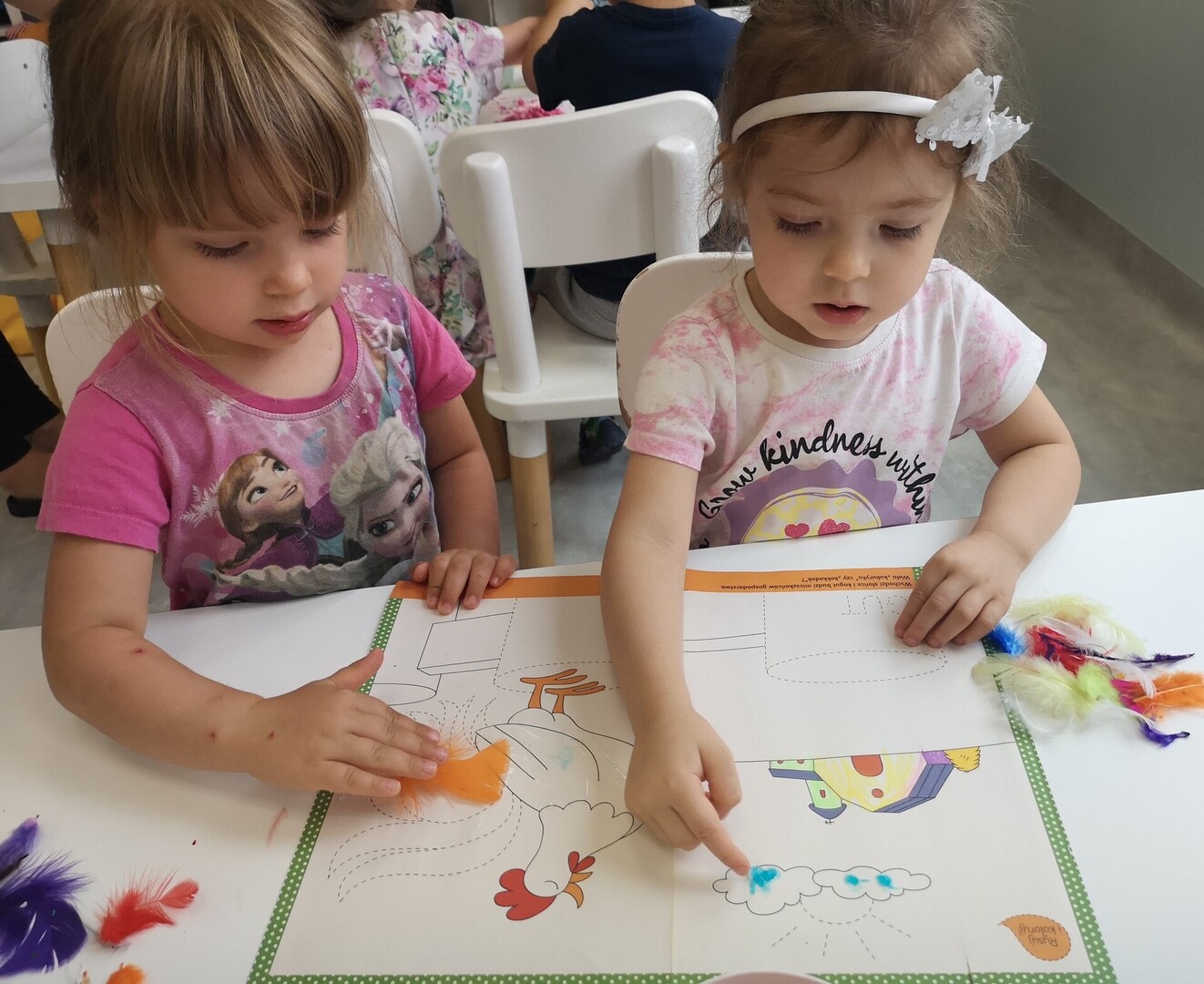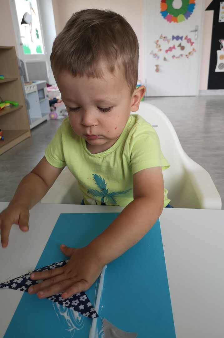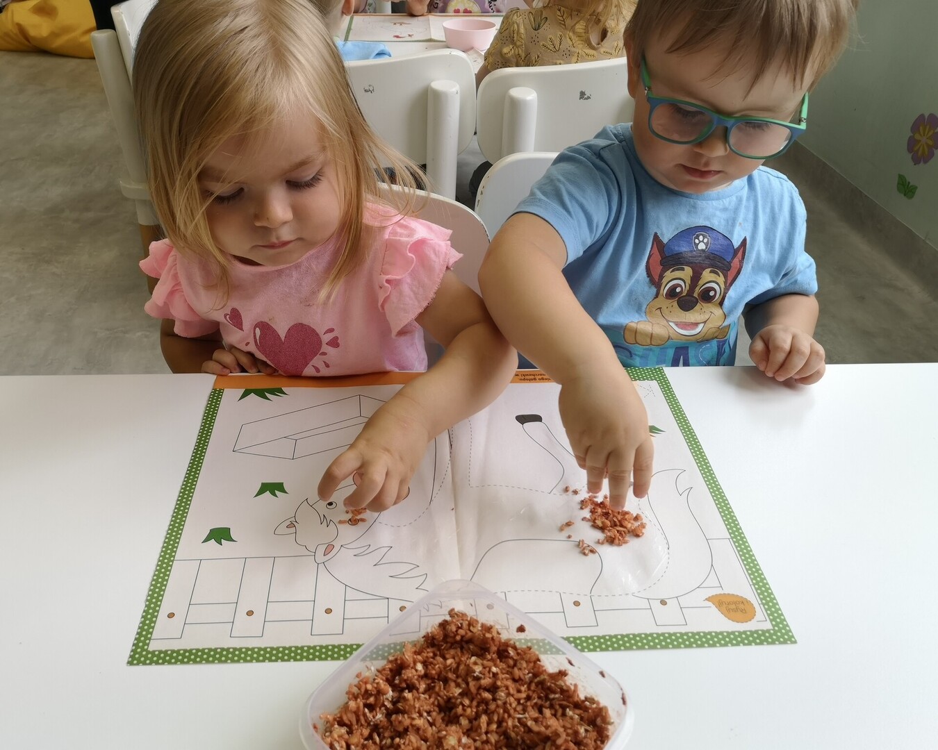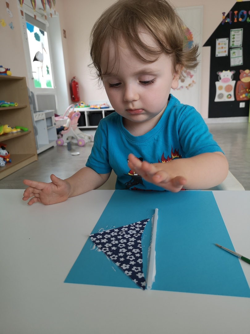 W ostatnich dniach, z uwagi na deszczową pogodę maluszki i ich opiekunowie zrezygnowali ze spacerów na rzecz zajęć plastycznych i zaprzyjaźnili się z klejem oraz różnego rodzaju materiałami. "Stokrotki" parami wyklejały zwierzęta gospodarskie, a "Pierwiosnki" tworzyły fantastyczne łódki. Z prac powstała wspaniała, kolorowa galeria.