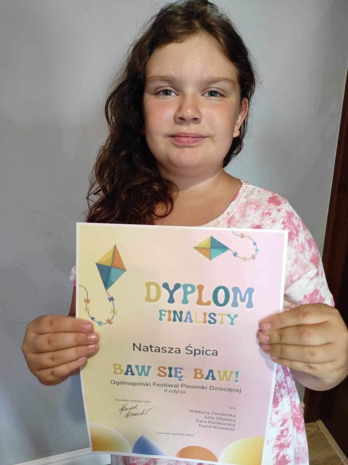 Natasza Śpica uczestniczka stałych zajęć wokalnych w Gminnym Ośrodku Kultury w Gostycynie, prowadzonych przez Ewę Talaśkę znalazła się w gronie laureatów II edycji Ogólnopolskiego Festiwalu Piosenki Dziecięcej „Baw się, baw!”.