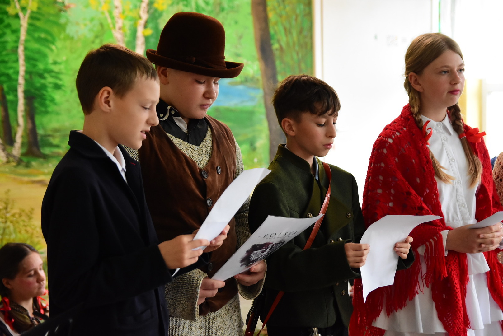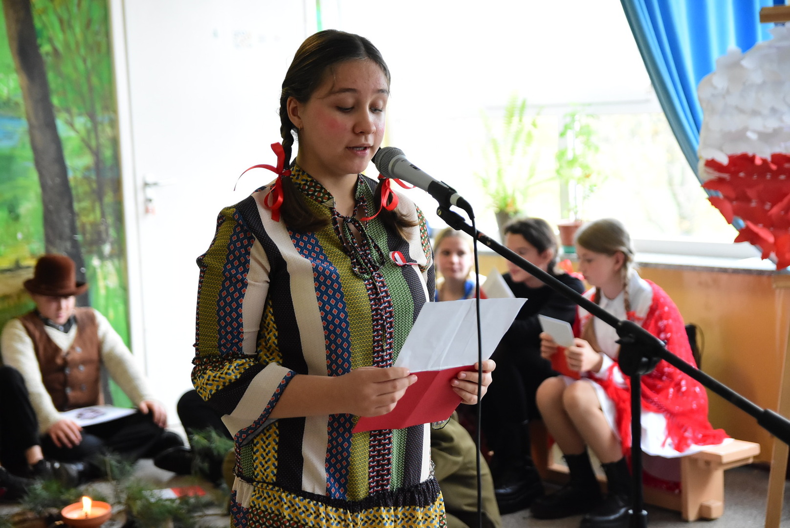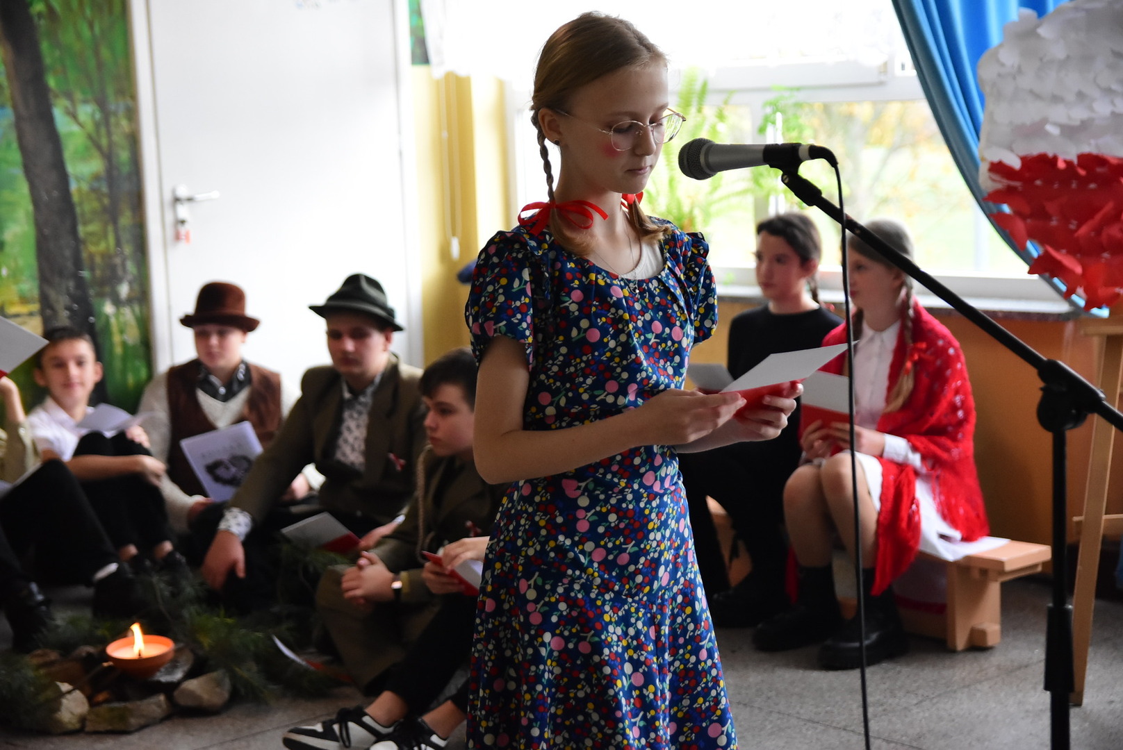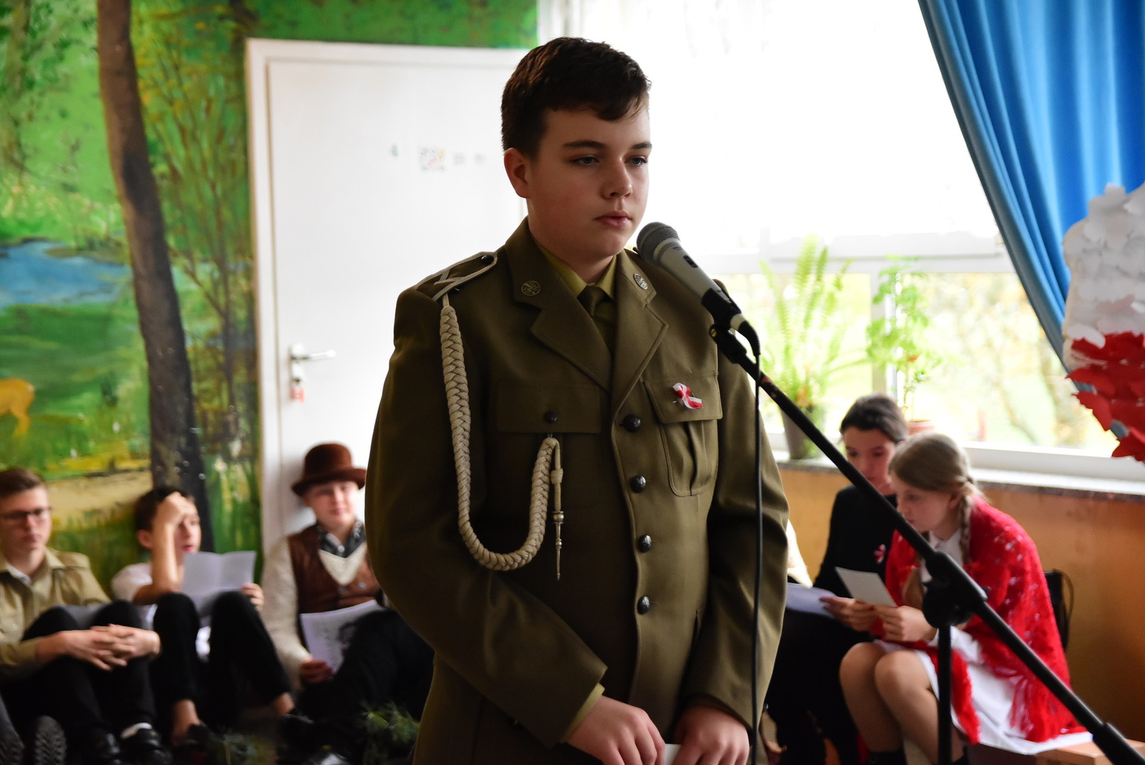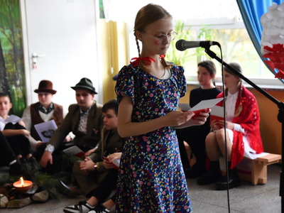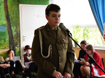 Uczniowie z klas VI – VIII, a także klasy III przypomnieli 123 lata niewoli narodu polskiego i jego dążenia do odzyskania niepodległości. W trakcie uroczystości można było usłyszeć przepiękne utwory muzyczne oraz wiersze o tematyce patriotycznej.