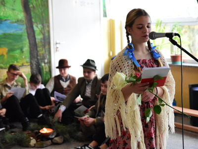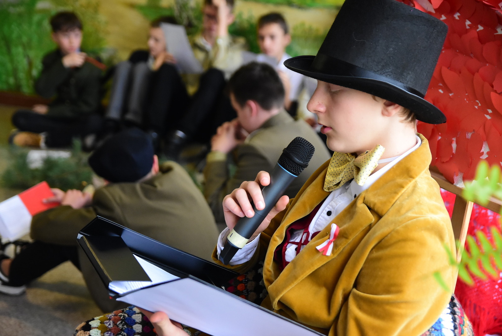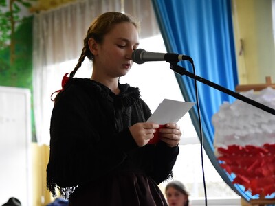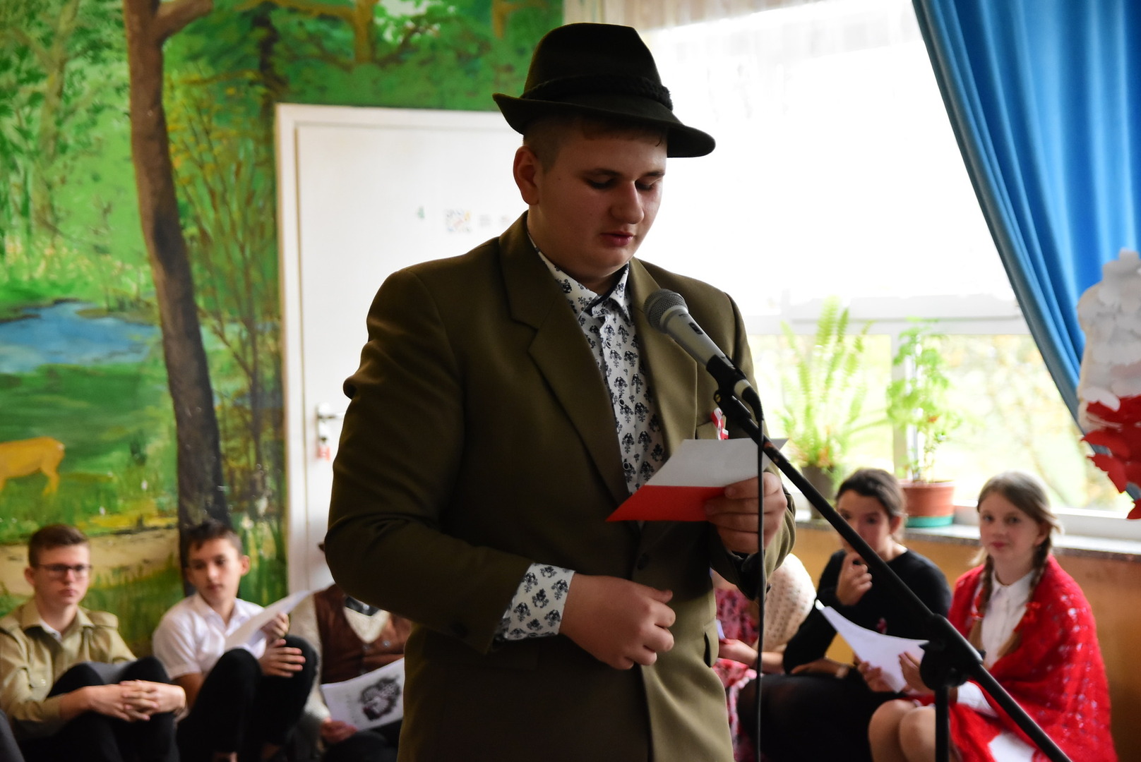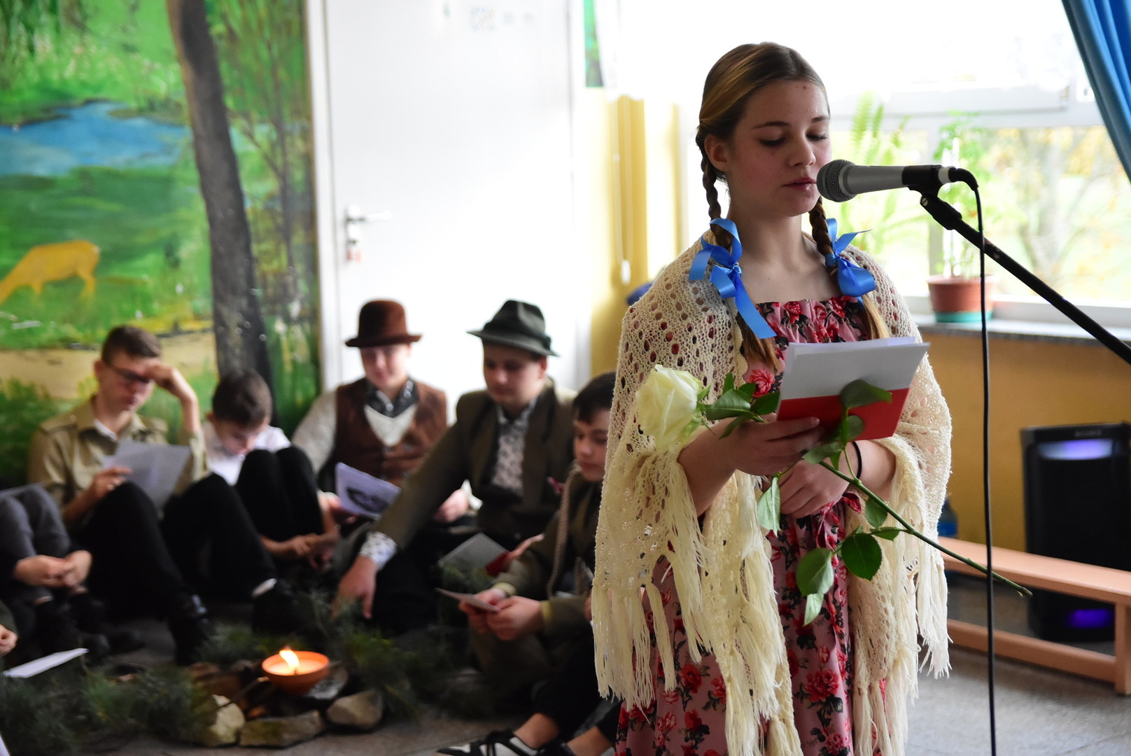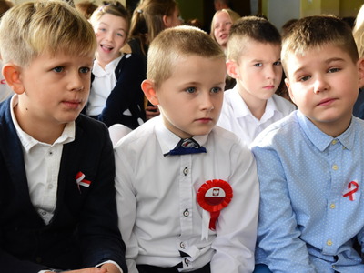 Uczniowie z klas VI – VIII, a także klasy III przypomnieli 123 lata niewoli narodu polskiego i jego dążenia do odzyskania niepodległości. W trakcie uroczystości można było usłyszeć przepiękne utwory muzyczne oraz wiersze o tematyce patriotycznej.