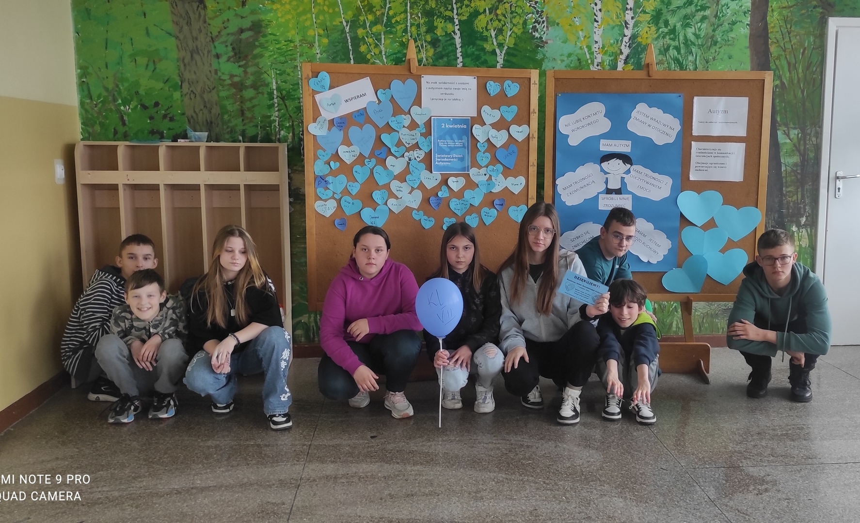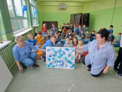 Uczniowie wsparli akcję niebieskimi ubraniami, a panie Joanna Nowak i Magdalena Jutrowska przygotowały ciekawą pogadankę - inscenizację o tym, jak zachowują się osoby autystyczne. Młodzi ludzie mieli okazję dołożyć swoją cegiełkę tolerancji w postaci odbicia dłoni na płótnie z którego powstał wyjątkowy obraz. Znajdzie on miejsce na jednej ze ścian w szkole. Niebieskie dłonie są symbolem pomocy oraz tolerancji wobec osób dotkniętych autyzmem.