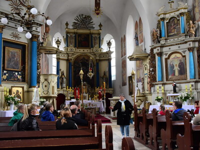 W piątek, 10 maja odbył się zainicjowany przez sołtys Katarzynę Henszczyk i sołectwo Wielka Klonia, kolejny rekreacyjny spacer „nordic walking”. Współorganizatorami przedsięwzięcia było Centrum Sportowo-Rekreacyjne w Gostycynie i gmina Gostycyn. Popołudniową przygodę spacerowicze rozpoczęli od zwiedzenia kościoła pw. św. Mateusza w Wałdowie. Przewodnikiem tutaj była Pani Bożena Rainko, była katechetka i autorka pracy o kościele w Wałdowie. Pani Bożena opowiedziała o zabytkach kościoła i ciekawostkach z nim związanych. Później, po kilkuminutowej rozgrzewce wszyscy ruszyli w trasę. Celem odcinka marszruty był pałac i kompleks pałacowo-parkowy w Komierowie. W rolę prowadzącego wspaniale wpisał się tutaj Marek Sass. Dzięki niemu uczestnicy dowiedzieli się wielu nowych, ciekawych rzeczy zarówno o pałacu jak i o rodzinie Komierowskich. Poruszono też wątek bytności w Komierowie Adolfa Hitlera i skonfrontowano je z opublikowanym w Internecie zdjęciem. Po przechadzce alejkami parku i zapoznaniu się z historią miejscowości grupa ruszyła w kierunku Małej Kloni, gdzie na spacerowiczów czekał bus. Zakończenie spotkania i podsumowanie spaceru odbyło się w Wiejskim Domu Kultury w Wielkiej Kloni. Dokonał tego gospodarz naszej gminy - wójt Ireneusz Kucharski. Podziękował obecnym za udział w spacerze. Wręczył też pamiątkowe upominki. Otrzymały je m.in. dzieci z Placówki Opiekuńczo-Wychowawczej w Gostycynie oraz jako najstarsza uczestniczka wyprawy – Pani Danusia Kołacz. Specjalne podziękowania - sołtys Katarzyna Henszczyk i wójt Ireneusz Kucharski przekazali także Markowi Sassowi. Oboje zaprosili obecnych do udziału w kolejnych wyprawach – pieszych bądź rowerowych.