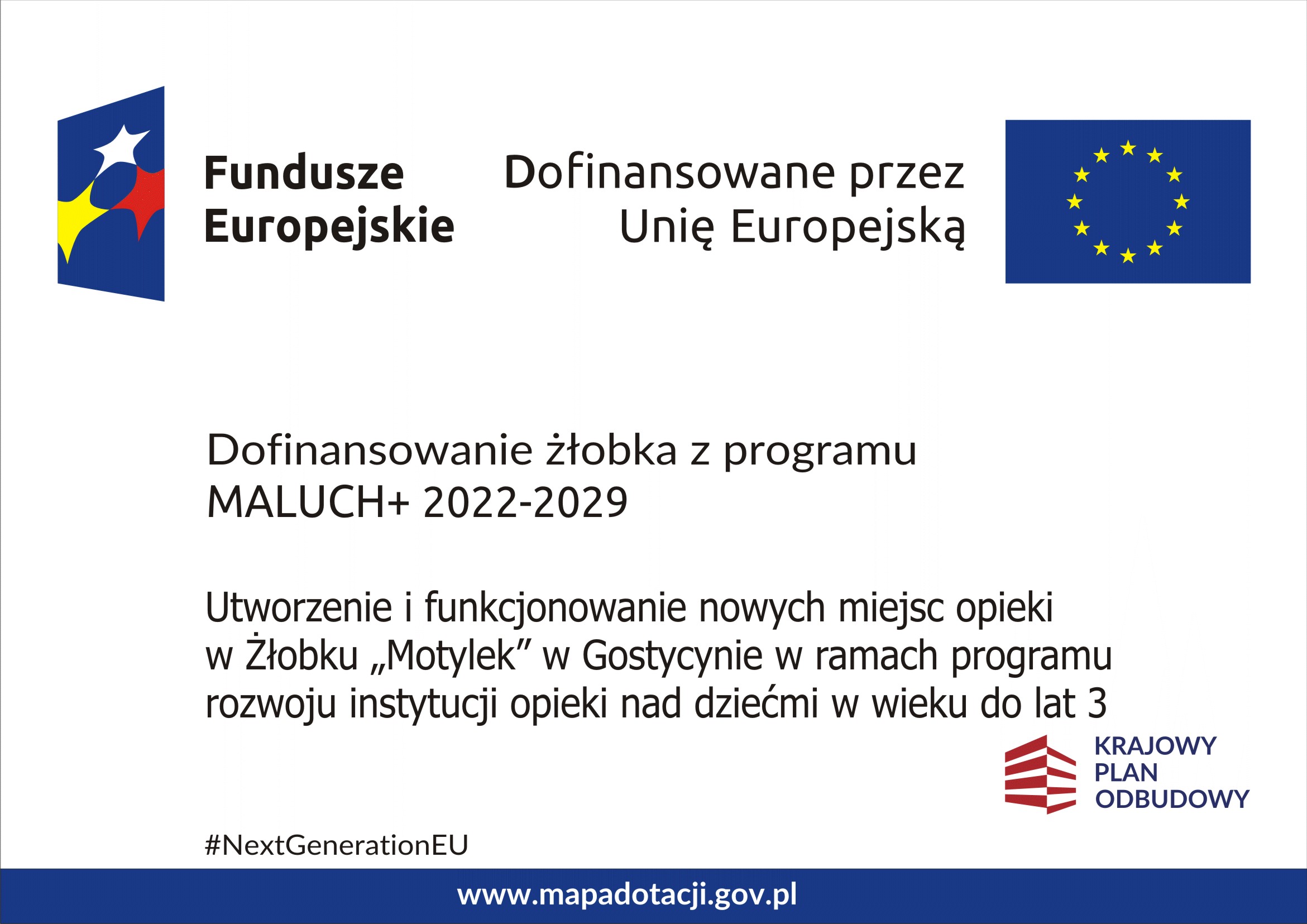 Gmina Gostycyn w ramach programu „Maluch + 2022-2029”, który integruje środki europejskie – tj. środki z Krajowego Planu Odbudowy i Zwiększenia Odporności (KPO) oraz z programu Fundusze Europejskie dla Rozwoju Społecznego (FERS), a także środki z budżetu państwa, otrzymała dofinansowanie dla Żłobka „Motylek” w Gostycynie w zakresie rozwoju instytucji opieki nad dziećmi do lat 3.