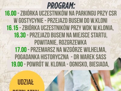 17.00 - przemarsz wyznaczoną trasą na Wzgórze Wilhelma , powrót (pogadanka historyczna - dr Marek Sass)