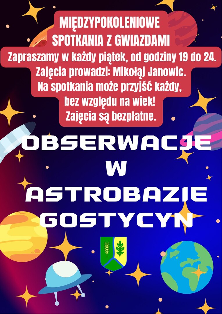 W piątek (23.05) przy astrobazie w Gostycynie odbędzie się pierwsze z serii otwartych spotkań z gwiazdami, które są dedykowane wszystkim zainteresowanym mieszkańcom, bez względu na wiek. Przewodnikiem po niebie będzie Mikołaj Janowic, koordynator obiektu, zarazem wielki pasjonat kosmosu i astronomii.