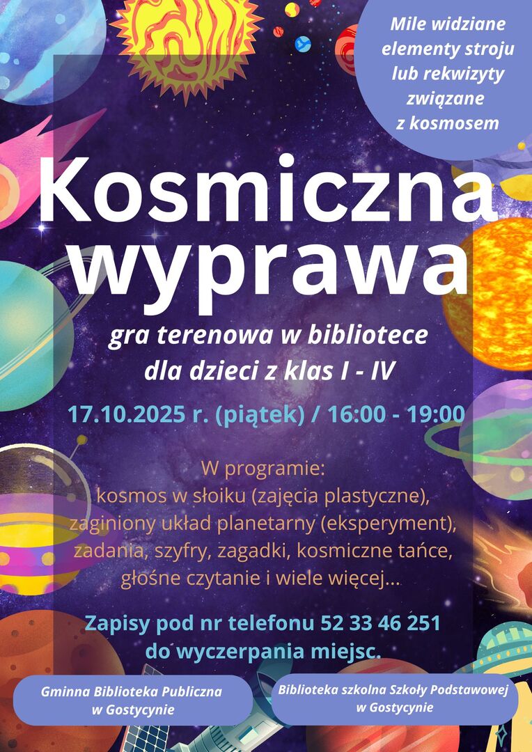 Podążając za hasłem tegorocznej edycji - „Do dzieła!”, Panie z biblioteki przygotowały dla uczniów klas I-IV grę terenową ph. "Kosmiczna wyprawa". A w niej: