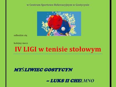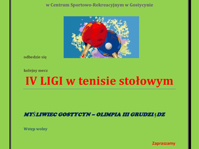 Zapraszamy na mecz IV ligi w tenisie stołowym - 18 styczeń 2025